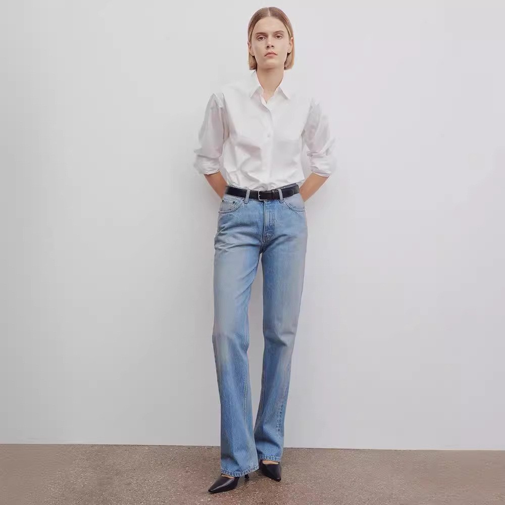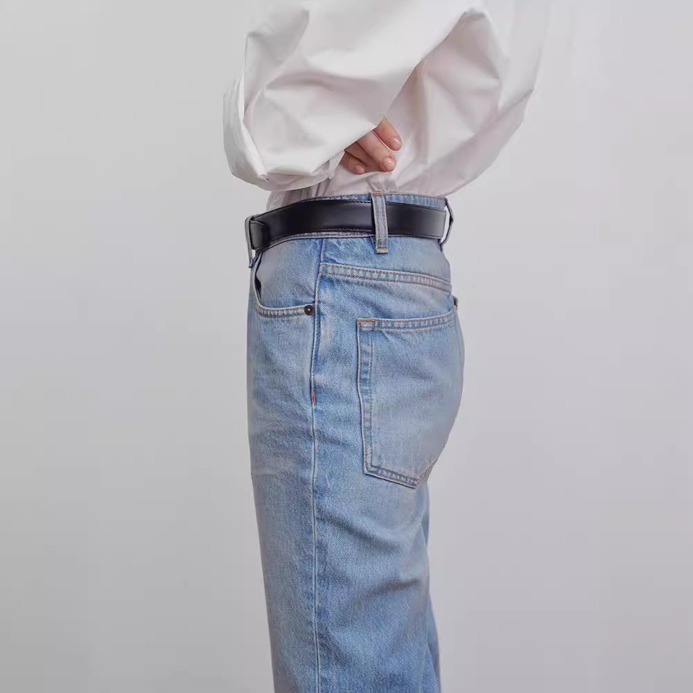 TH~ ROW 여성용 청바지 2025 봄/가을 신상 드레이프 하이웨이스트 연한색 루즈핏 슬림핏 스트레이트 롱팬츠스토어 가기