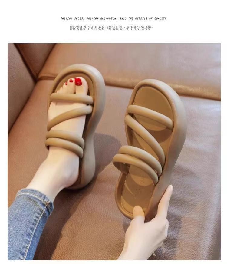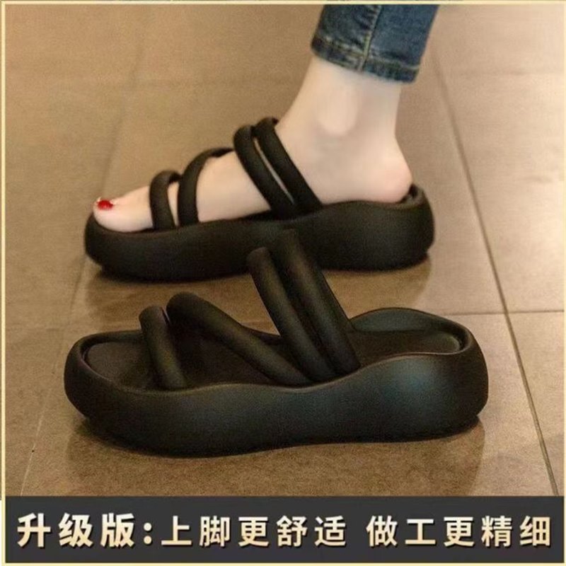 여성을위한 세련된 두꺼운 밑창 부드러운 밑창 슬리퍼 2024 스커트와 새로운 여름 겉옷 하이 엔드 미끄럼 방지 해변 샌들스토어 가기