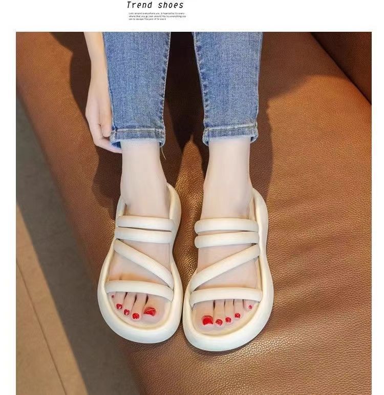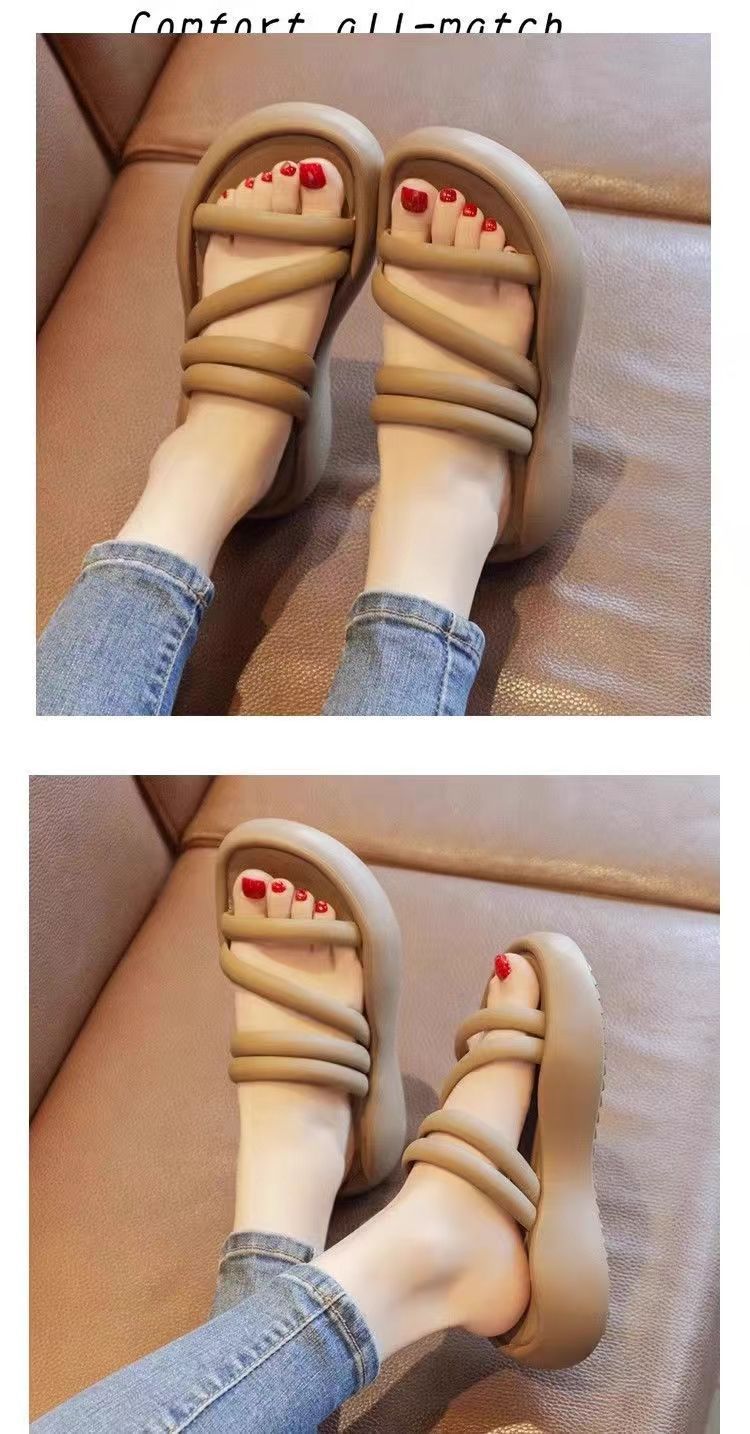 여성을위한 세련된 두꺼운 밑창 부드러운 밑창 슬리퍼 2024 스커트와 새로운 여름 겉옷 하이 엔드 미끄럼 방지 해변 샌들
