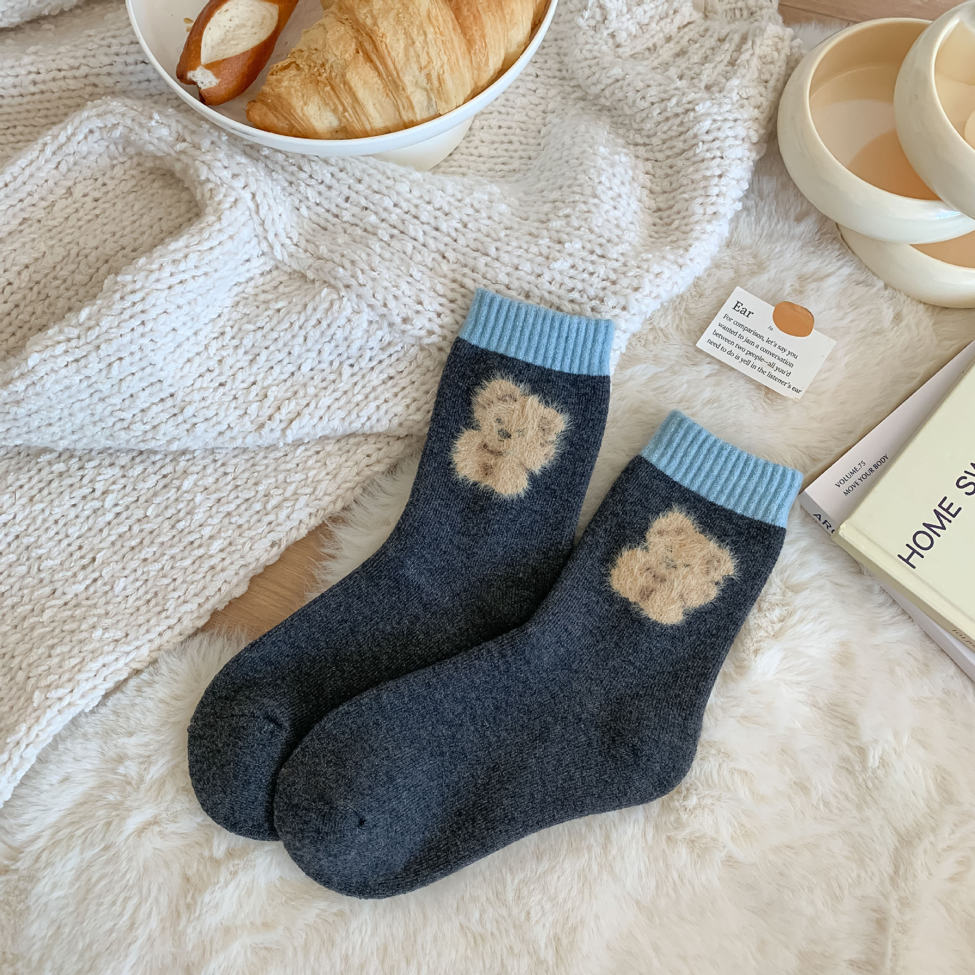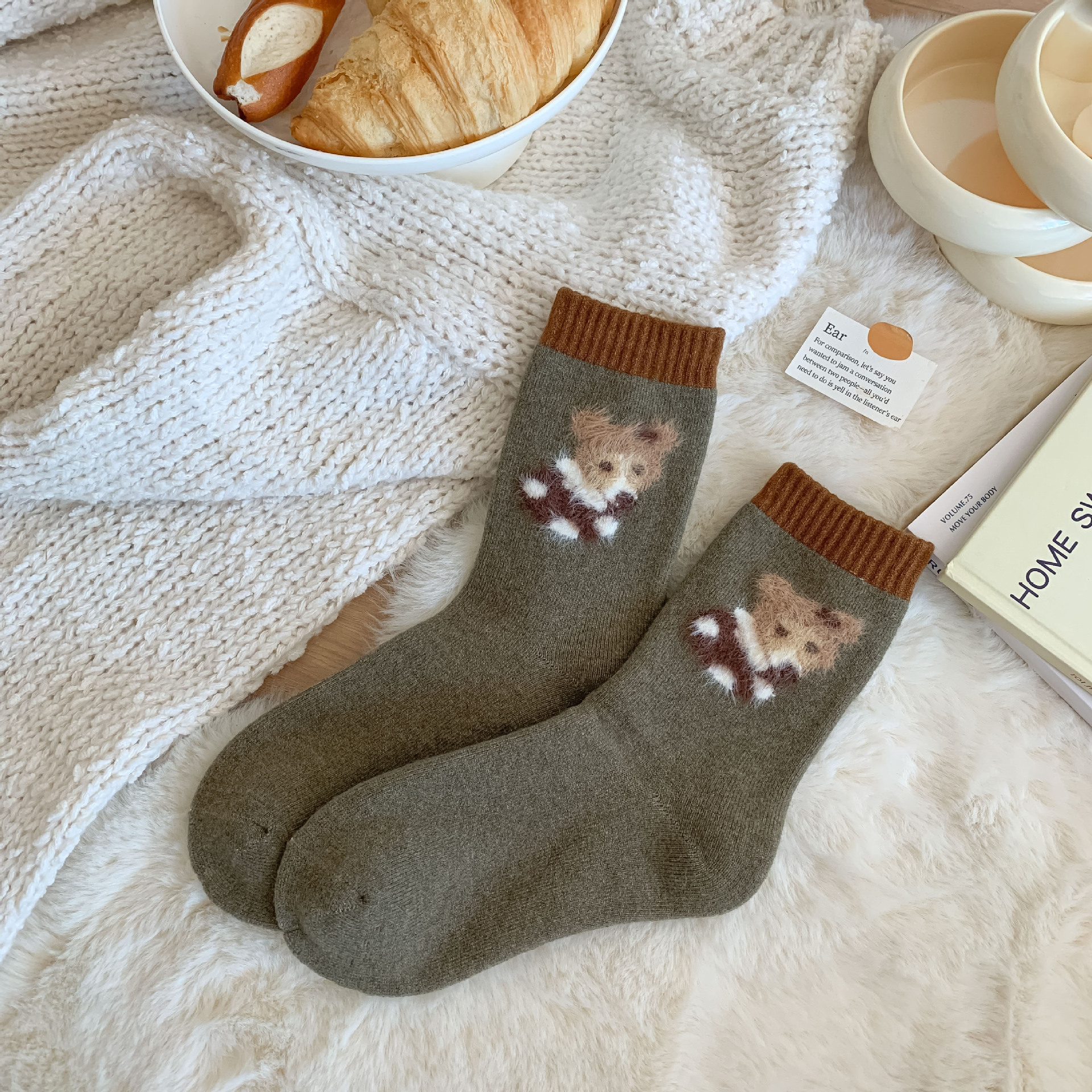 가을과 겨울 달콤한 만화 개 캐시미어 테리 따뜻한 튜브 양말 두껍게 부드러운 왁스 더미 양말 소녀 입체 양말스토어 가기