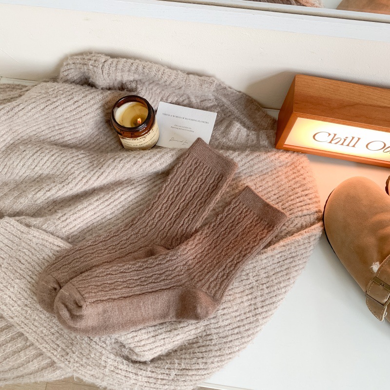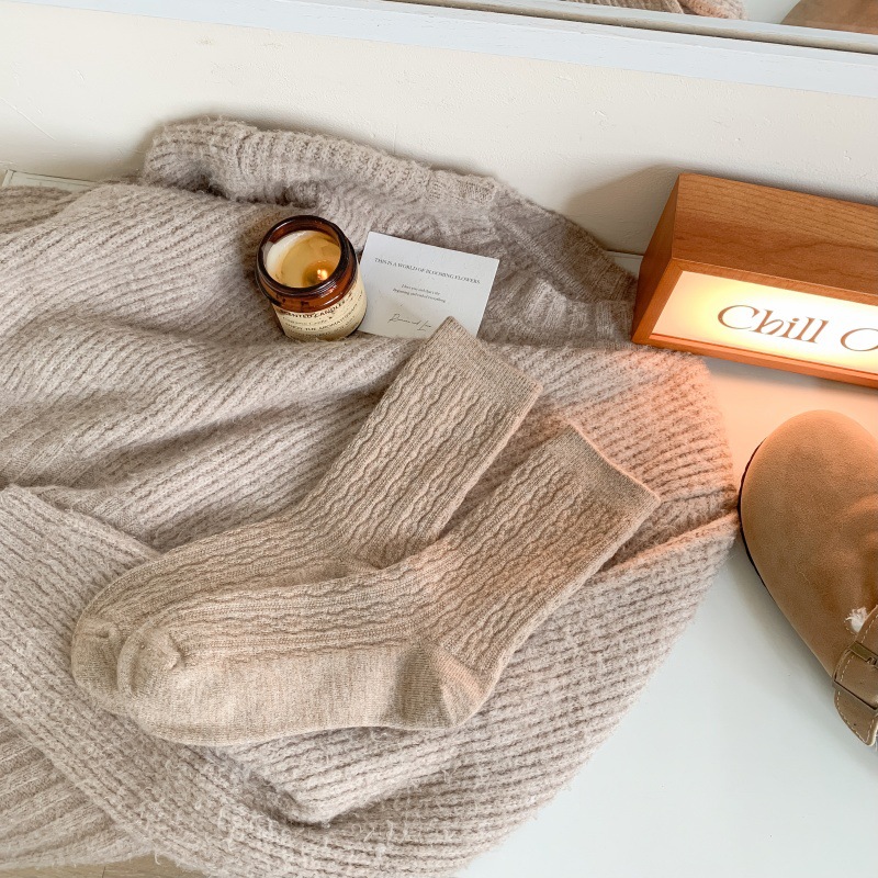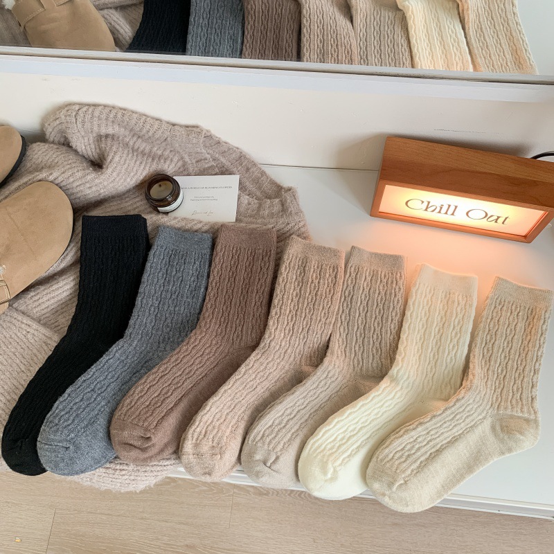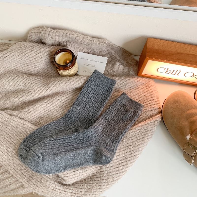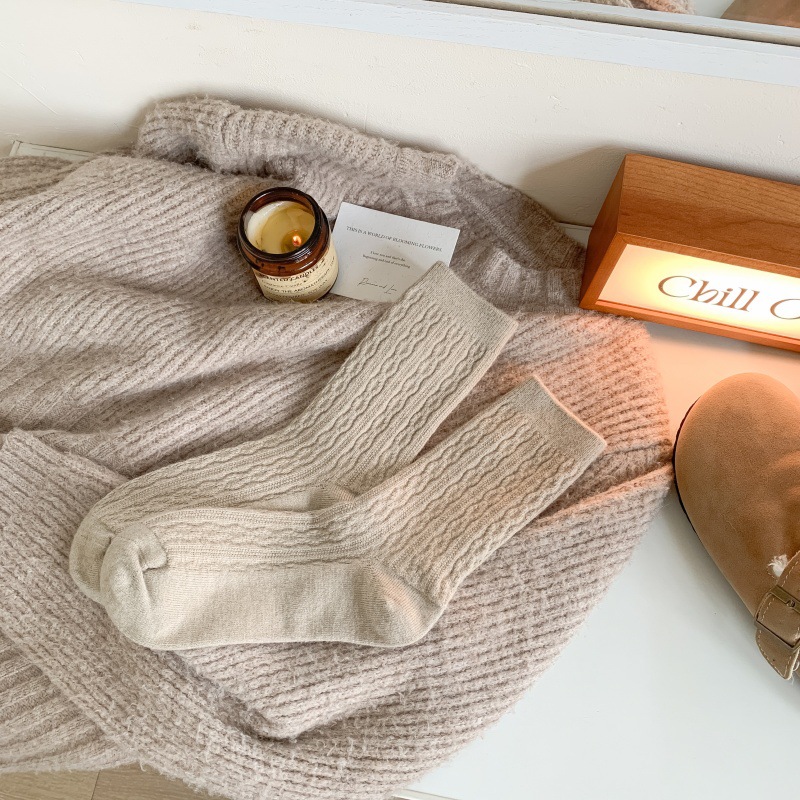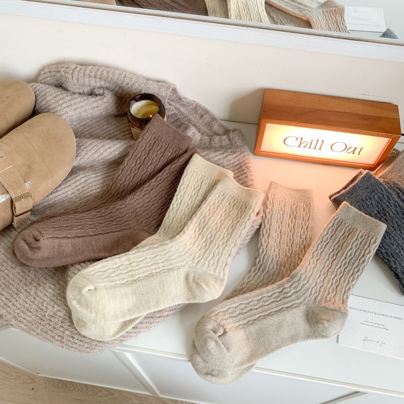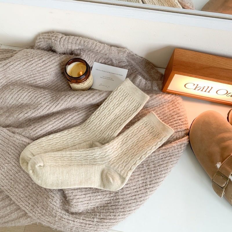 가을 겨울 한국식 이중 바늘 보풀 방지 기모 양 양말 - 작은 트위스트 인 트렌디한 다용도 두꺼운 따뜻한 파일 양말스토어 가기