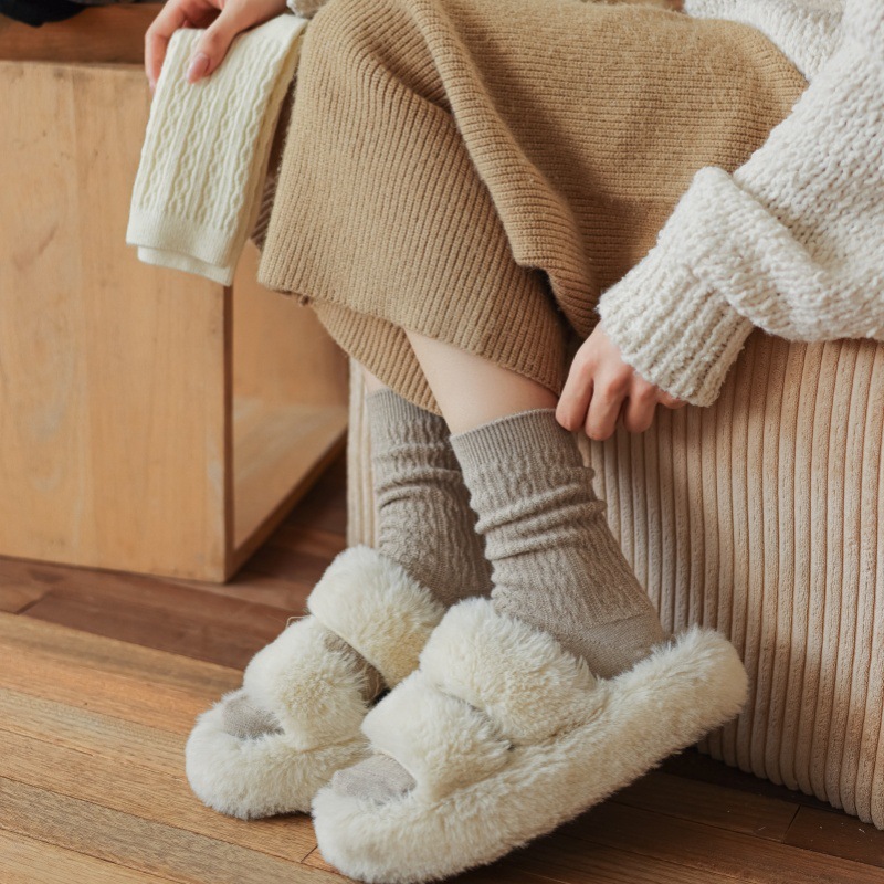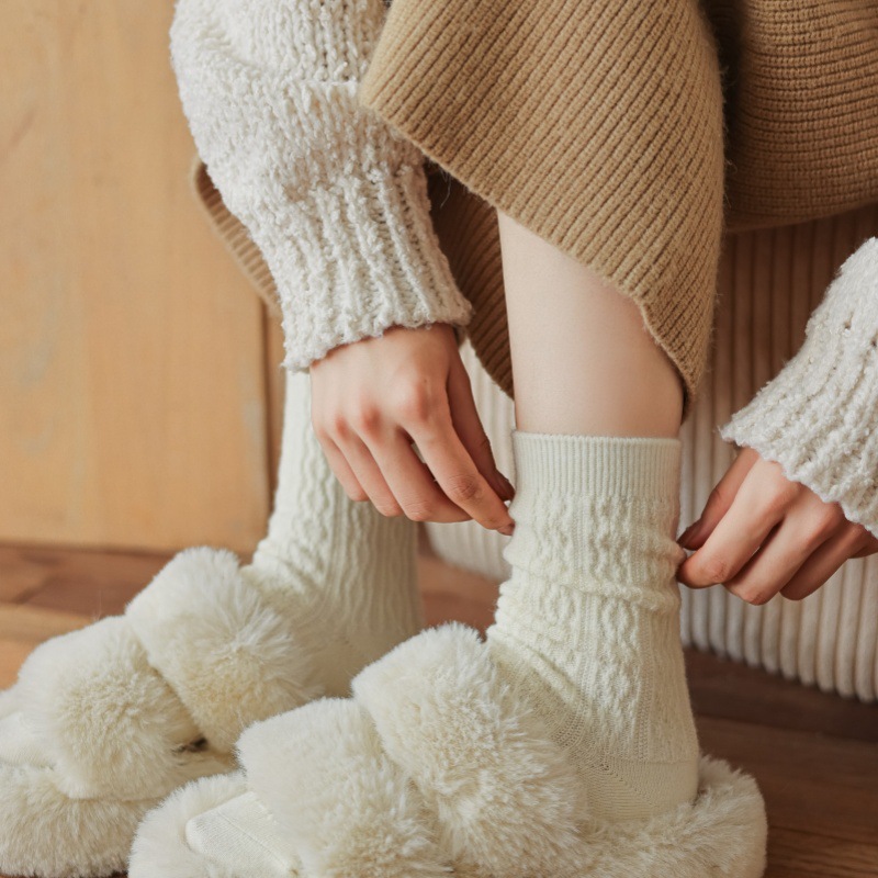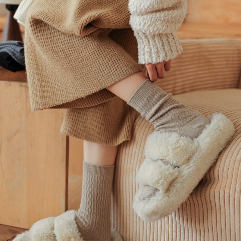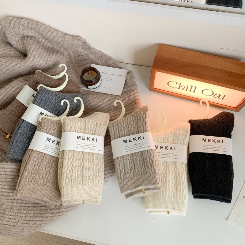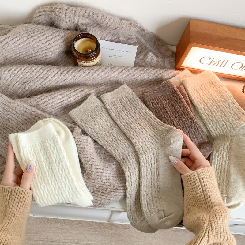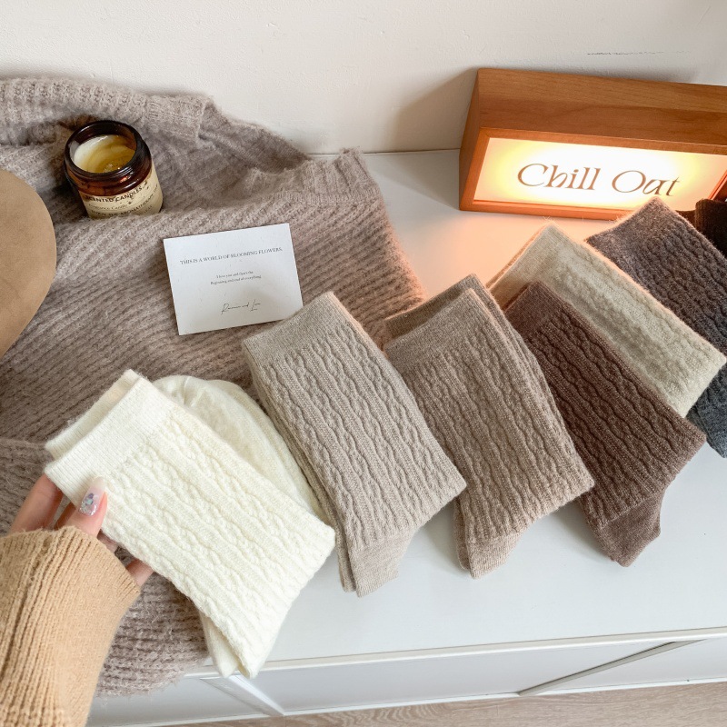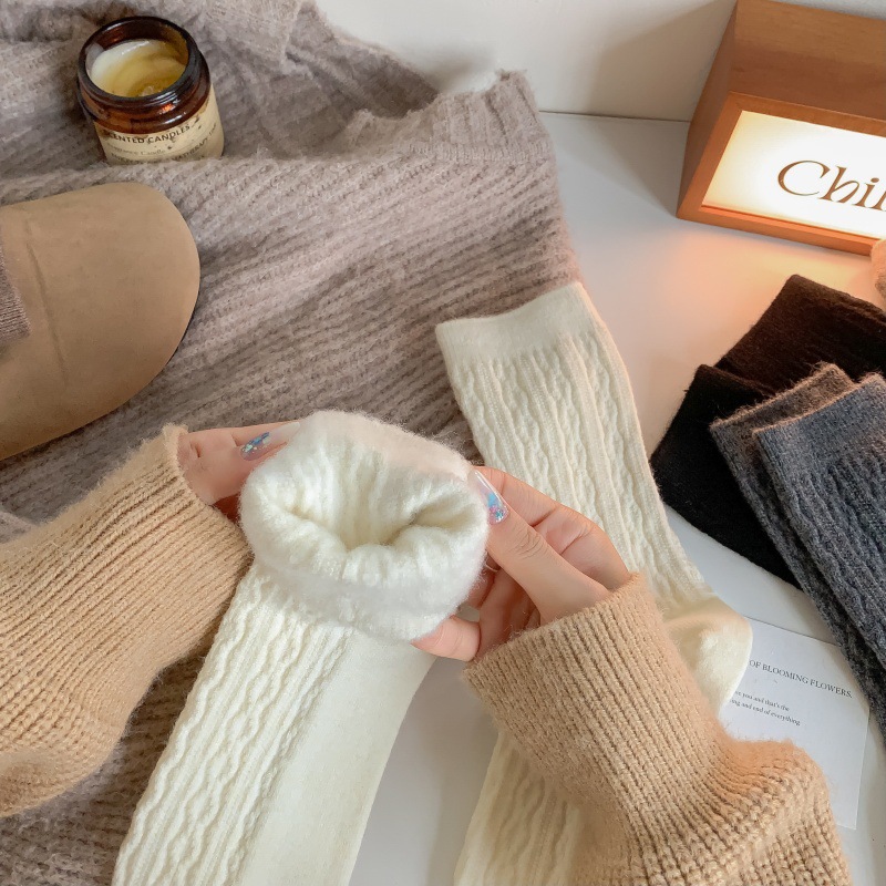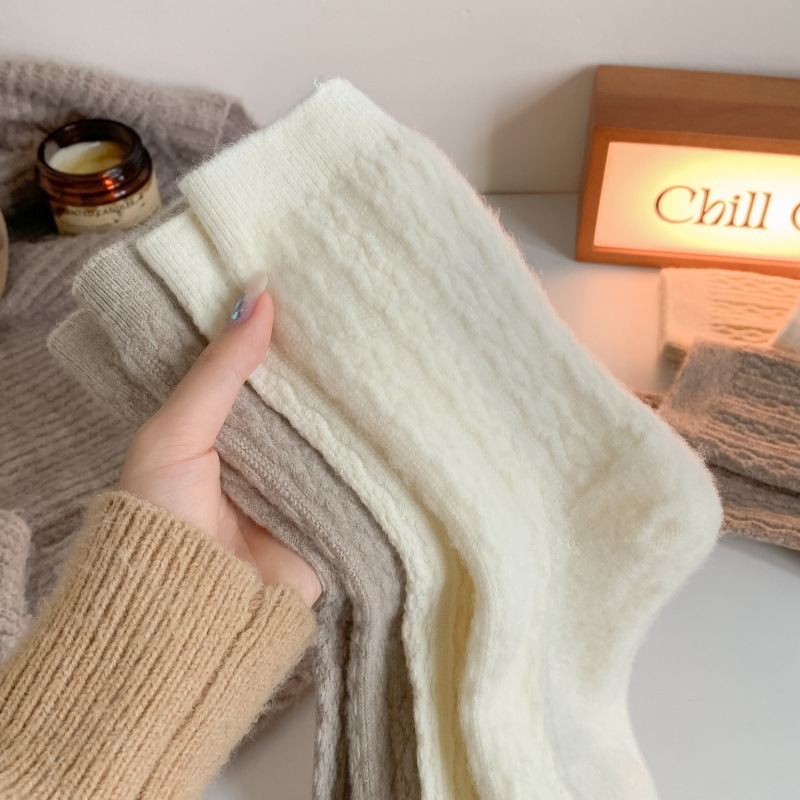가을 겨울 한국식 이중 바늘 보풀 방지 기모 양 양말 - 작은 트위스트 인 트렌디한 다용도 두꺼운 따뜻한 파일 양말스토어 가기