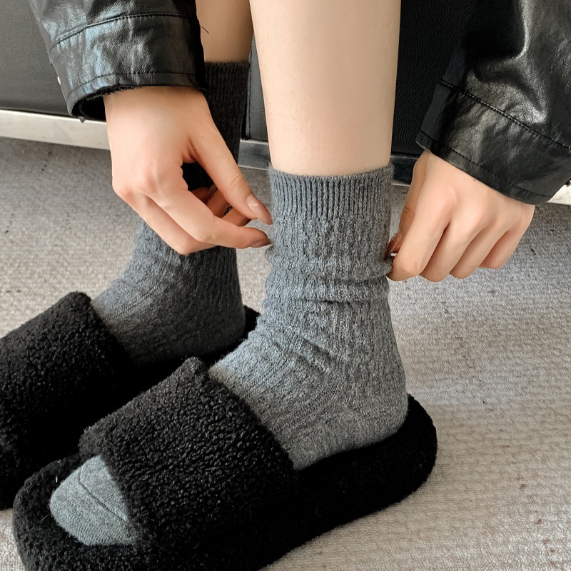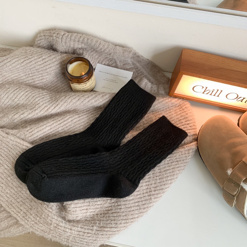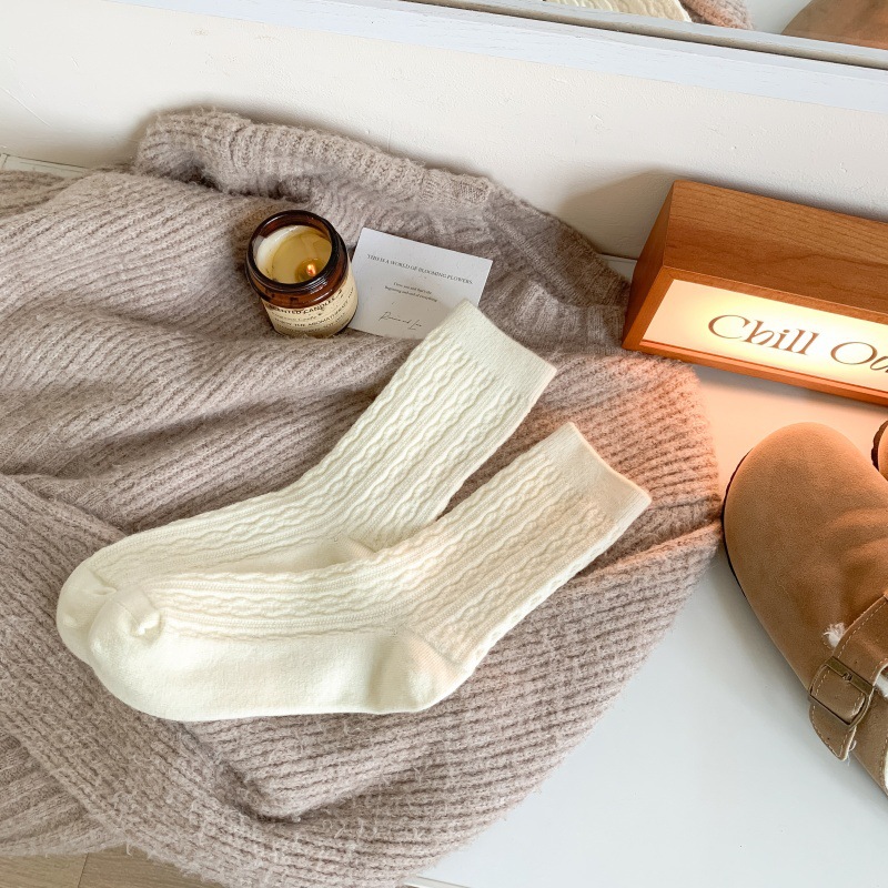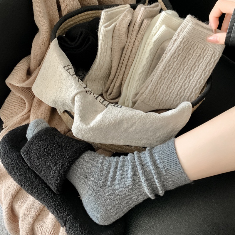 가을 겨울 한국식 이중 바늘 보풀 방지 기모 양 양말 - 작은 트위스트 인 트렌디한 다용도 두꺼운 따뜻한 파일 양말