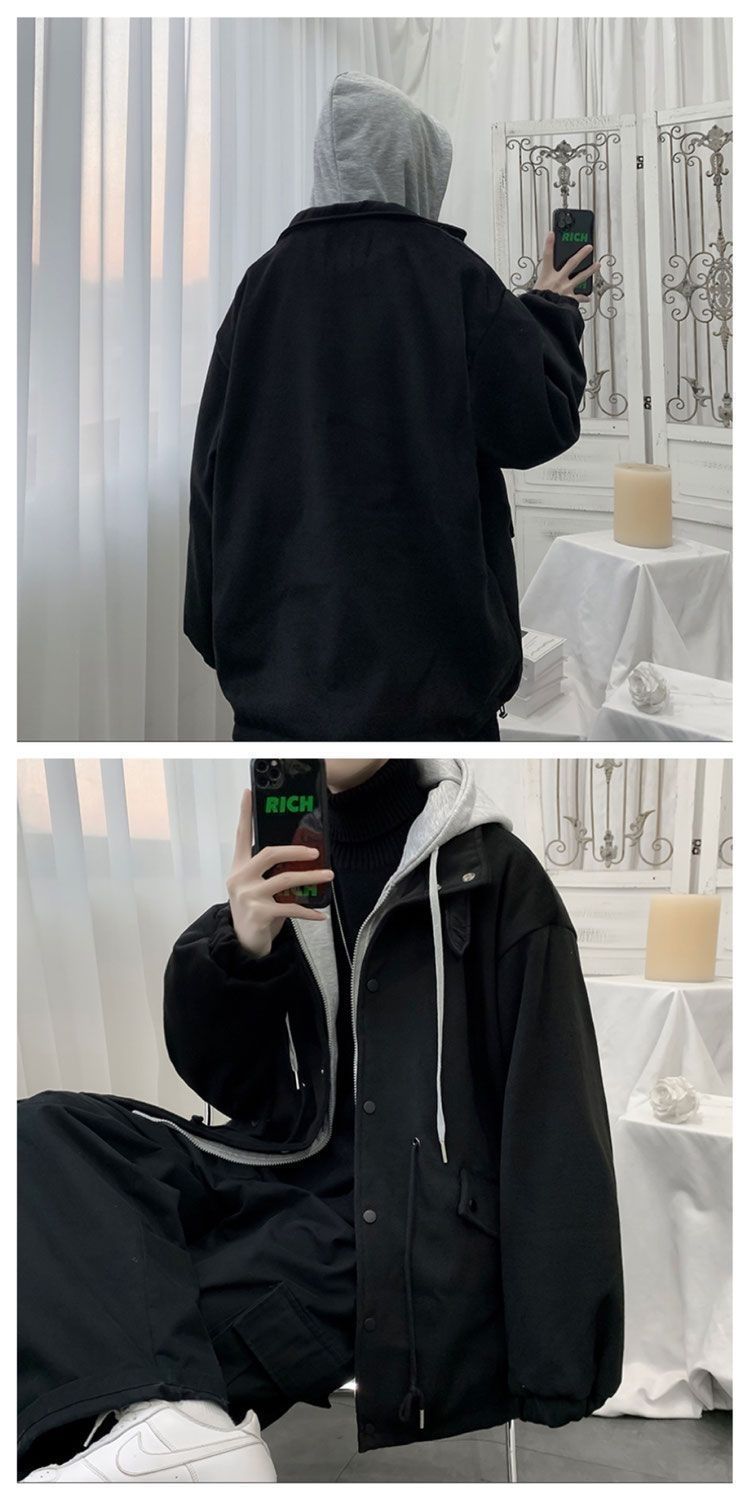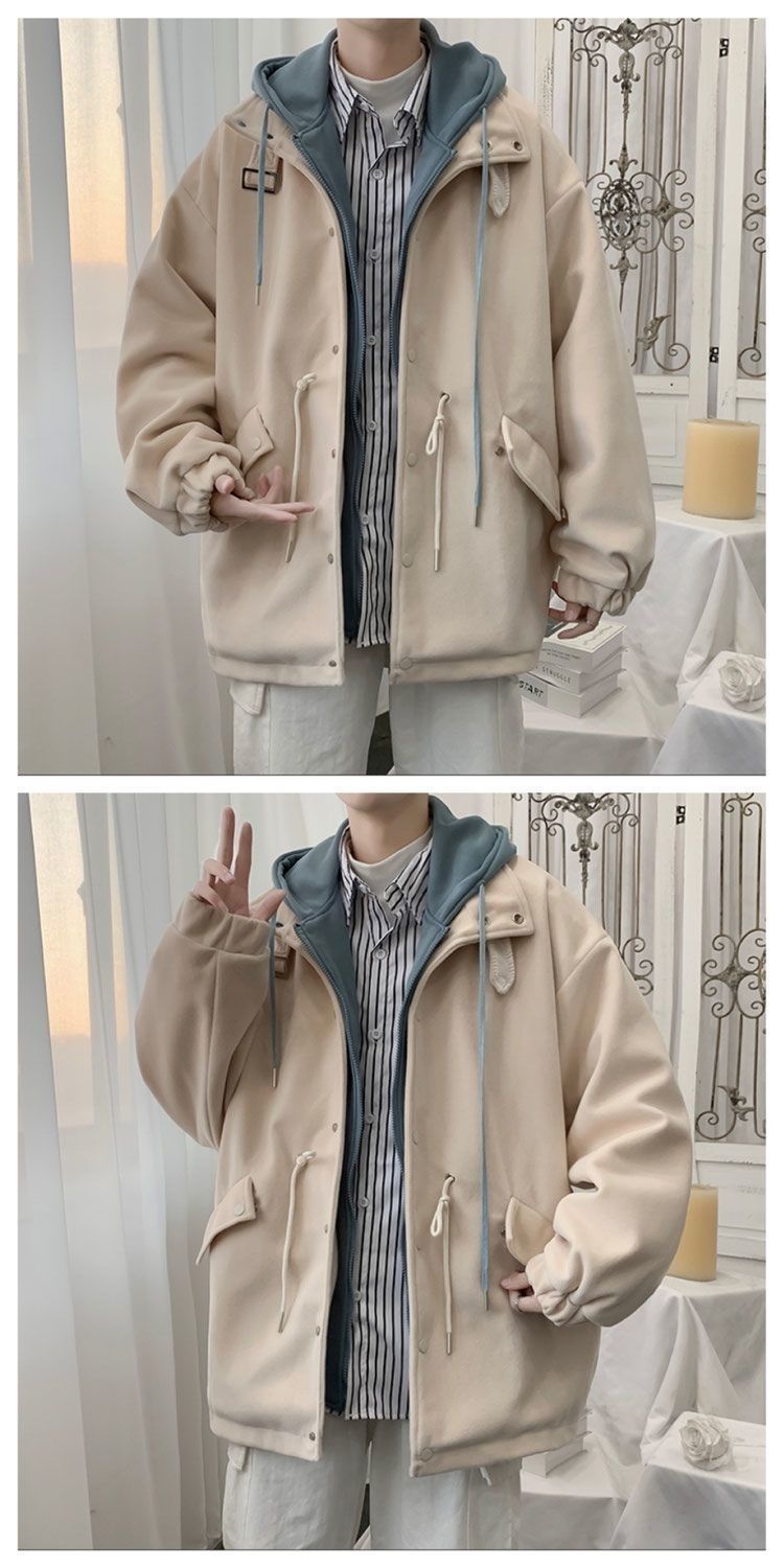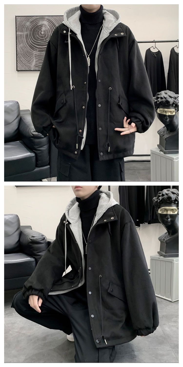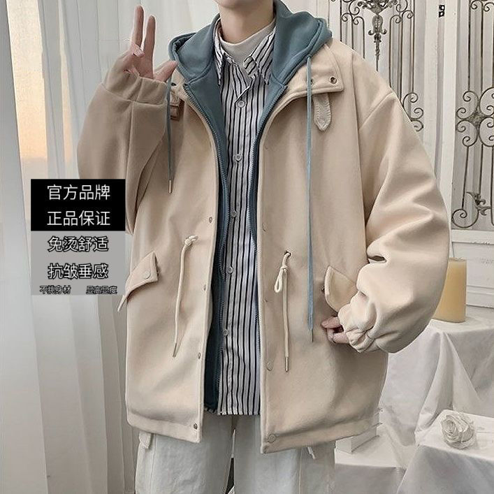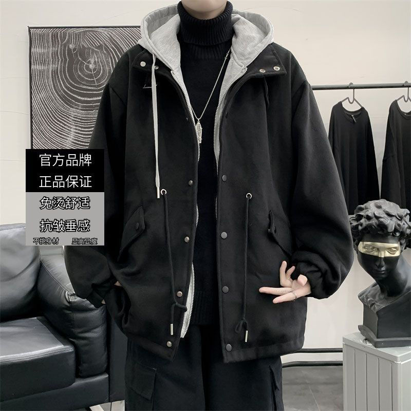가짜 투피스 재킷 남자 가을과 겨울 한국 느슨한 후드 모직 코트 인 다크 하이 스트리트 패셔너블 재킷스토어 가기
