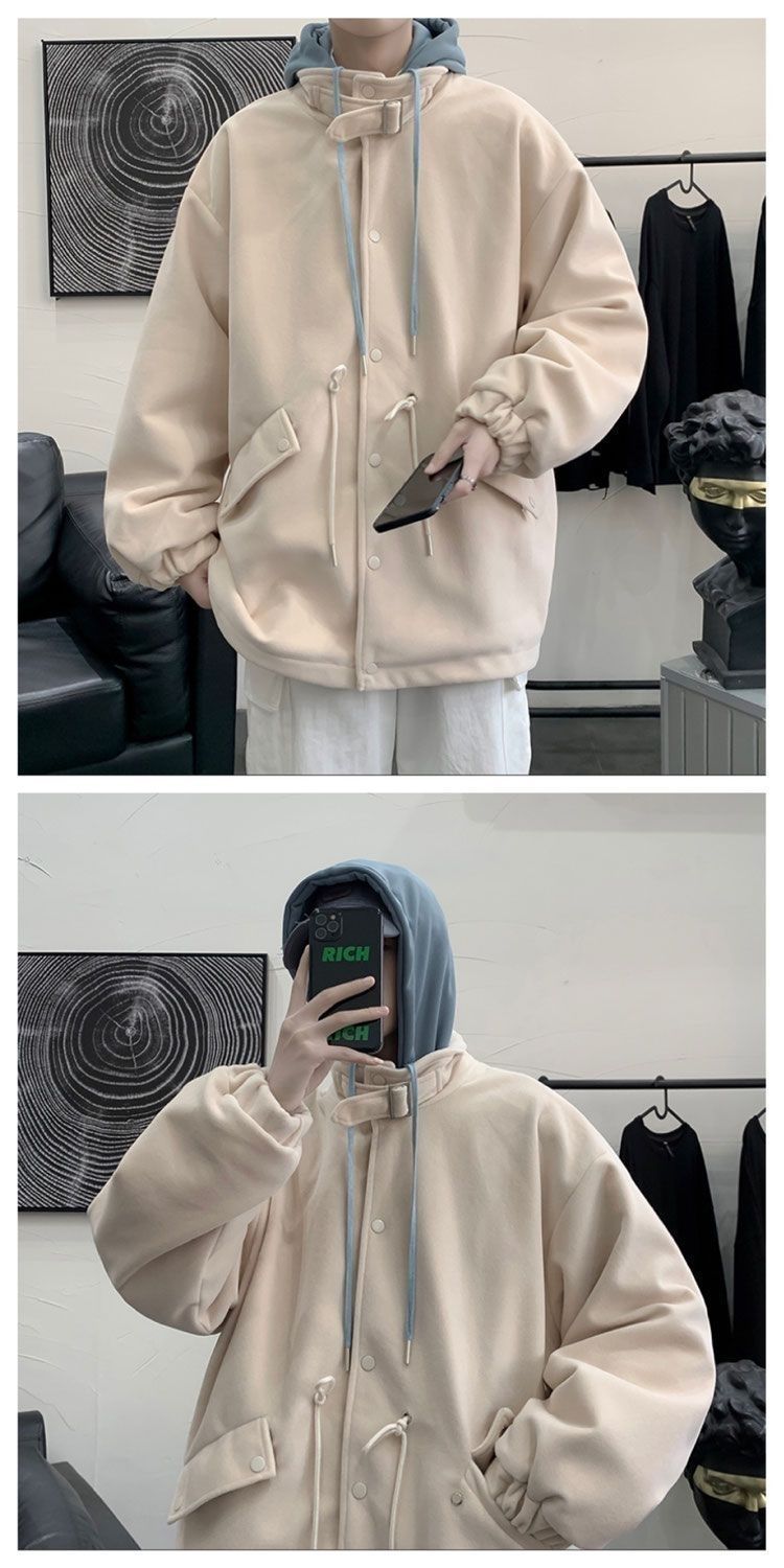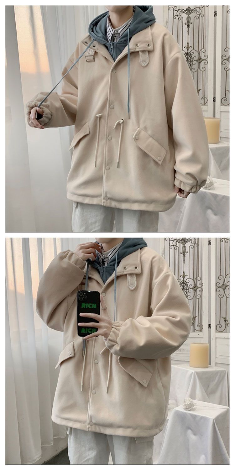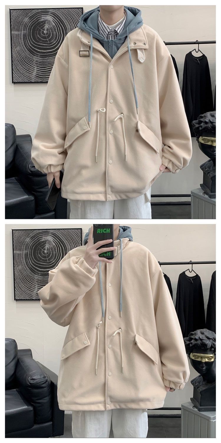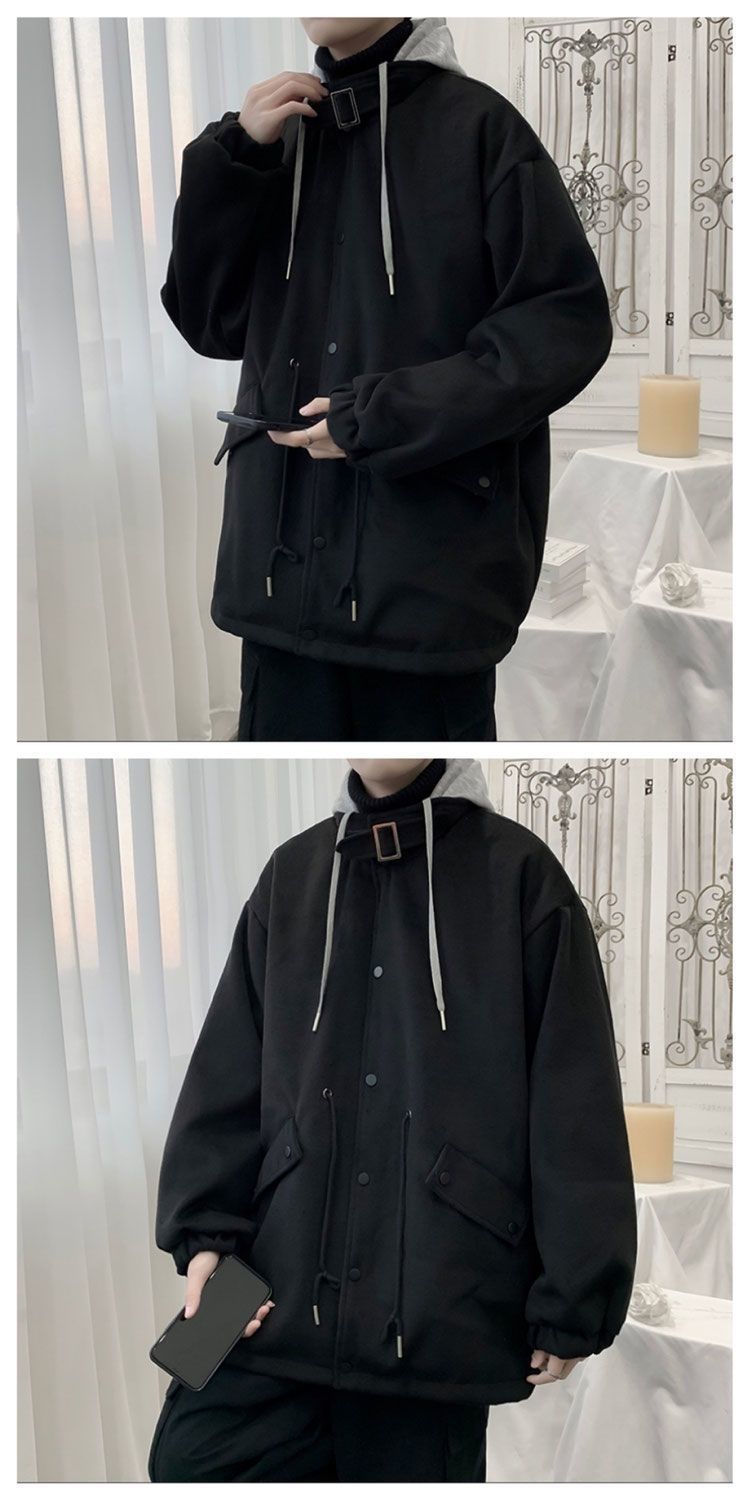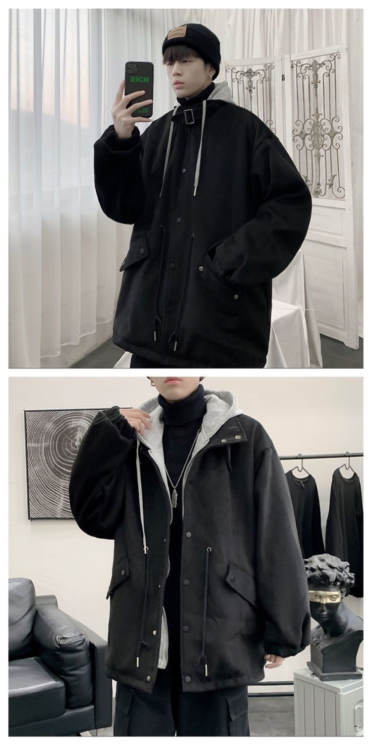 가짜 투피스 재킷 남자 가을과 겨울 한국 느슨한 후드 모직 코트 인 다크 하이 스트리트 패셔너블 재킷스토어 가기