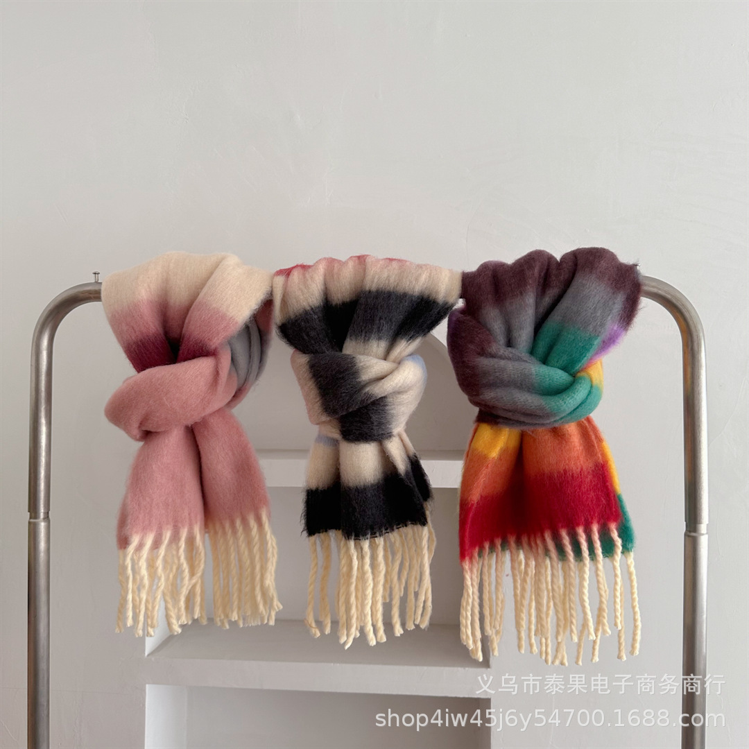아카데미 스타일 어린이 클래식 스트라이프 소프트 왁스 스카프 겨울 새 스타일 따뜻한 패셔너블 올 매치 술 스카프 소년 소녀