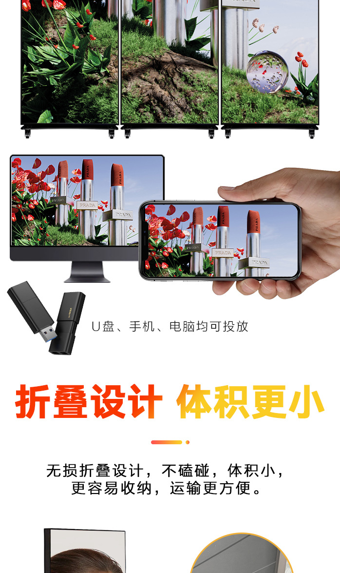 바닥 led 모바일 포스터 화면 쇼핑몰 상점 광고 디스플레이 접이식 얇은 통합 led 광고 기계스토어 가기