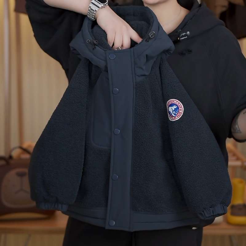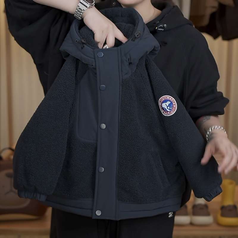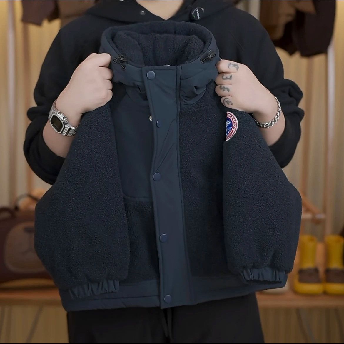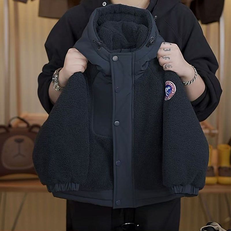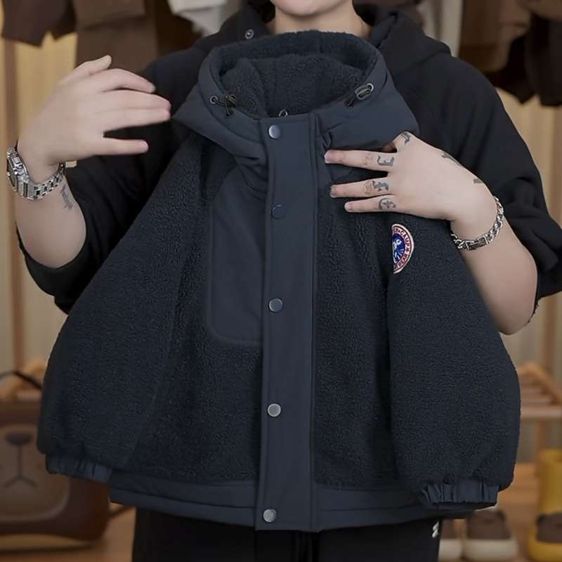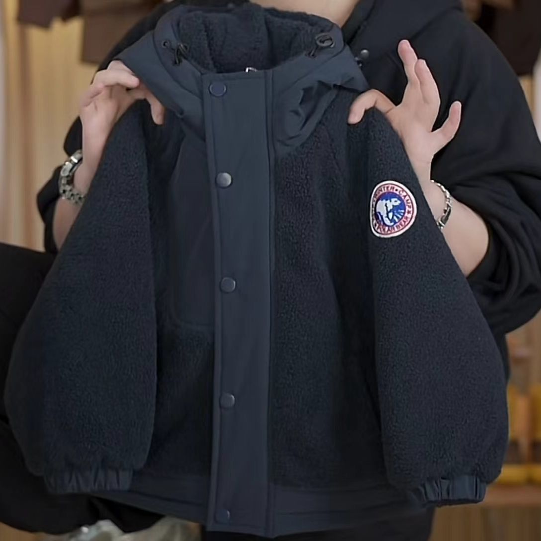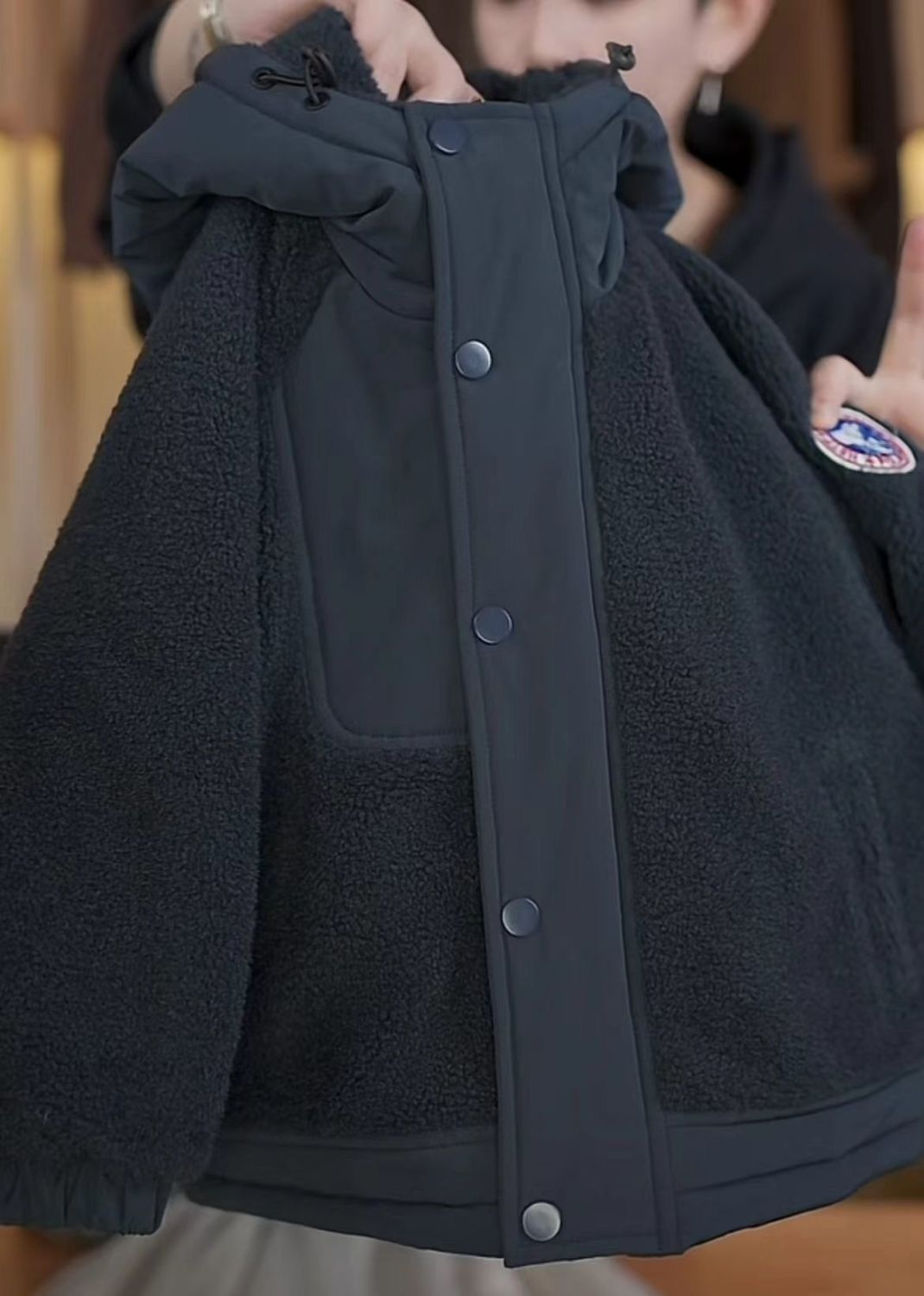 남학생 겨울 코트 2024 남학생과 여학생을위한 새로운 모직 스웨터 누빔안감 코튼 패딩 코트 외국 스타일의 후드 두꺼운 코트