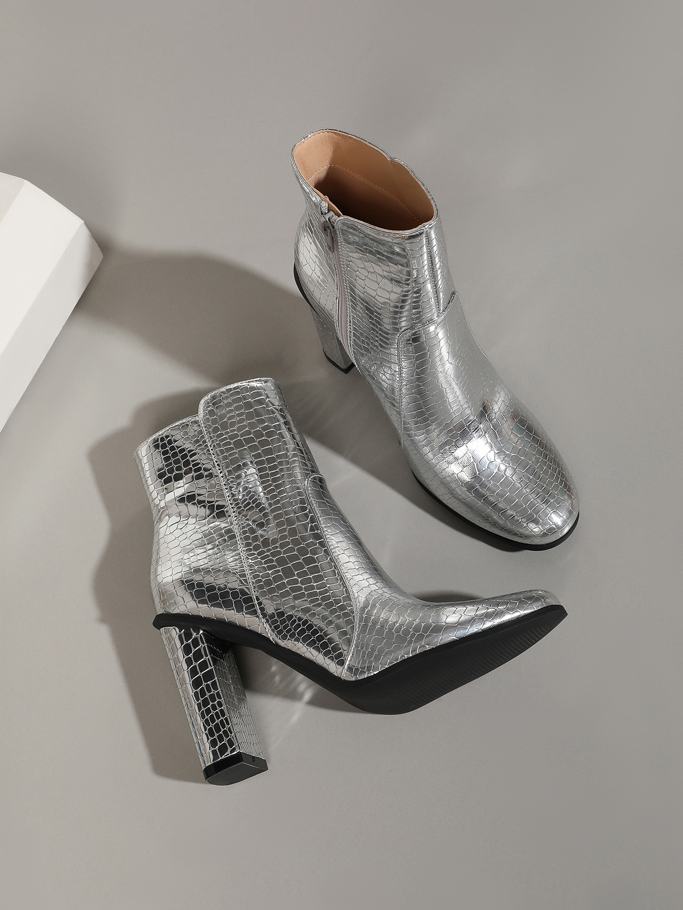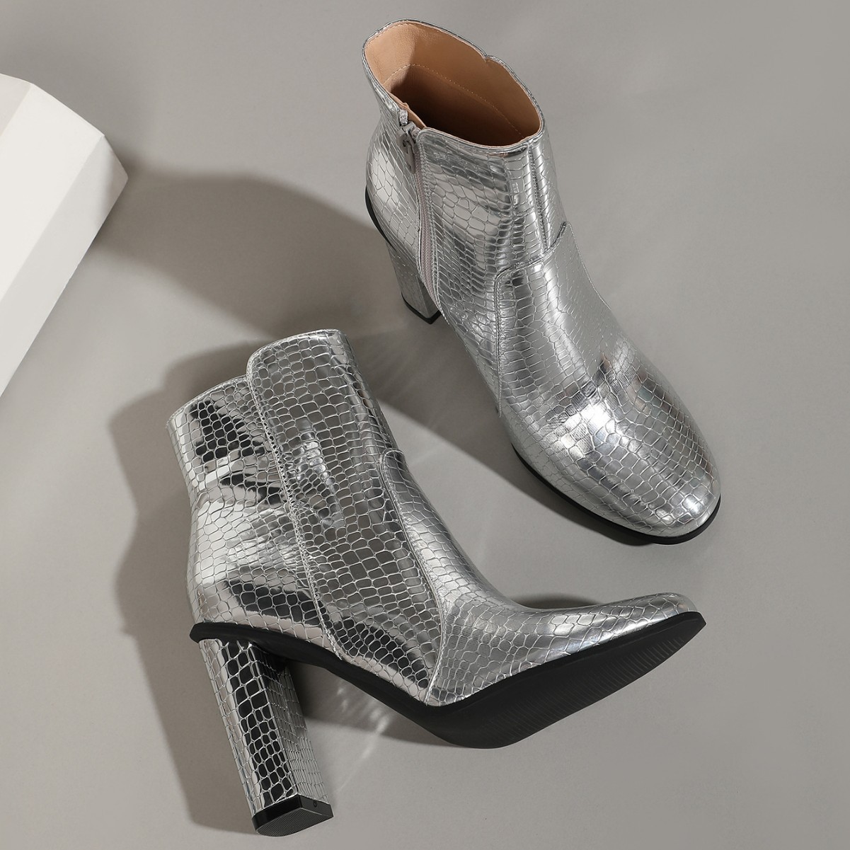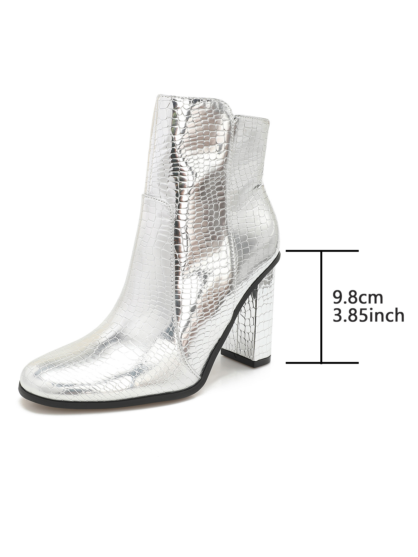 실버 부츠 웨딩 신발 두꺼운 힐 하이힐 발목 부츠 여성 부츠 패션 새로운 서양 부츠 바이커 부츠 전투 부츠 첼시