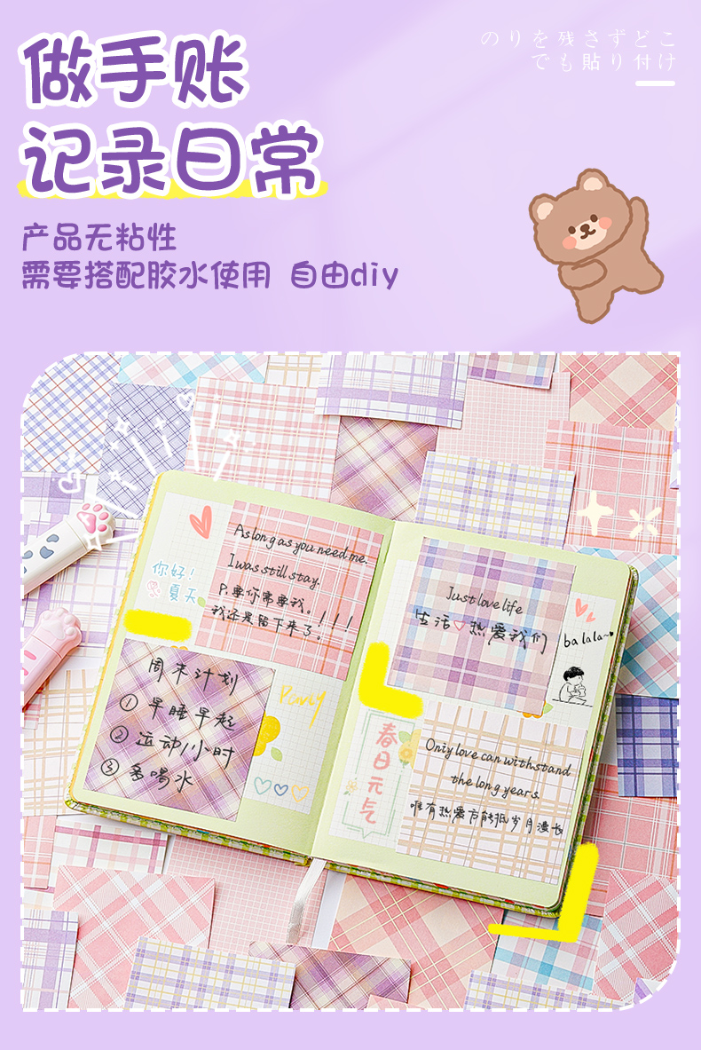 格子便签纸手帐便利贴高颜值便签本便签贴纸学生用便签纸无粘昌凌
