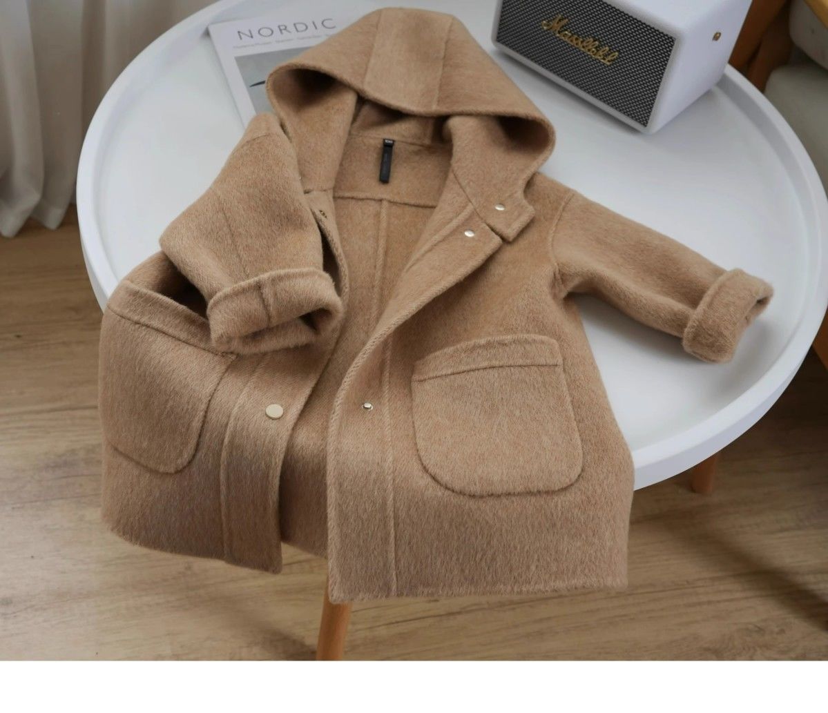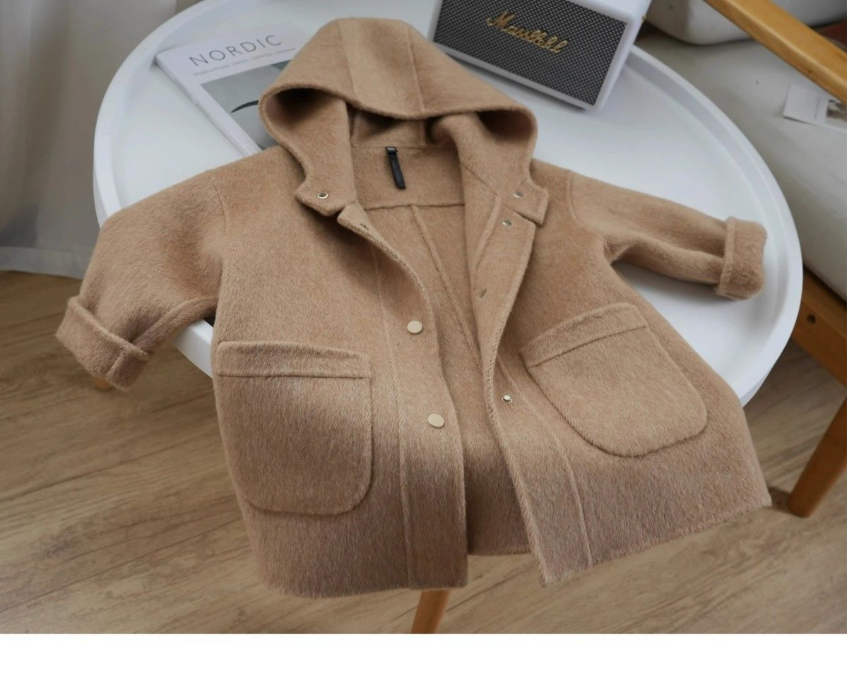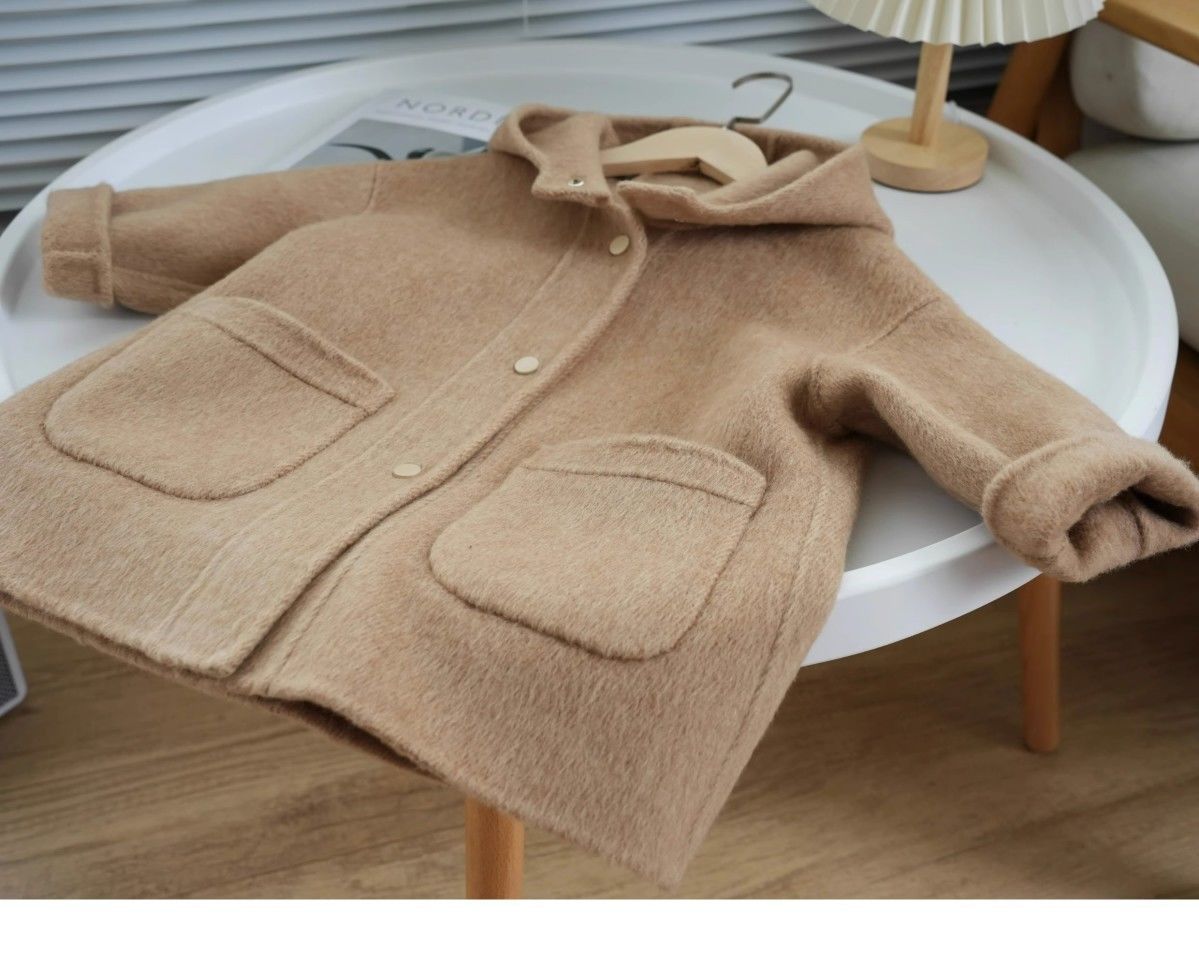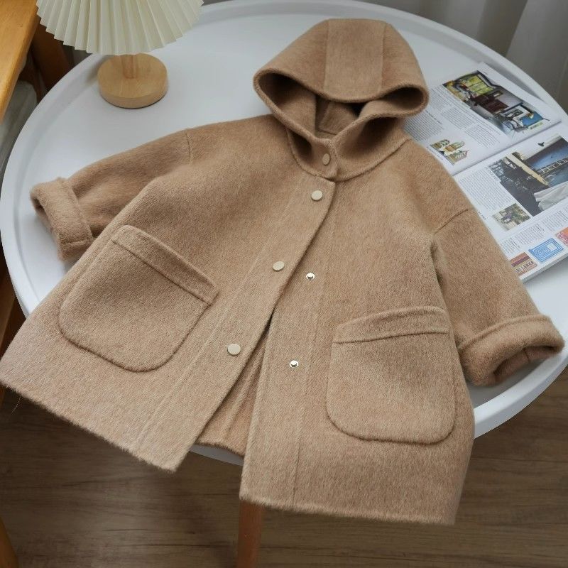한국 아동복 2023 가을과 겨울 새로운 양면 캐시미어 코트 소녀 롱 코트 울 어린이 트렌치 코트스토어 가기