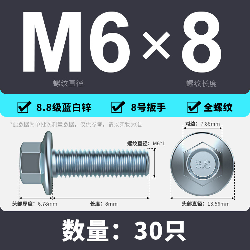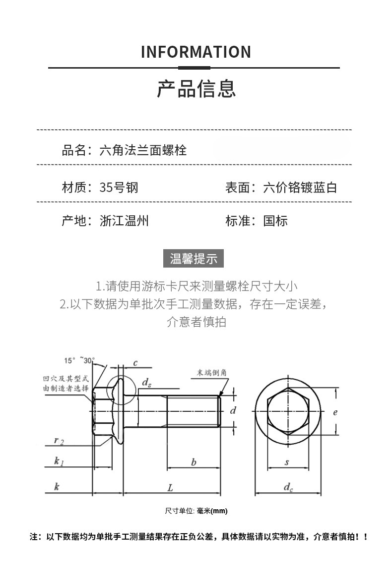 8.8 등급 아연 도금 외부 육각 플랜지 스크류 패드 육각형 볼트 GB5787 파란색과 흰색 m5m6m8m10m12스토어 가기