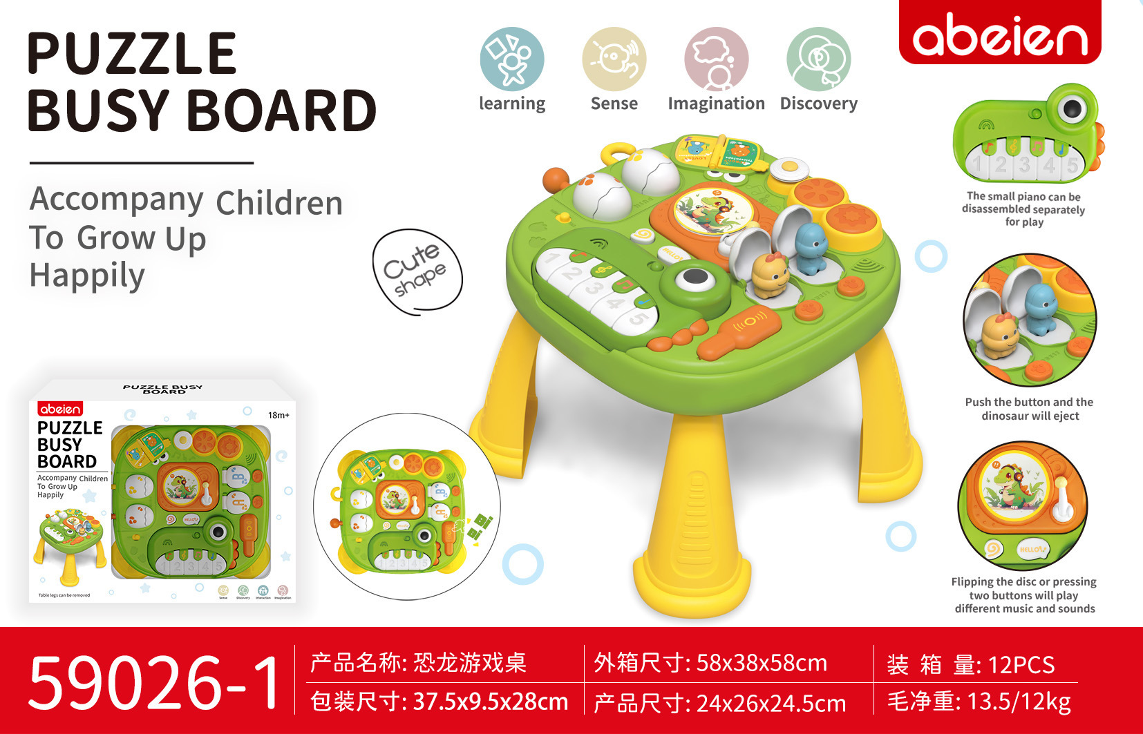 电动恐龙钢琴游戏桌-英文开窗盒