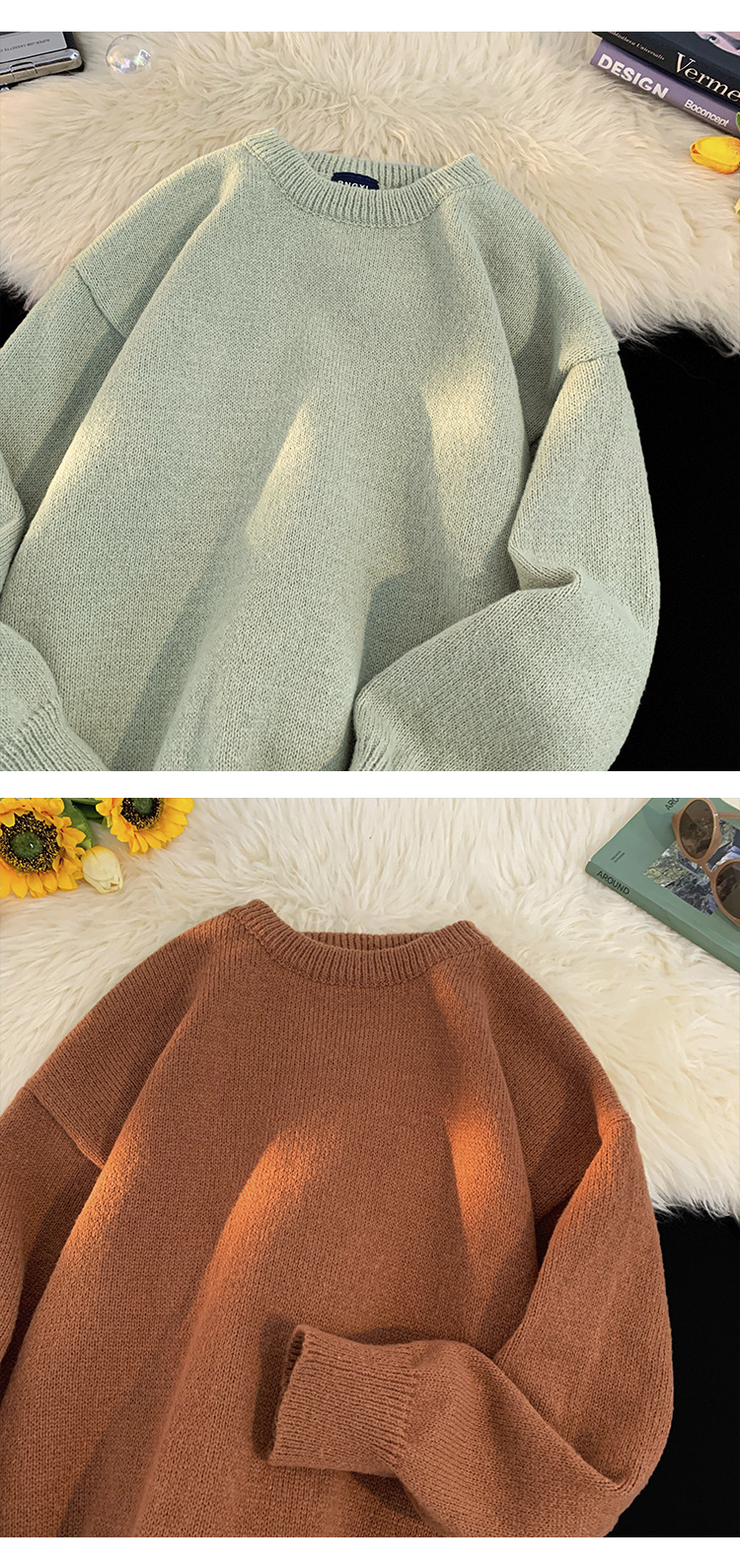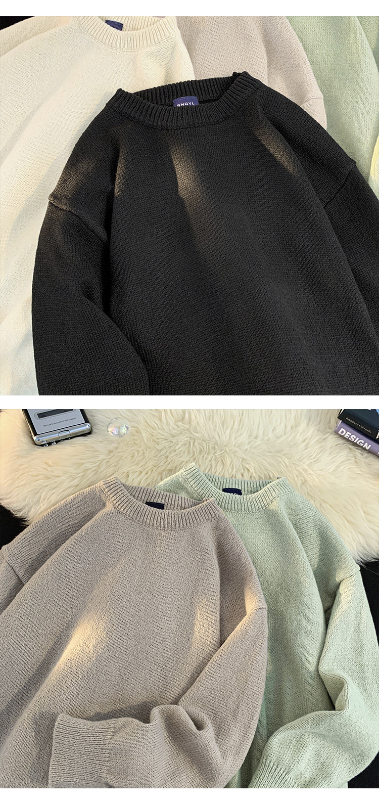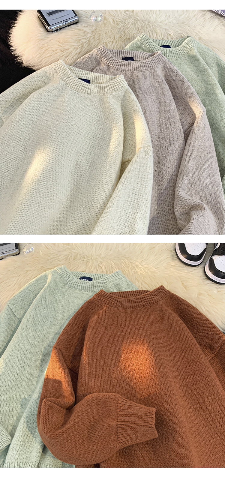 솔리드 컬러 풀오버 스웨터 남자 가을 겨울 간단한 올 매치 크루 넥 스웨터 홍콩 스타일 루즈베이스 스웨터 크로스 보더 스웨터스토어 가기