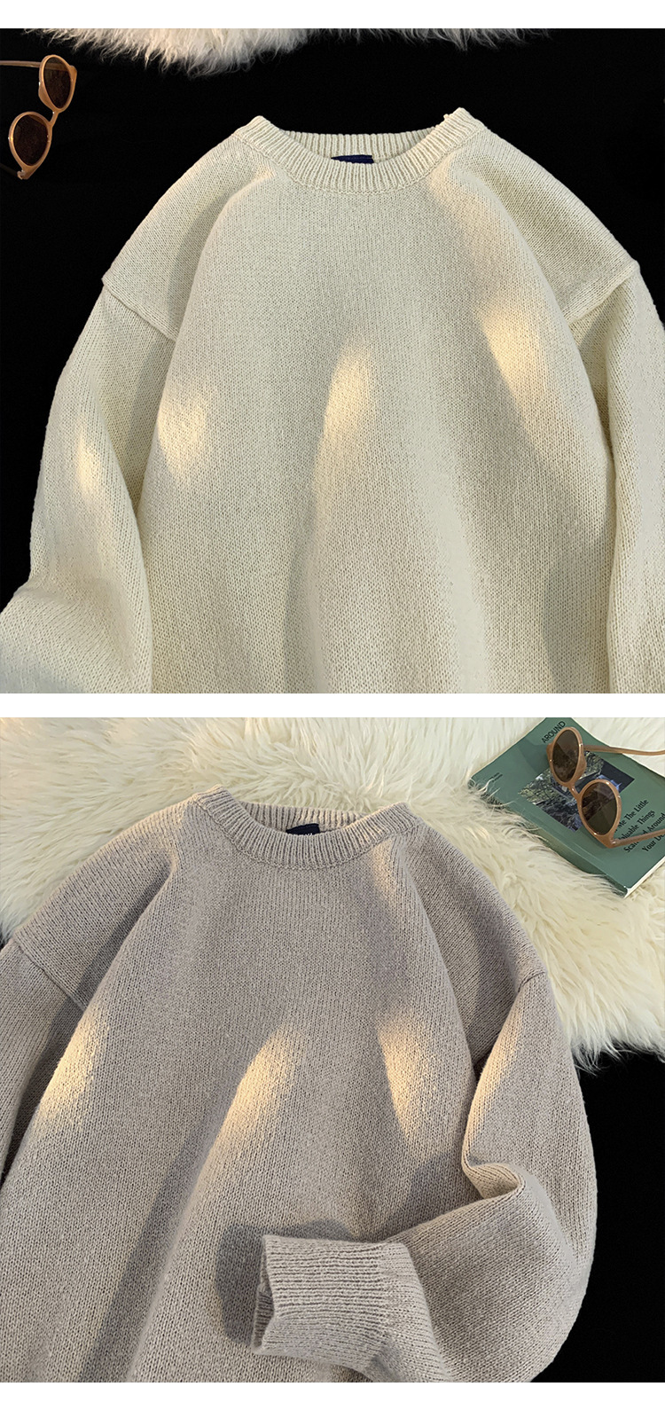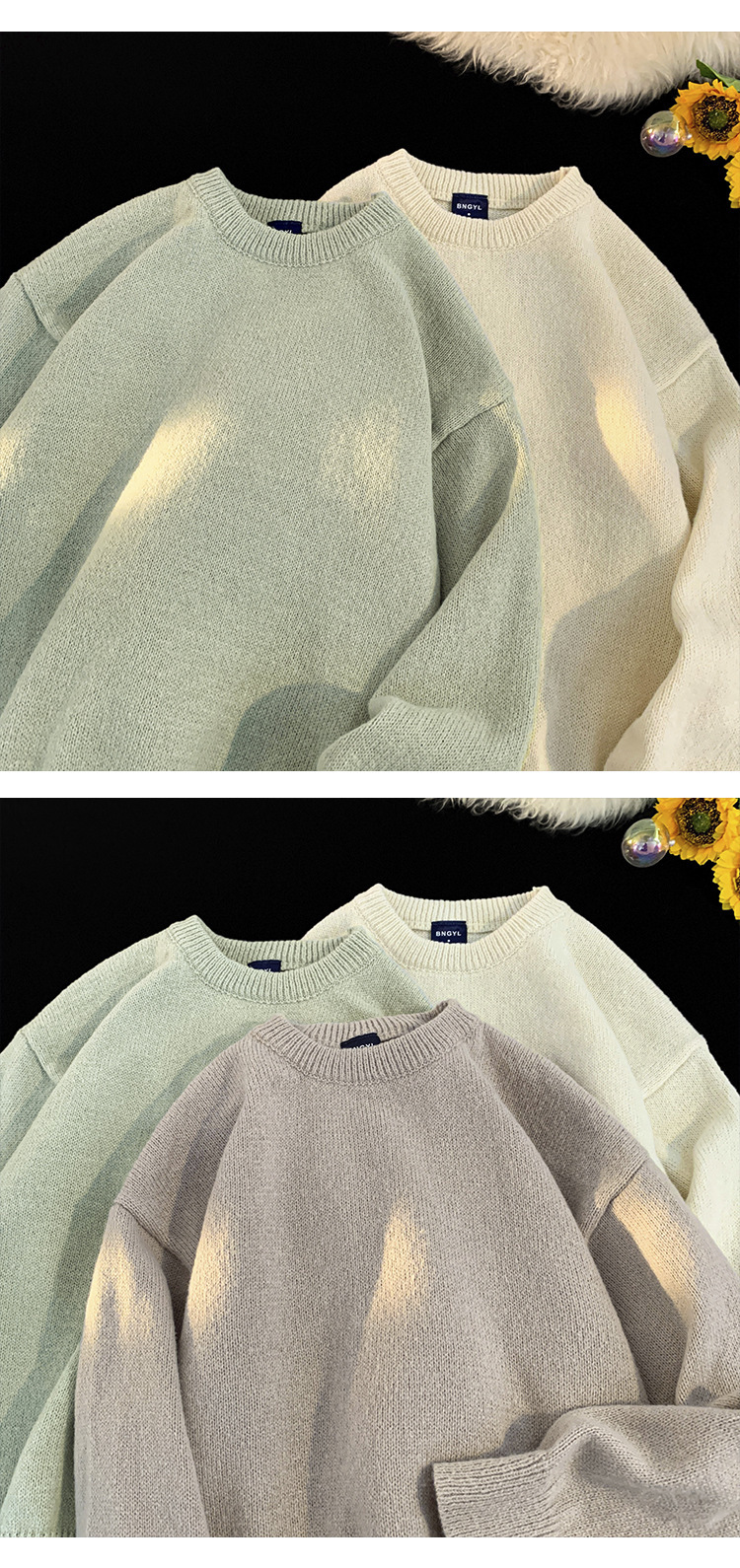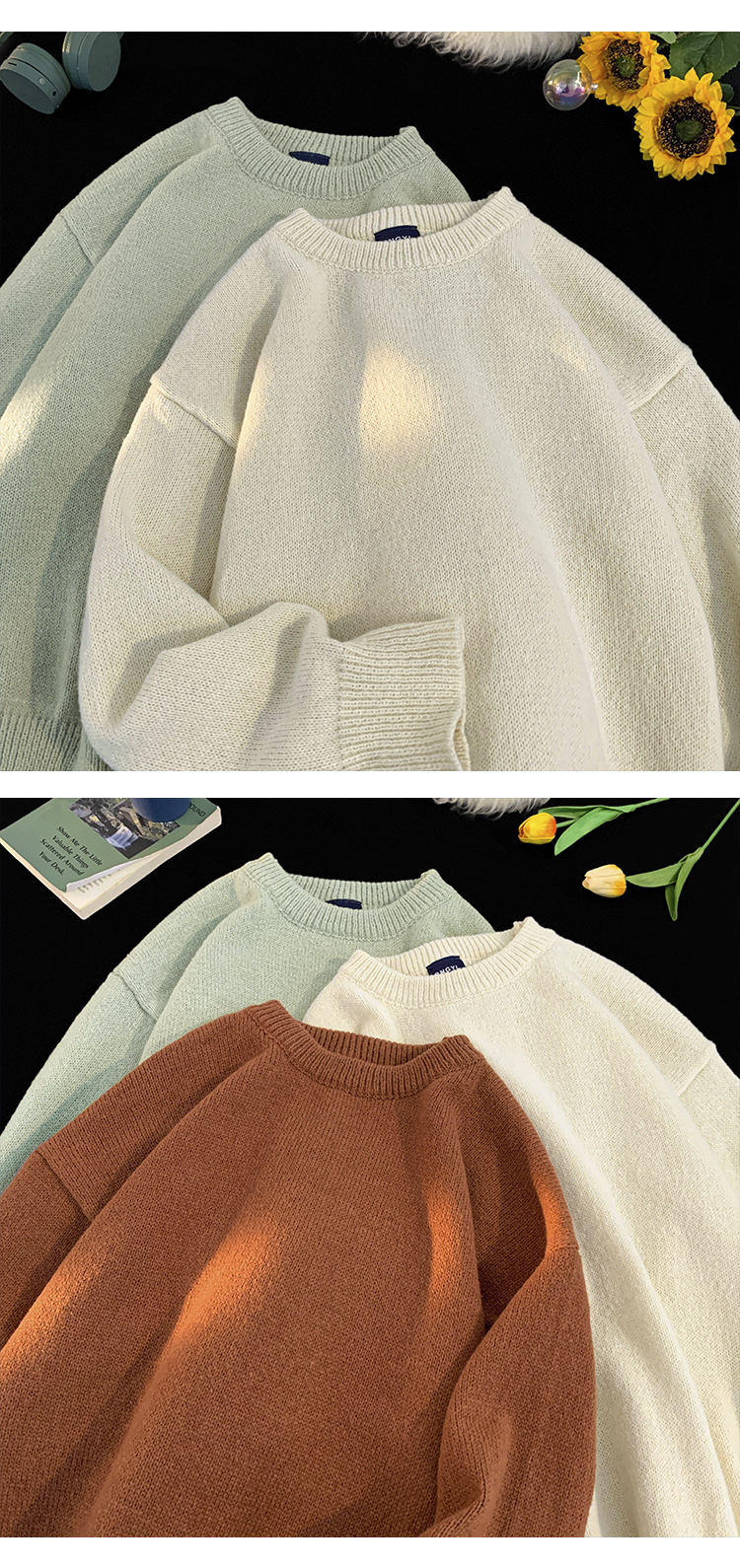 솔리드 컬러 풀오버 스웨터 남자 가을 겨울 간단한 올 매치 크루 넥 스웨터 홍콩 스타일 루즈베이스 스웨터 크로스 보더 스웨터스토어 가기