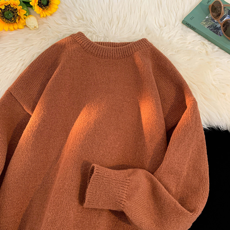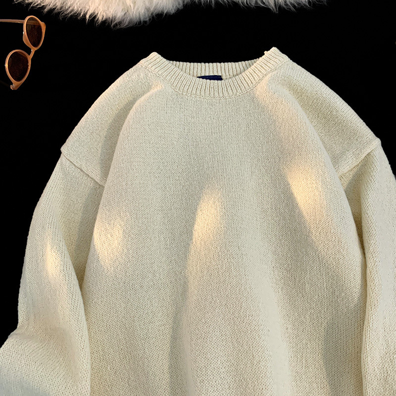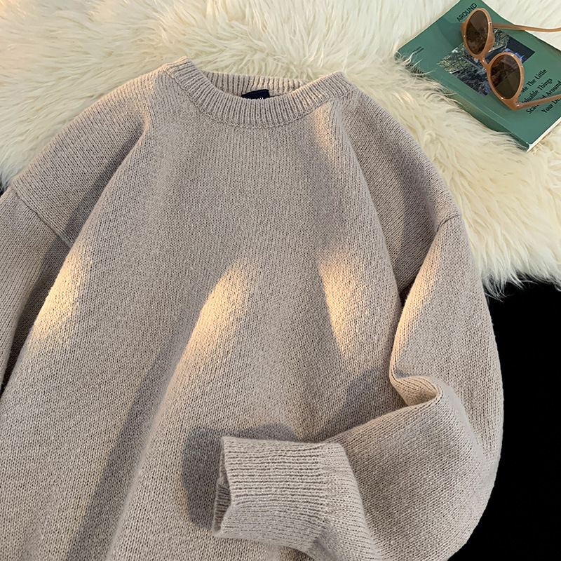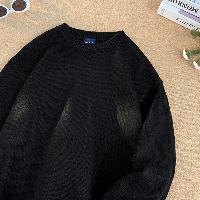솔리드 컬러 풀오버 스웨터 남자 가을 겨울 간단한 올 매치 크루 넥 스웨터 홍콩 스타일 루즈베이스 스웨터 크로스 보더 스웨터