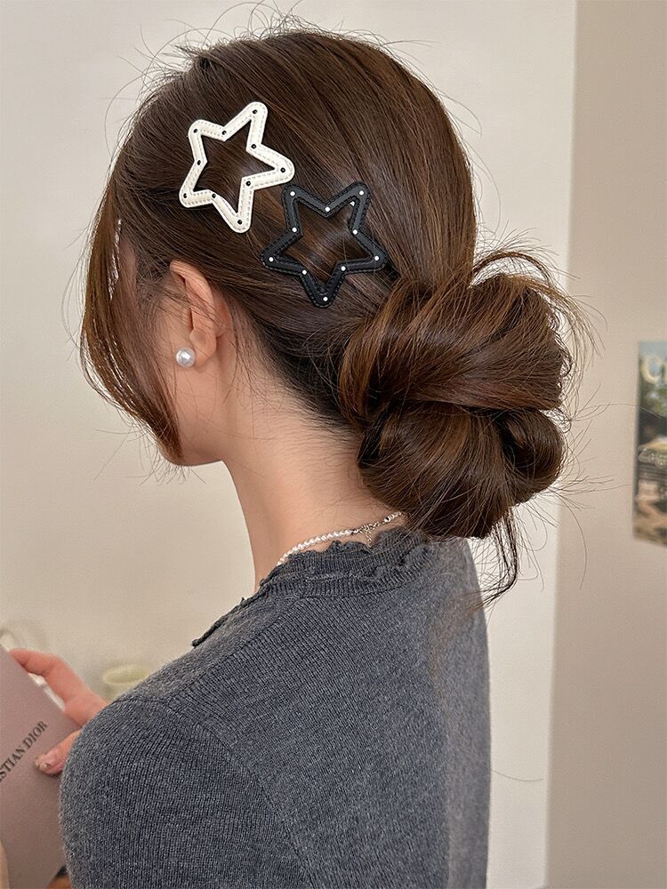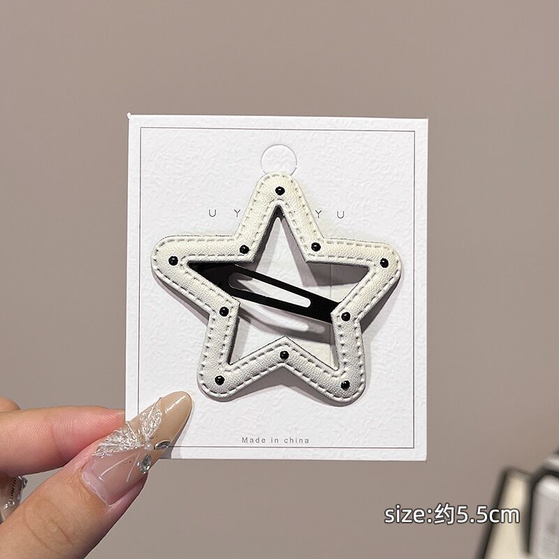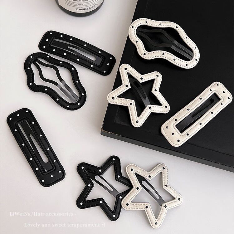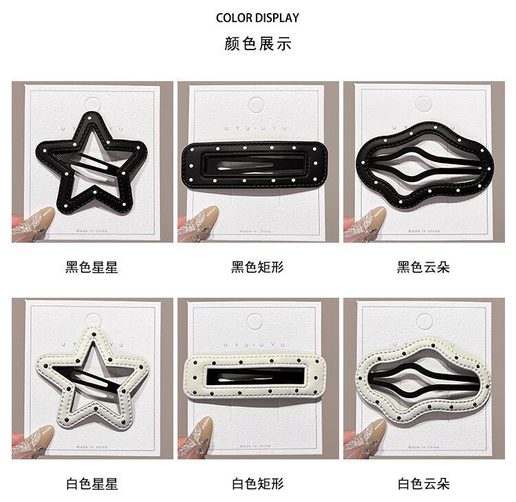 흑백 웨이브 도트 가죽 BB 클립 어린이 봄과 여름 새로운 달콤한 다섯개 별 올스타 구름 인터넷 축하 간단한 여성 헤어핀스토어 가기