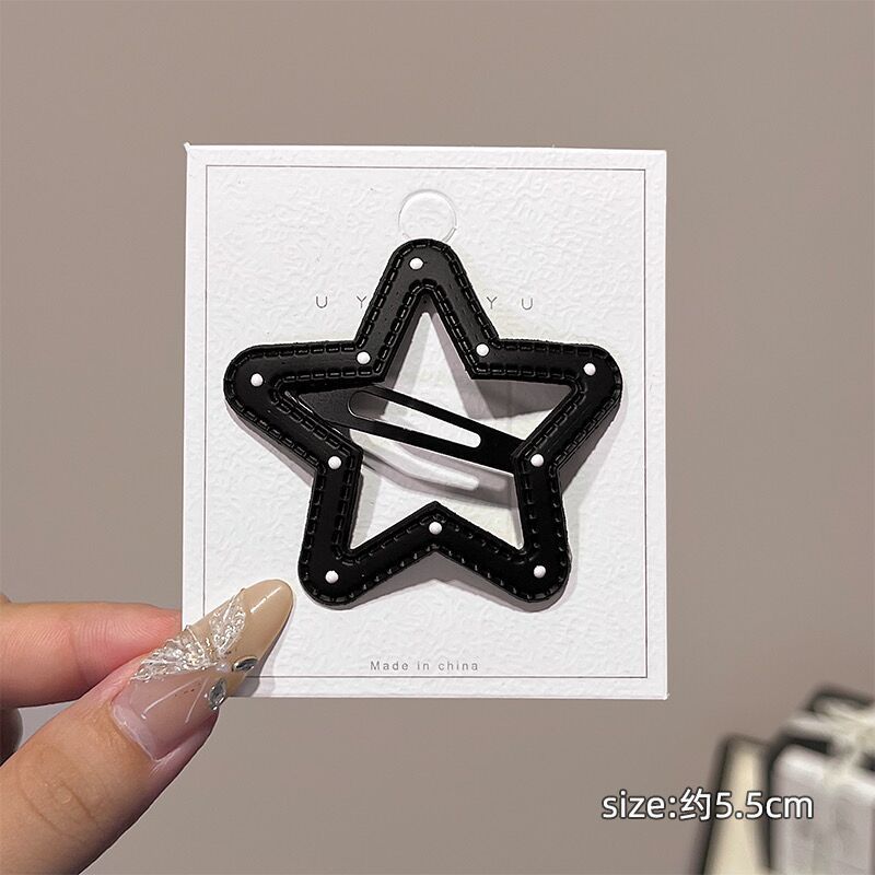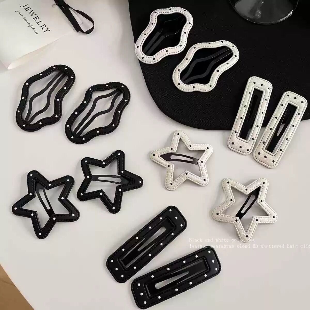 흑백 웨이브 도트 가죽 BB 클립 어린이 봄과 여름 새로운 달콤한 다섯개 별 올스타 구름 인터넷 축하 간단한 여성 헤어핀