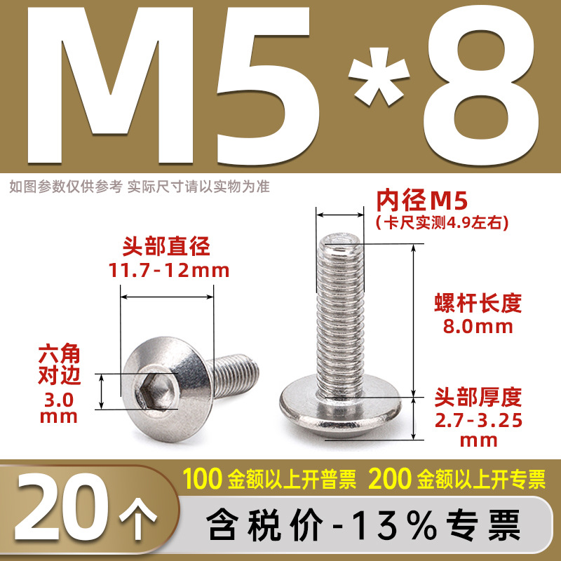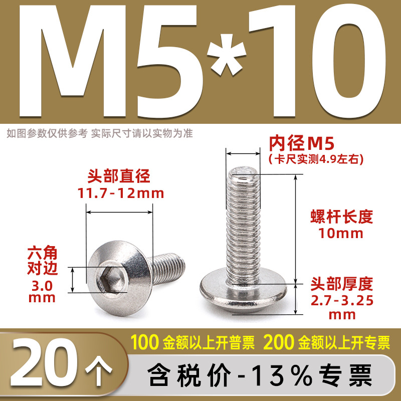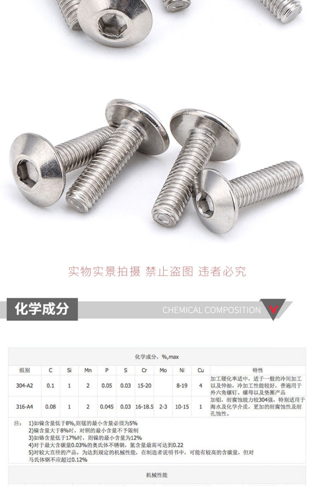 304 스테인레스 스틸 우산 유형 육각형 소켓 스크류 대형 플랫 헤드 스크류 라운드 헤드 육각형 소켓 볼트 M3M4M5M6M8스토어 가기
