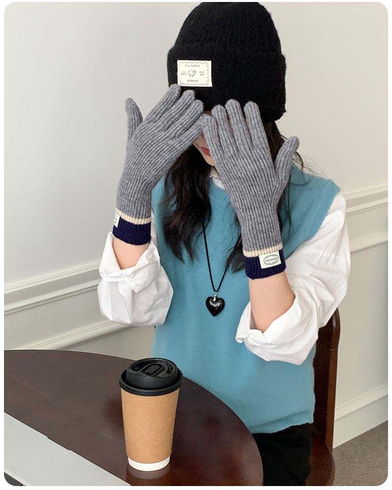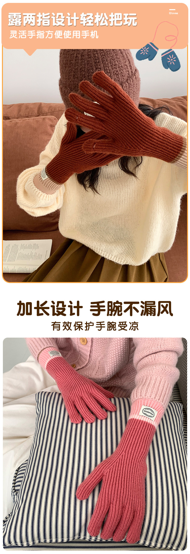 컬러 매칭 핑거 장갑 2024 겨울 두꺼운 터치 스크린 휴대 전화를 타고 방풍 따뜻한 남성과 여성의 니트 울스토어 가기
