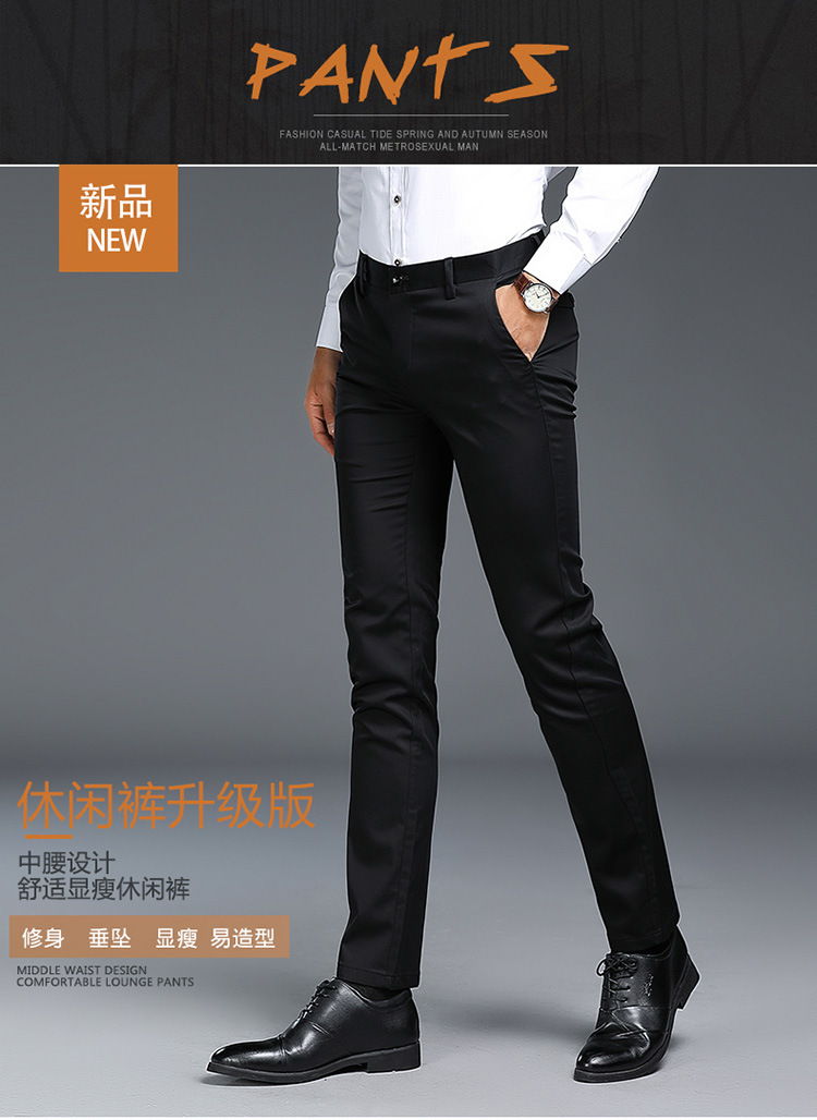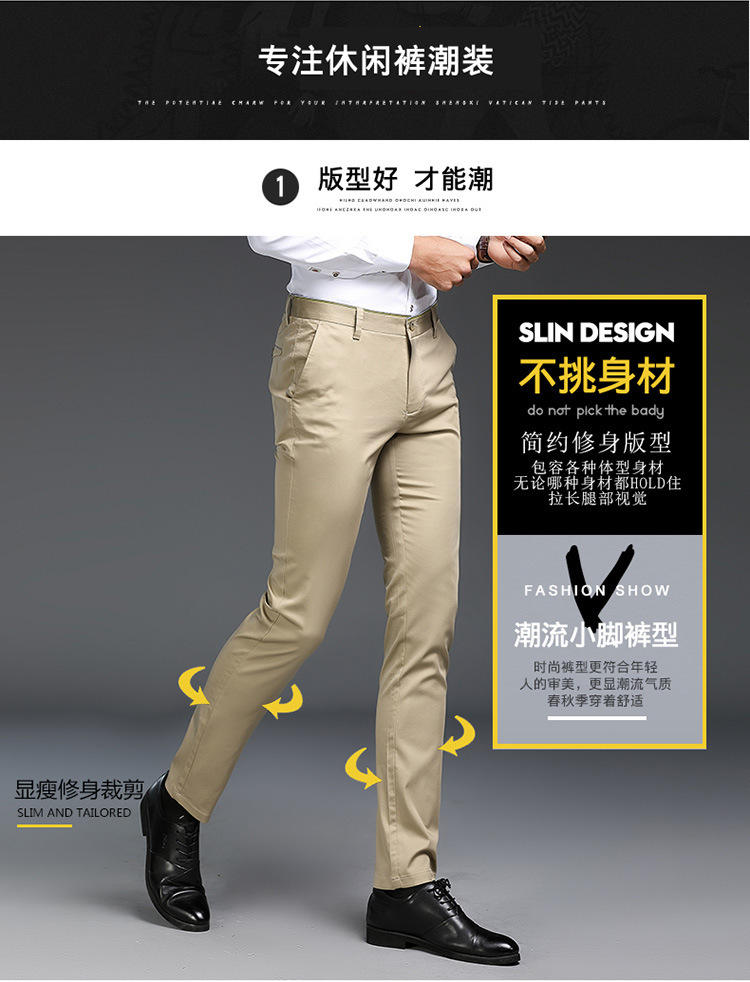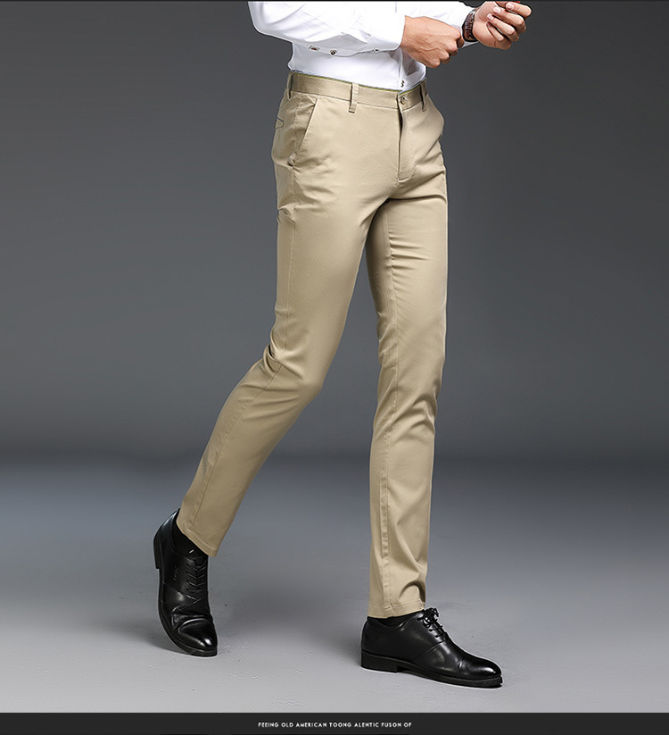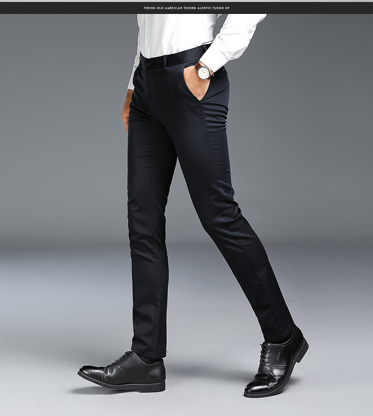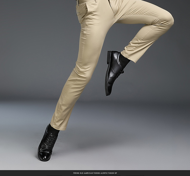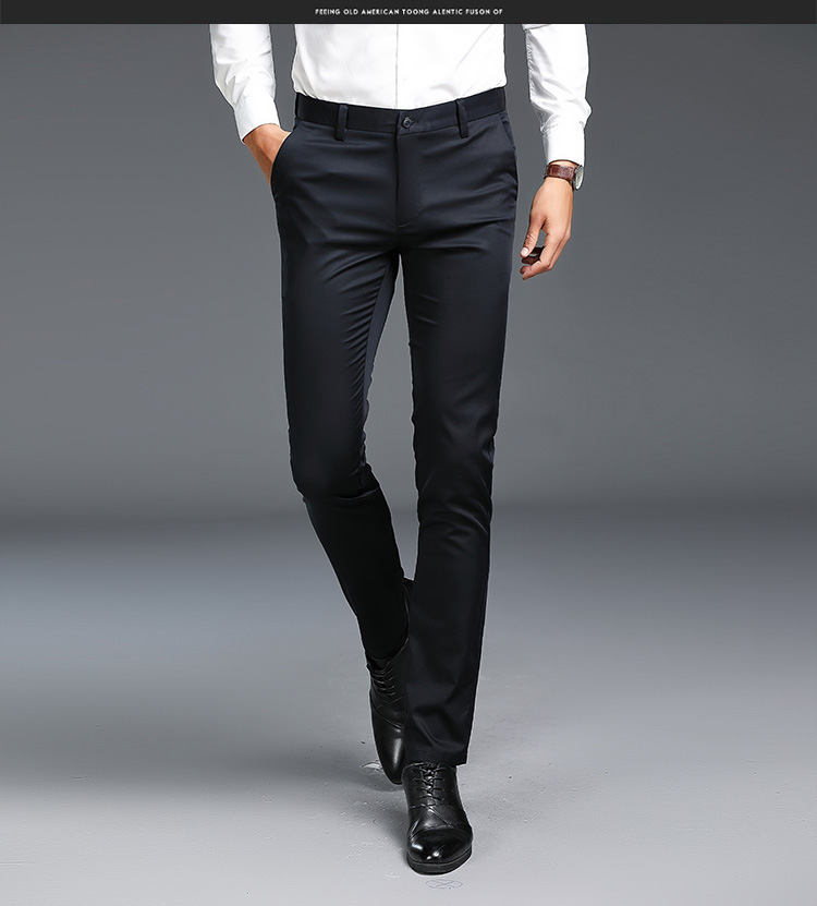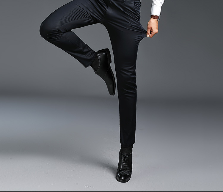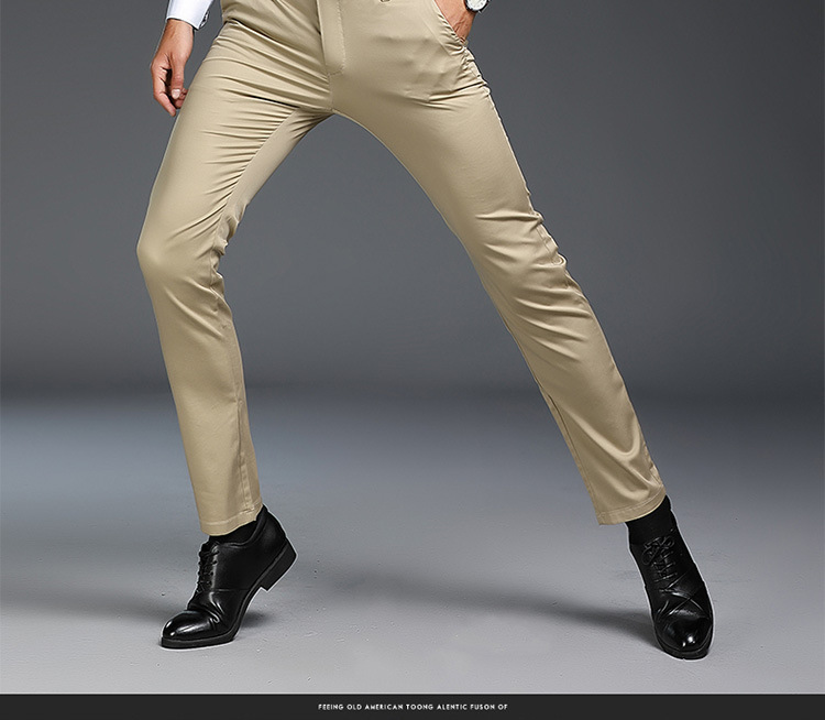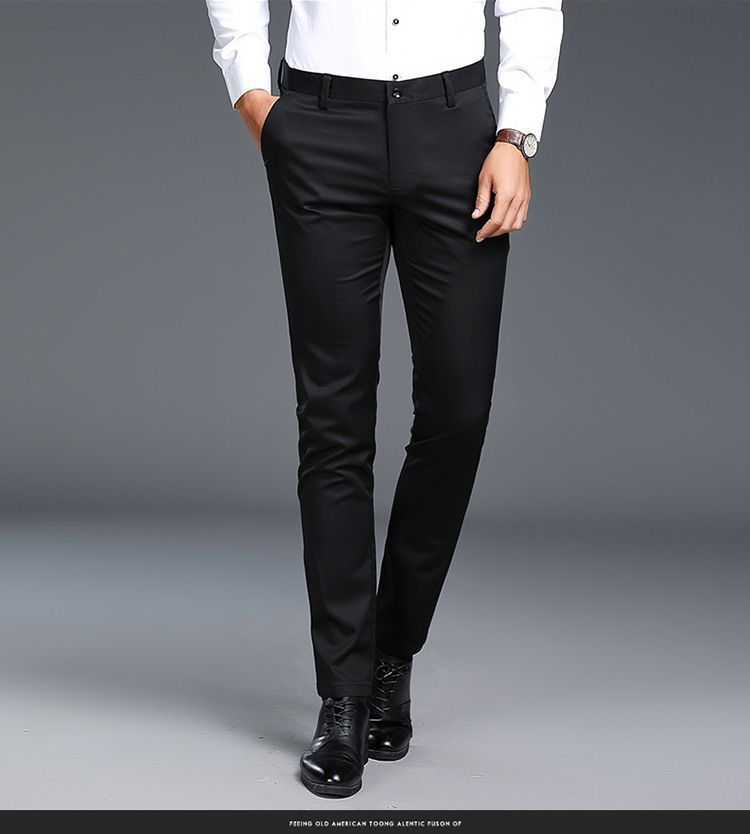 아마존 남성 캐주얼 비즈니스 바지 솔리드 컬러 스트레치 스트레이트 바지 원피스 바지 남성 4S 작업 국경스토어 가기