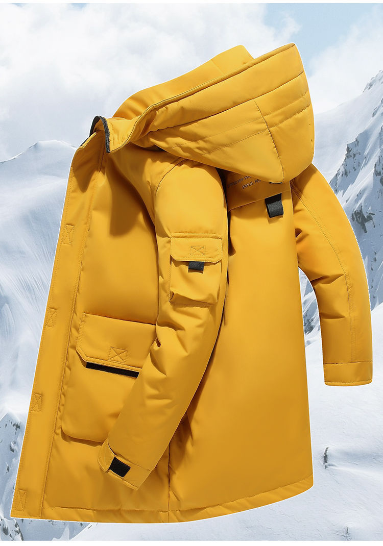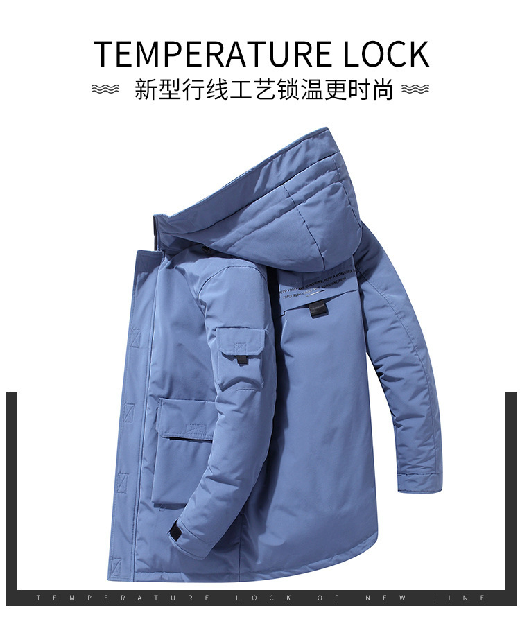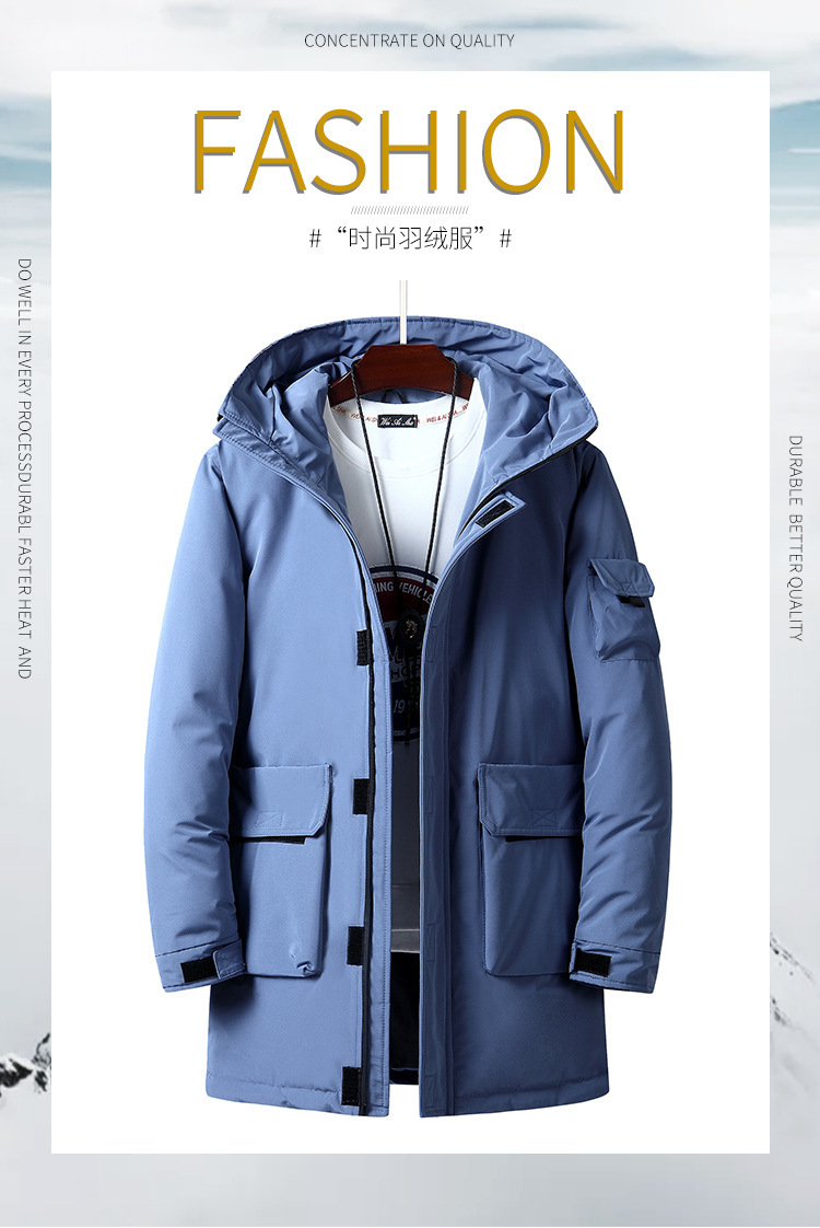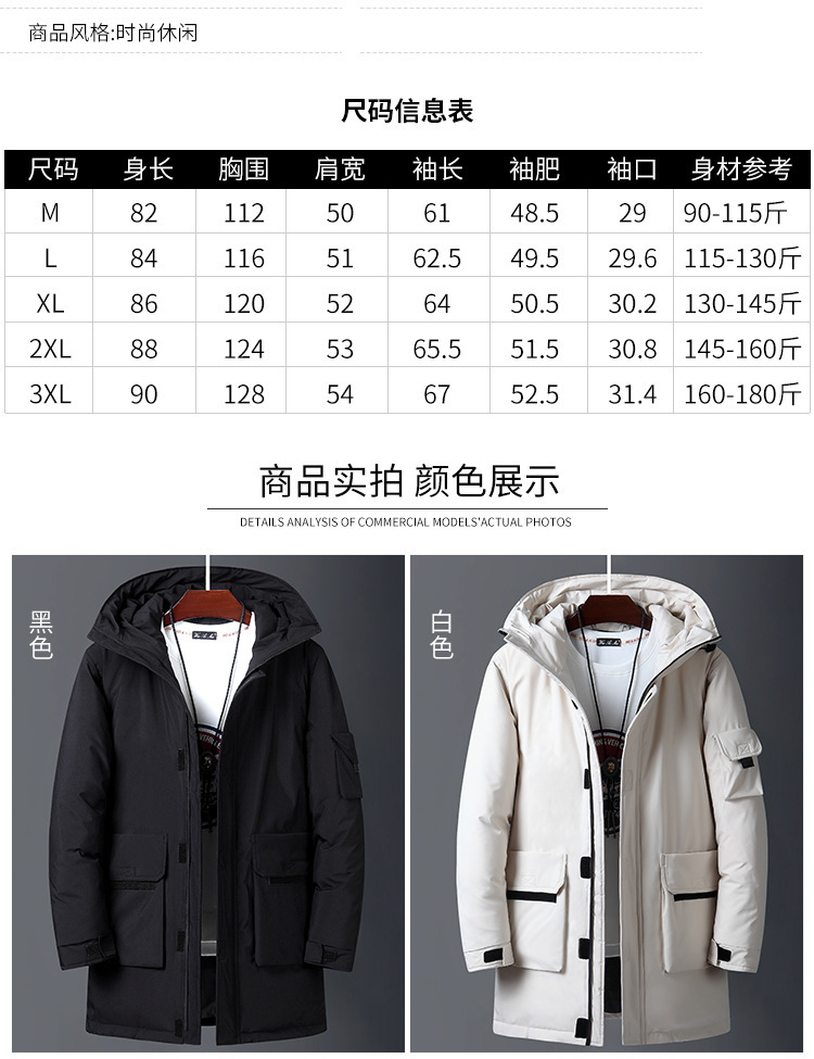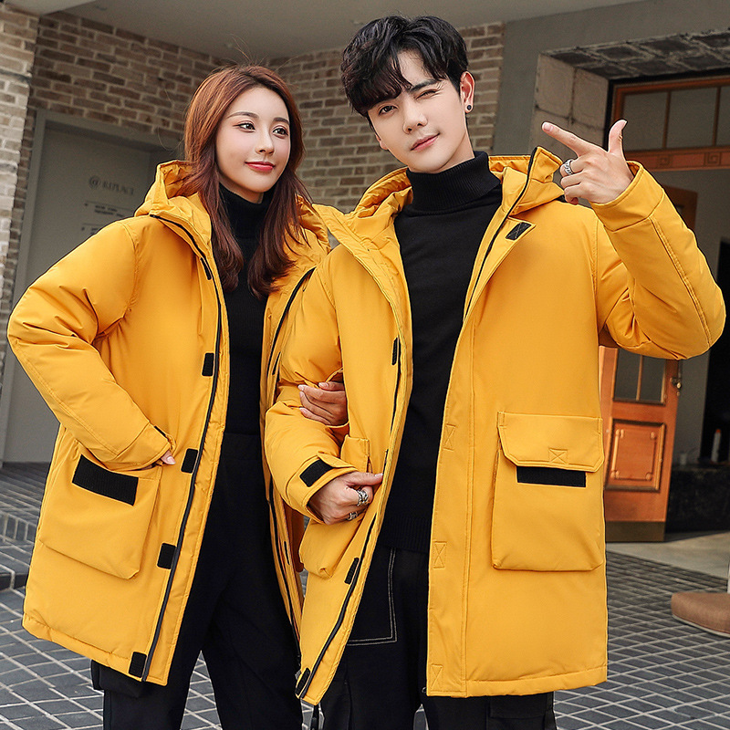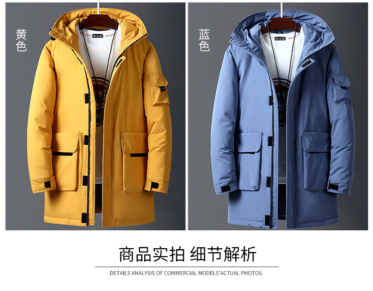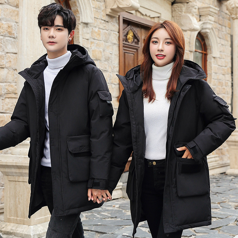 다운 재킷 남자의 중간 길이 겨울 한국 스타일 유행 잘 생긴 슬림-커플 남성을위한 두꺼운 따뜻한 야외 작업복