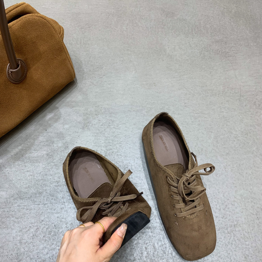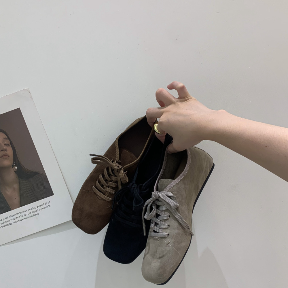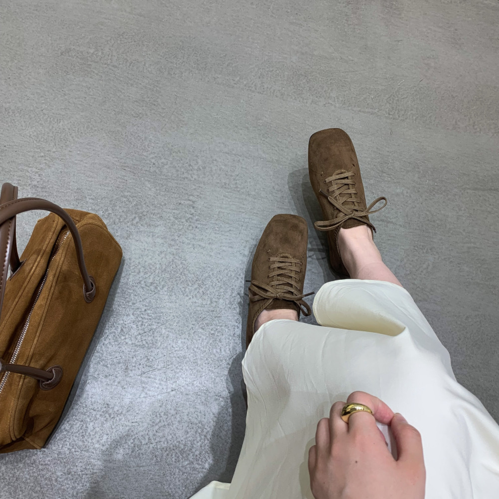 내부 높이 스웨이드 스퀘어 헤드 레이스 업 작은 가죽 신발 여성의 2024 가을 및 겨울 새로운 영국 캐주얼 여성 신발 깊은 입 싱글 레이어 신발스토어 가기