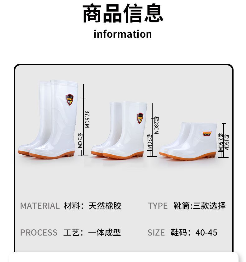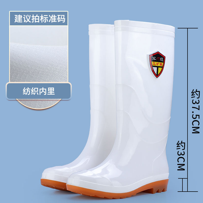 화이트 레인 부츠 남성용 오일 저항성 미끄럼 방지 산 및 알칼리 저항성 중저 높은 장화 두꺼운 황소 바닥 식품 공장 특수 장화스토어 가기