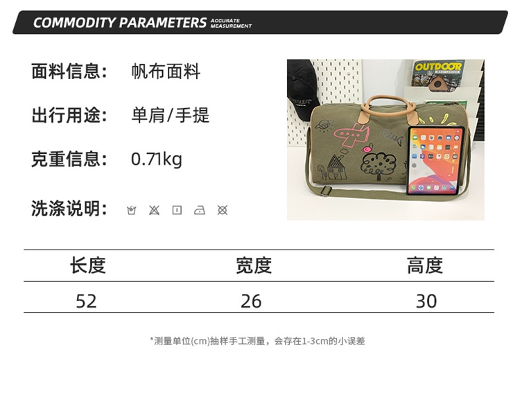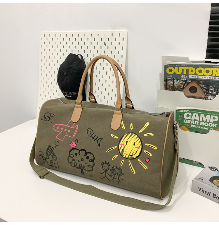 도매 틈새 카키 캔버스 휴대용 레트로 야외 여행 가방 대용량 대비 캐주얼 크로싱 백 체육관 가방스토어 가기