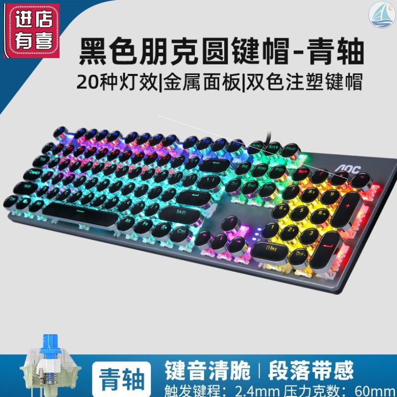 TPV AOC GK410 라운드 펑크 에디션 혼합 라이트 그린 샤프트 실제 기계 키보드 게임 E-스포츠 먹는 치킨 CF 키보드스토어 가기