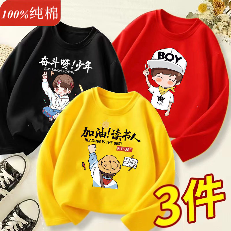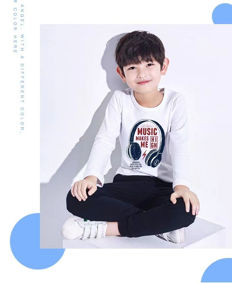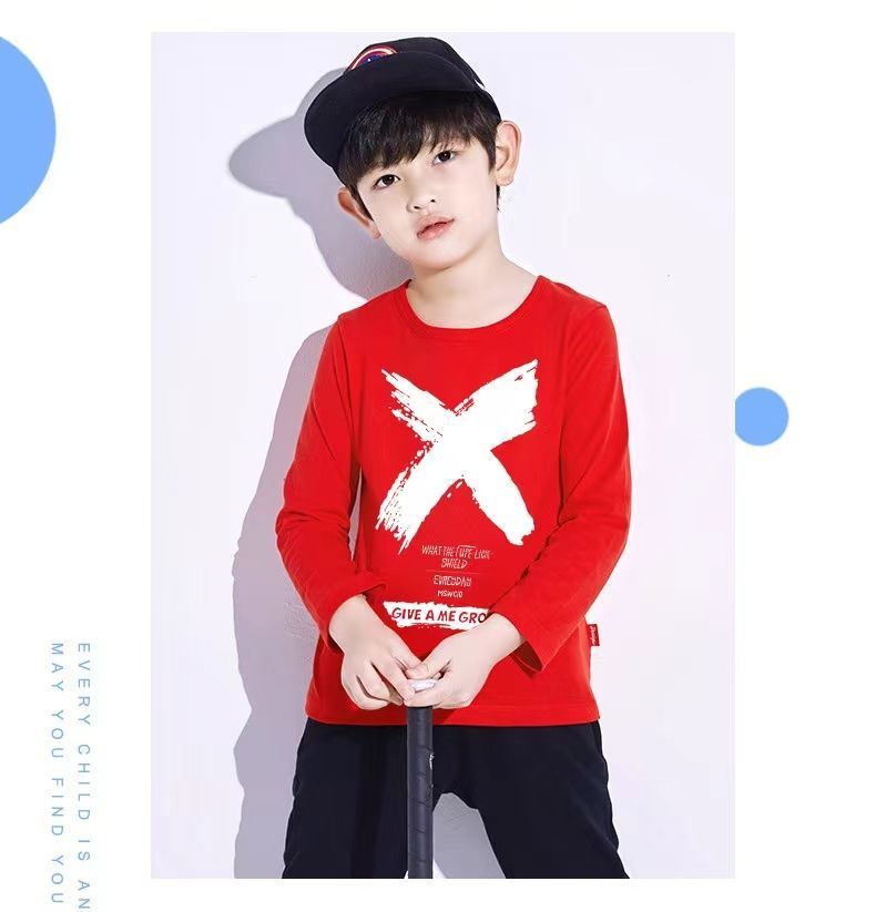 퓨어 코튼 어린이 긴팔 티셔츠 가을 옷 남자들의 서양식 잘 생긴 탑 얇은 옷 트렌디 한 중다 통멩규스토어 가기