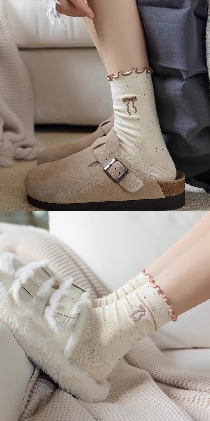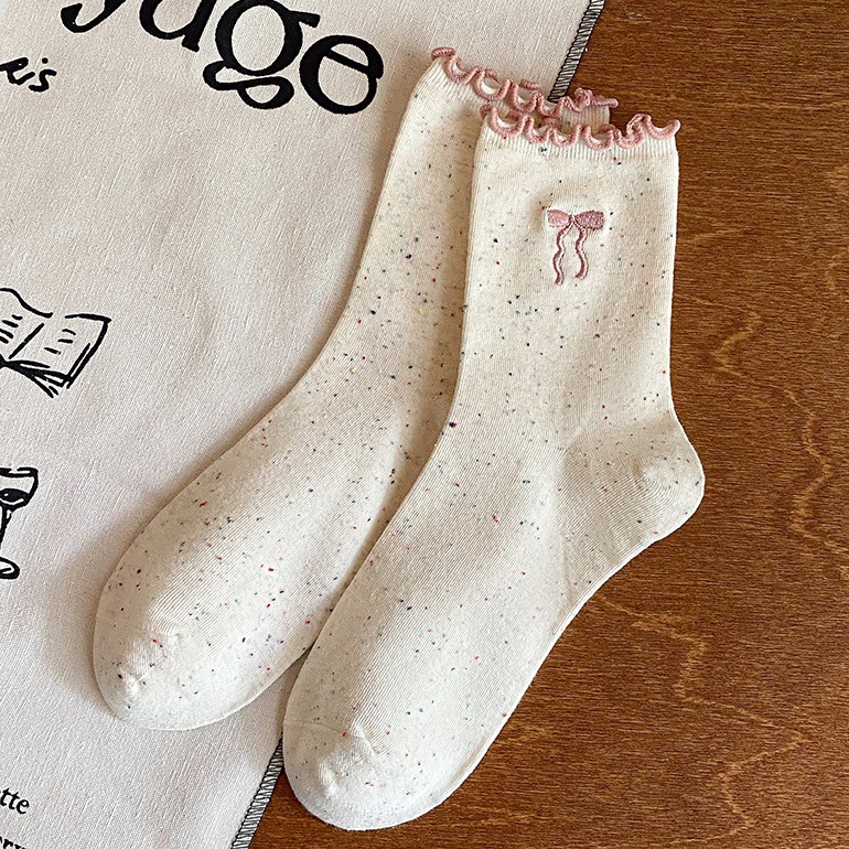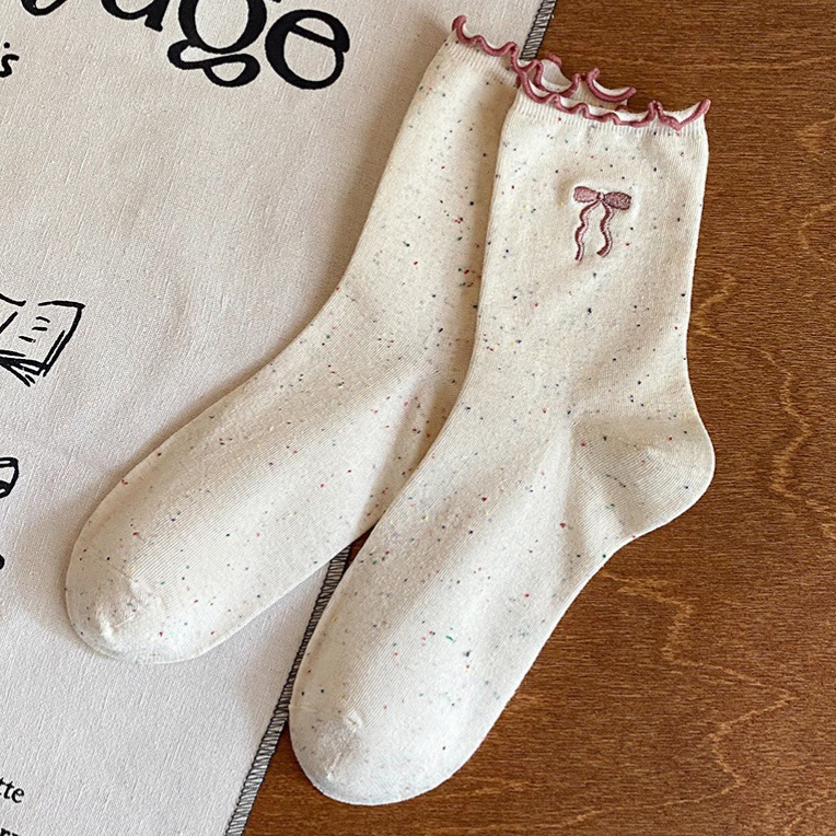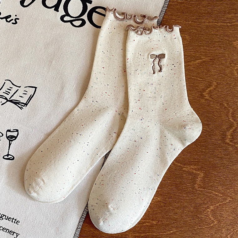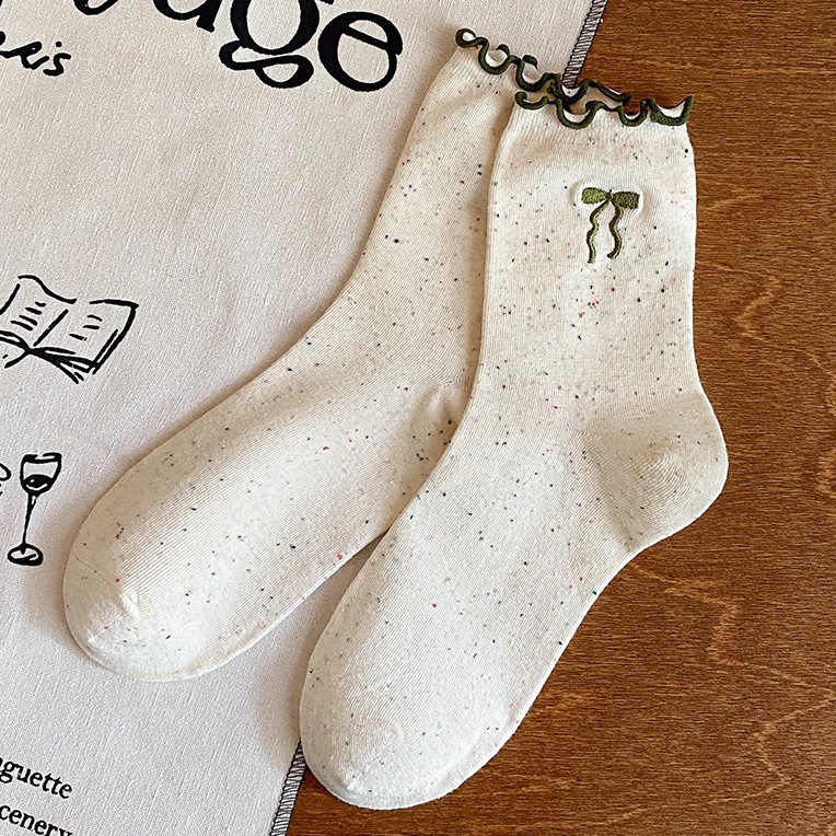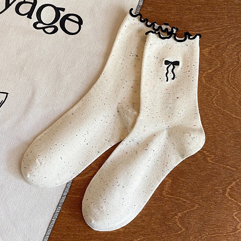 우드 이어 양말 여성의 봄과 가을 중간 길이 양말 Bowknot Ins 트렌디 한 간단한 올 매치 학생 캐주얼 스타킹