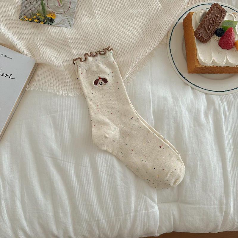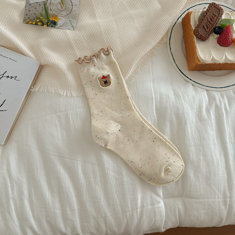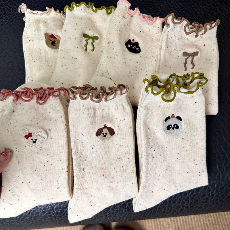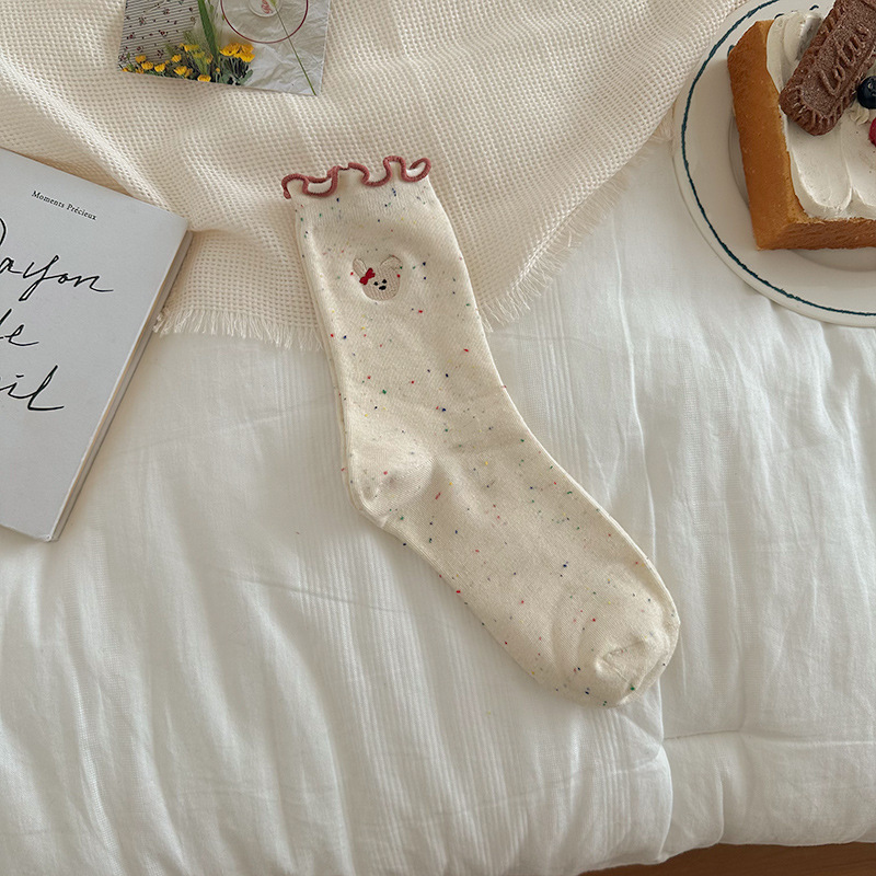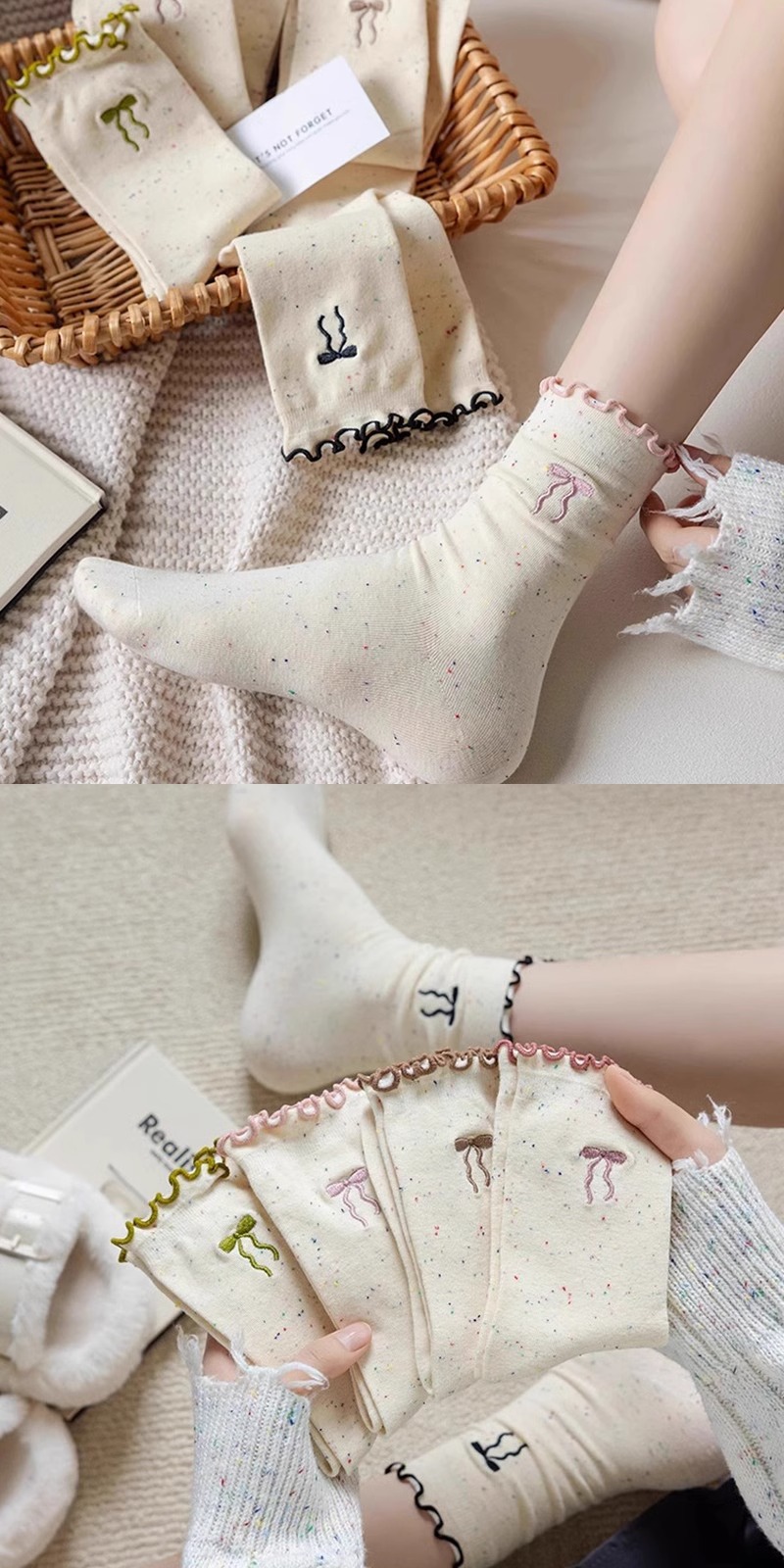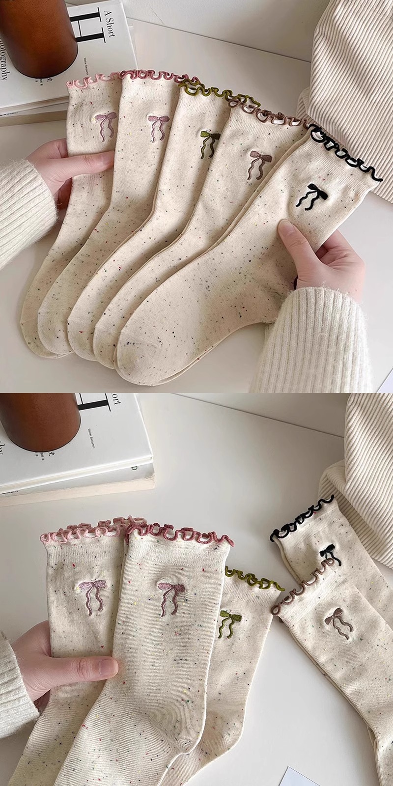 우드 이어 양말 여성의 봄과 가을 중간 길이 양말 Bowknot Ins 트렌디 한 간단한 올 매치 학생 캐주얼 스타킹