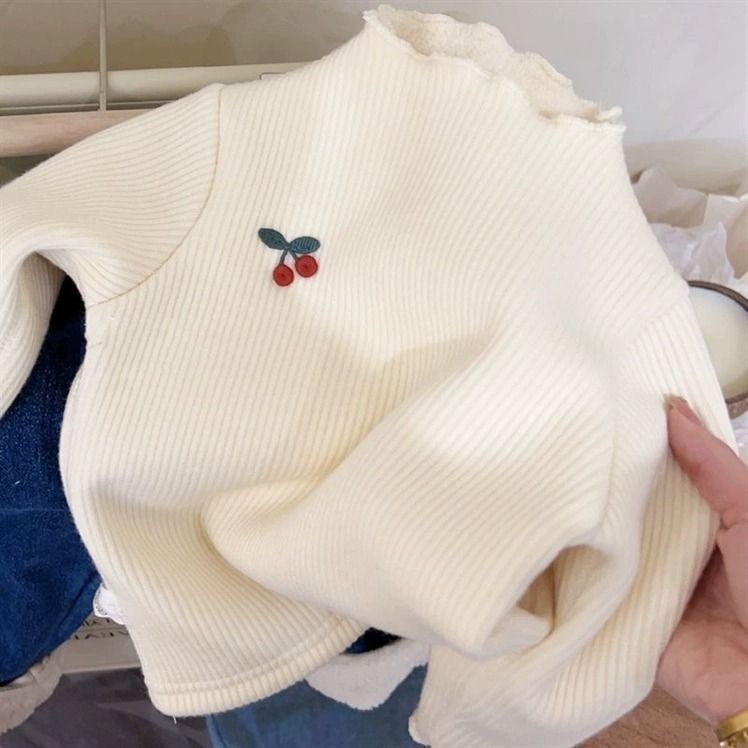 소녀 가을 착용 겨울 세련 된 기모 두꺼운 기본 셔츠 가을 겨울 착용 아기 소녀의 긴 소매베이스 아동복스토어 가기