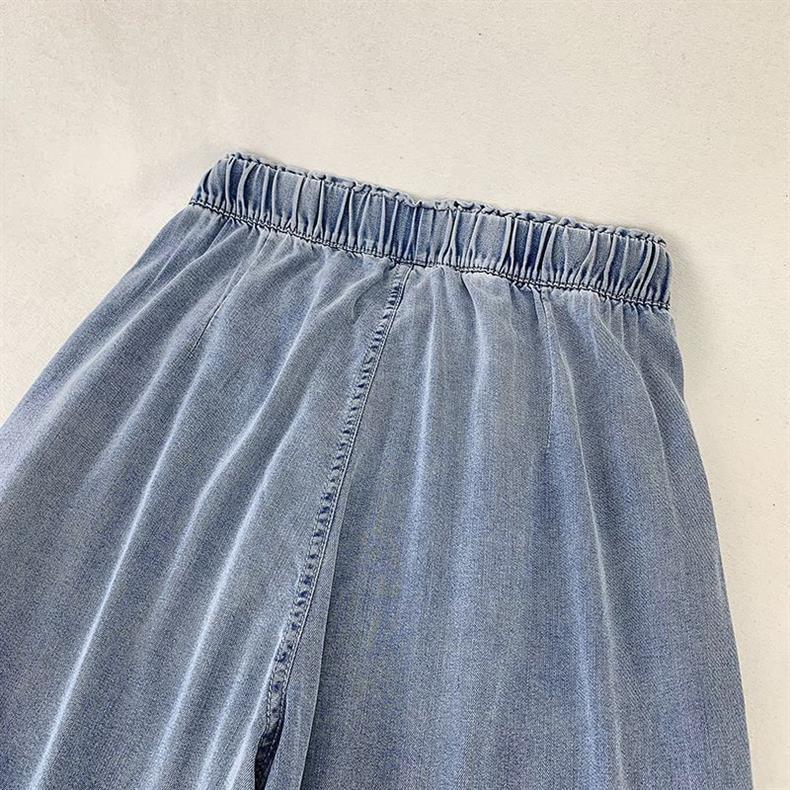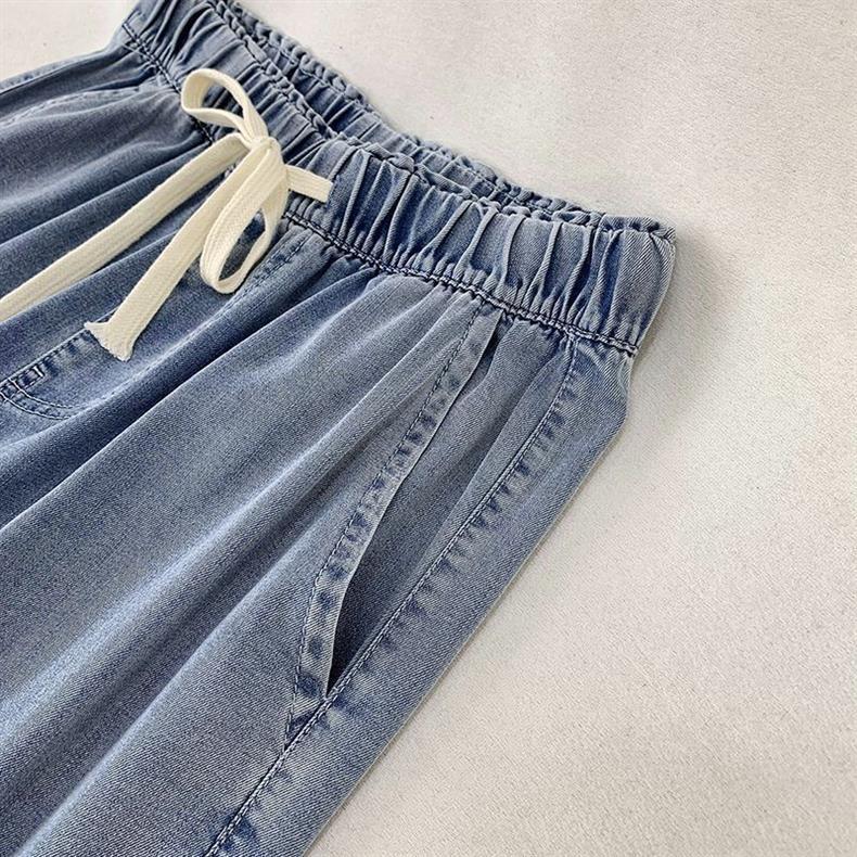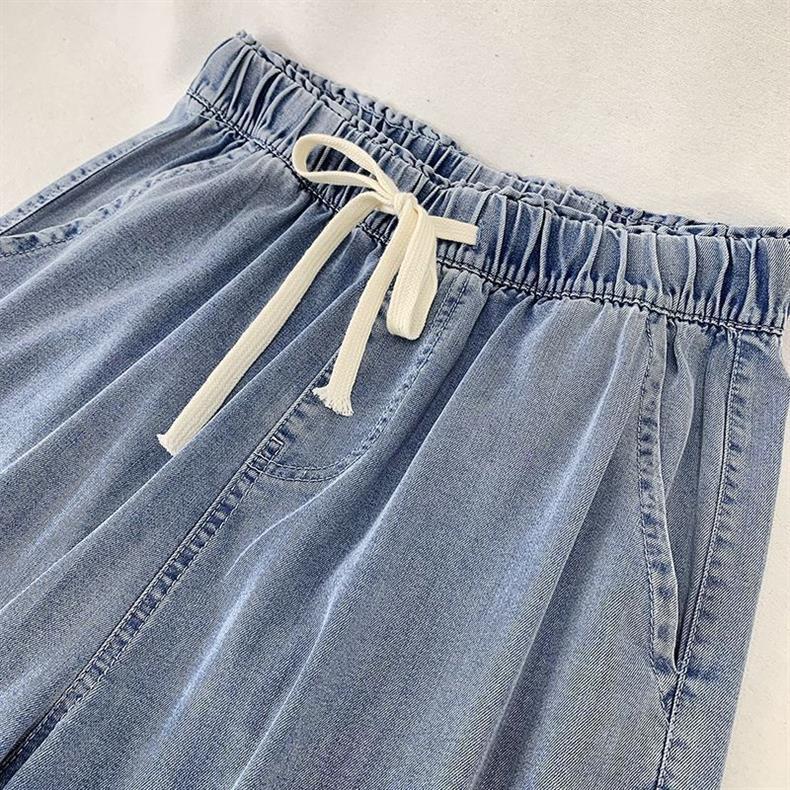 탄성 허리 2024 여름 스트레이트 레그 청바지 여성 통통녀 슬리밍 미드 허리 와이드 레그 바지 올 매치 여름 얇은 바지