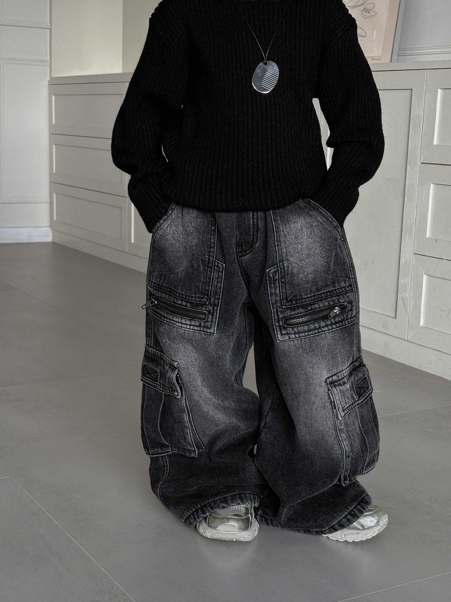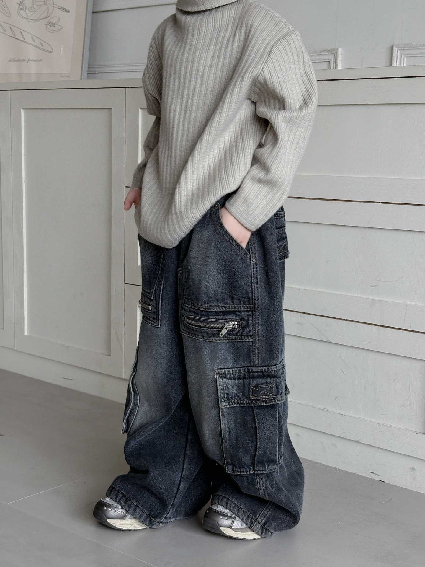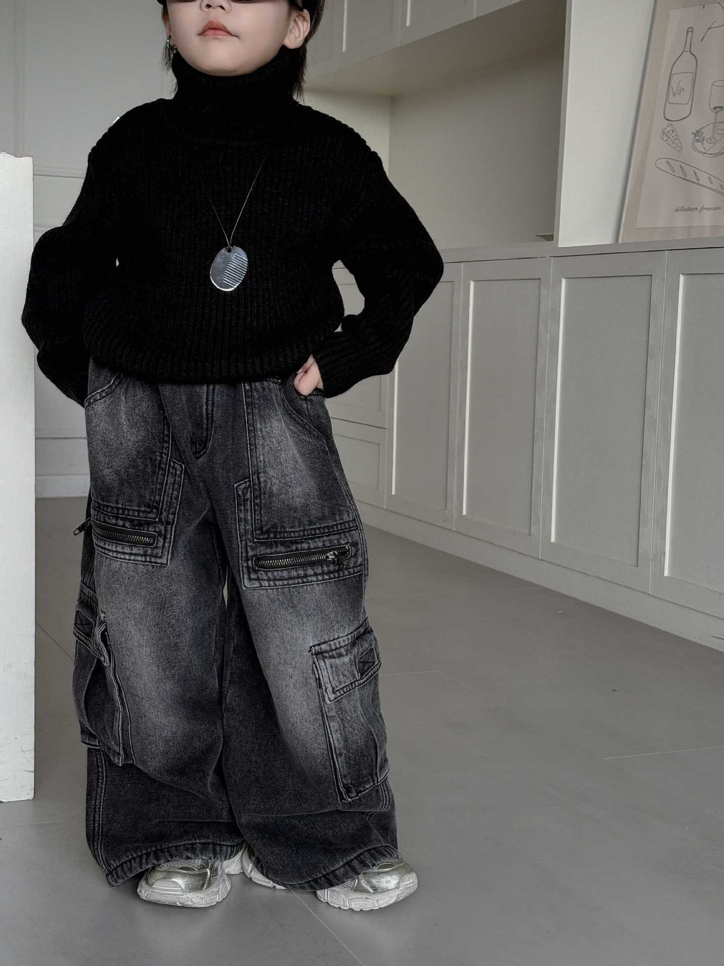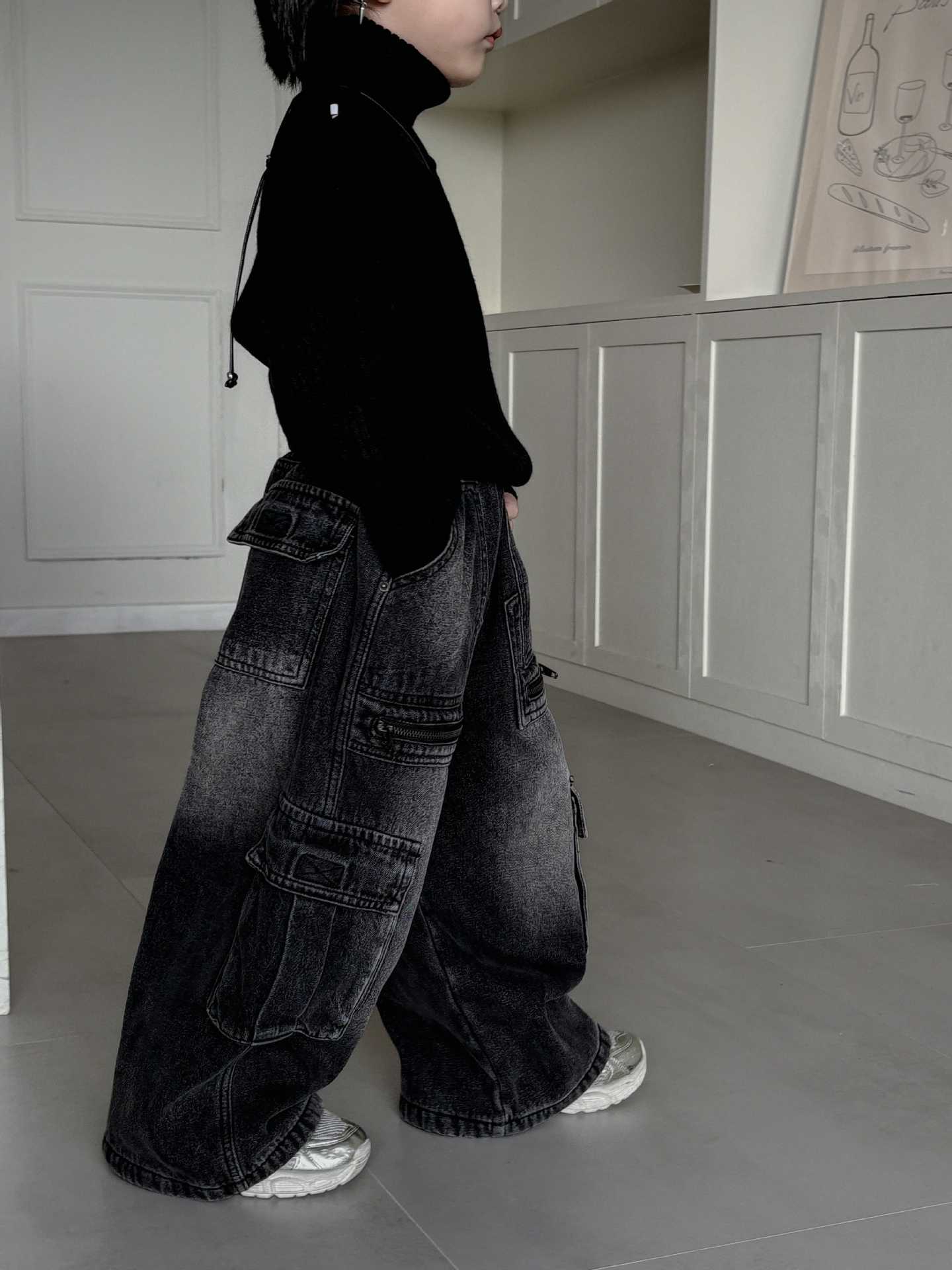 아동복 2025 겨울 신상 아동 바지 남아용 와이드 팬츠 청바지 긴바지 플리스 안감 두꺼운 트렌디하고 멋진 스타일