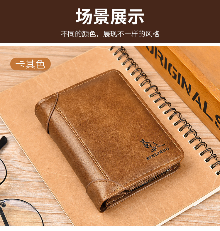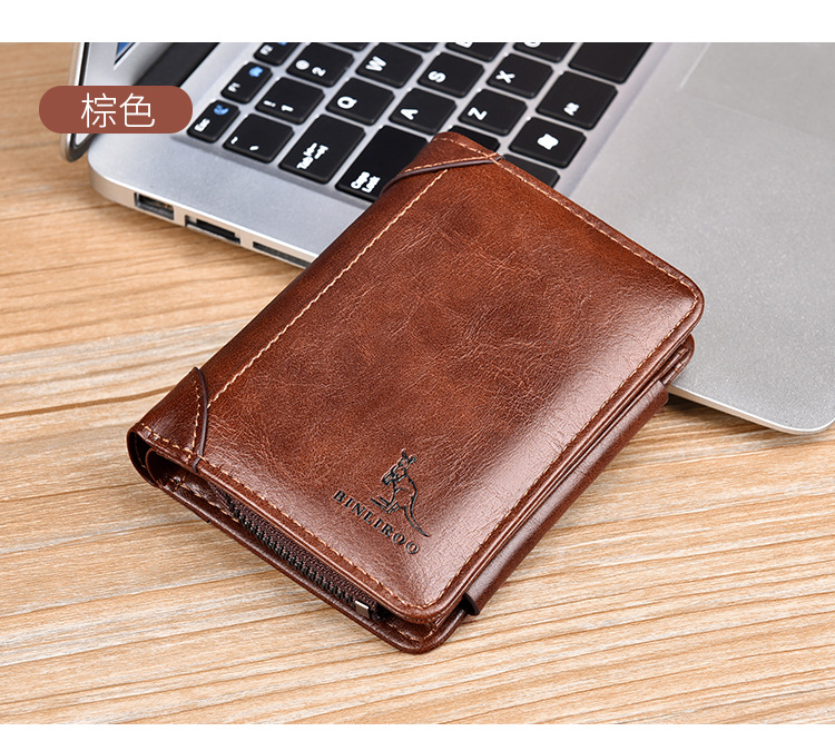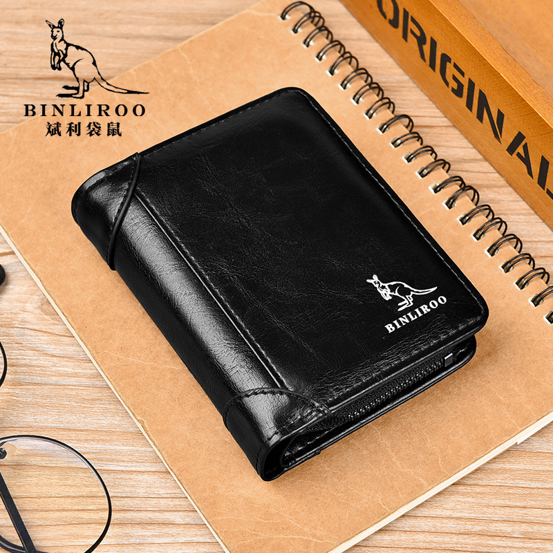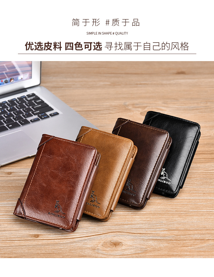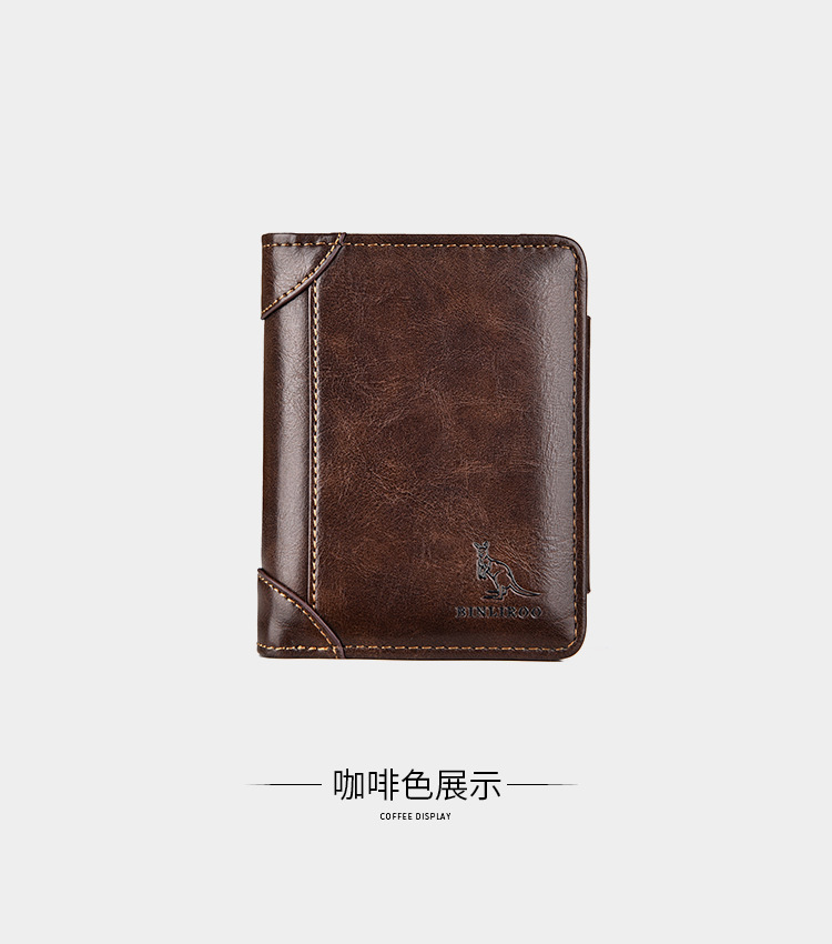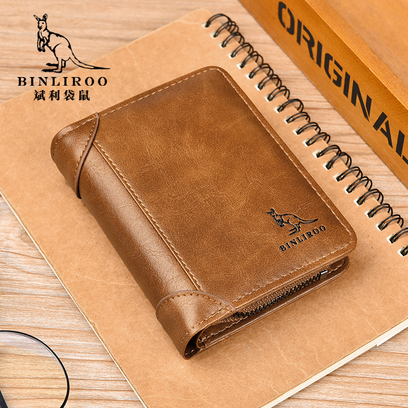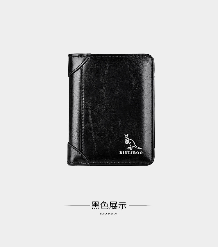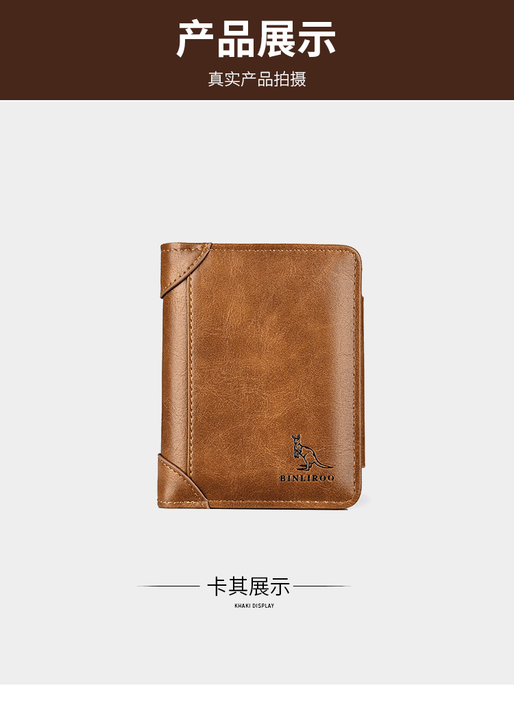 Binli 캥거루 지갑 남자의 짧은 도난 방지 브러시 수직 지갑 소프트 가죽 국경 선물 도매 멀티 카드 운전 카드 가방스토어 가기