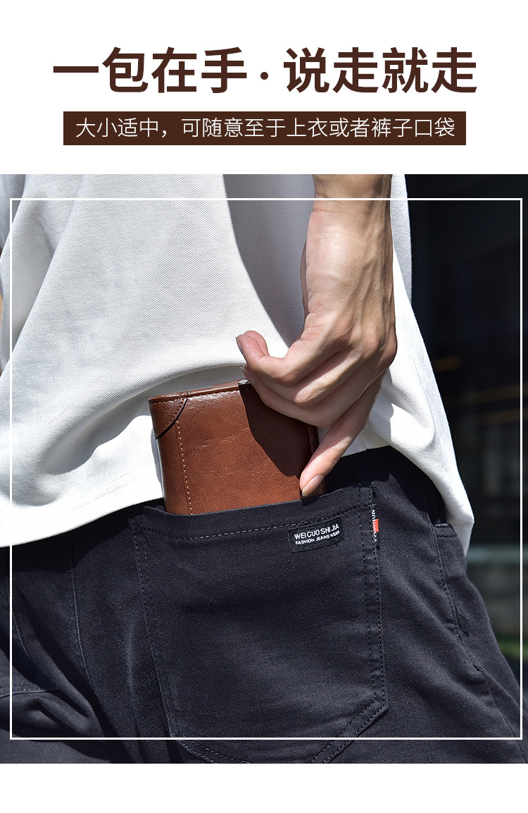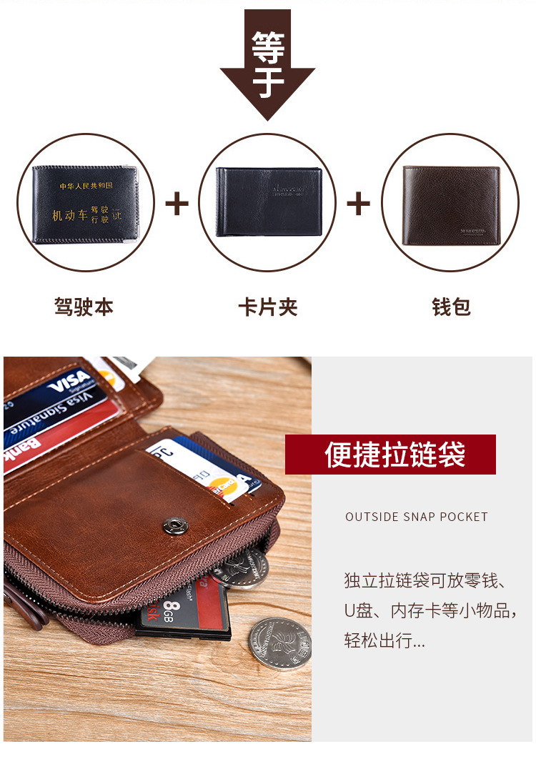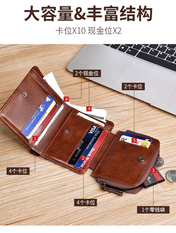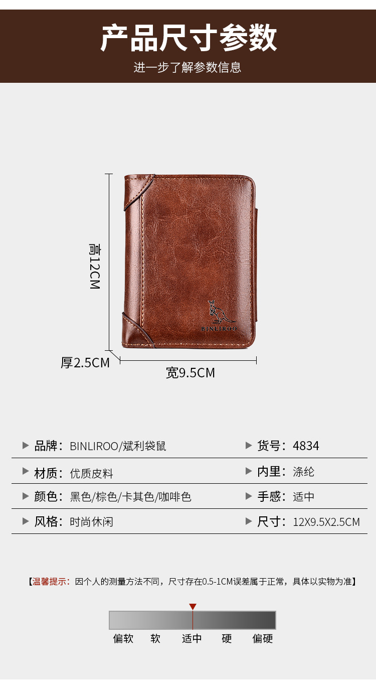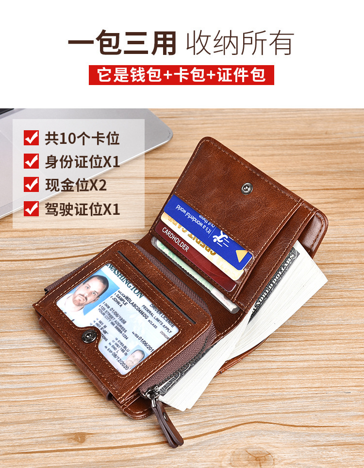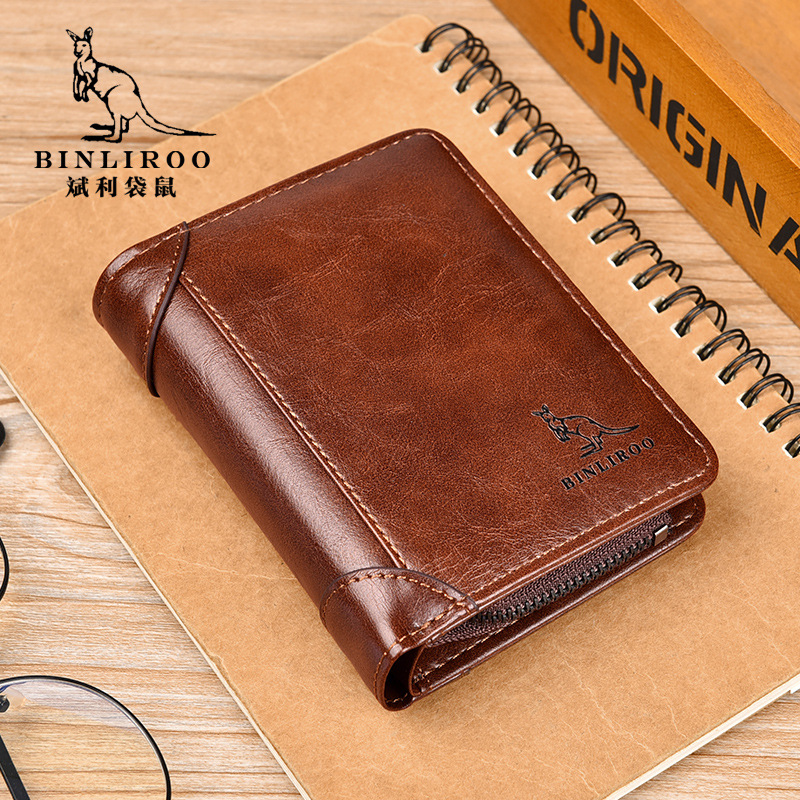 Binli 캥거루 지갑 남자의 짧은 도난 방지 브러시 수직 지갑 소프트 가죽 국경 선물 도매 멀티 카드 운전 카드 가방스토어 가기