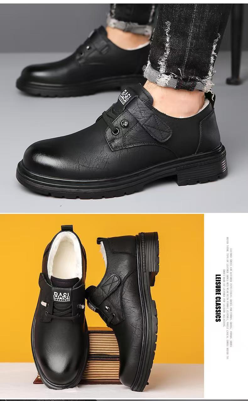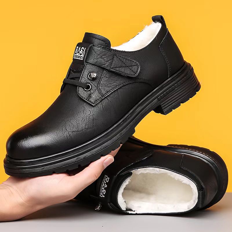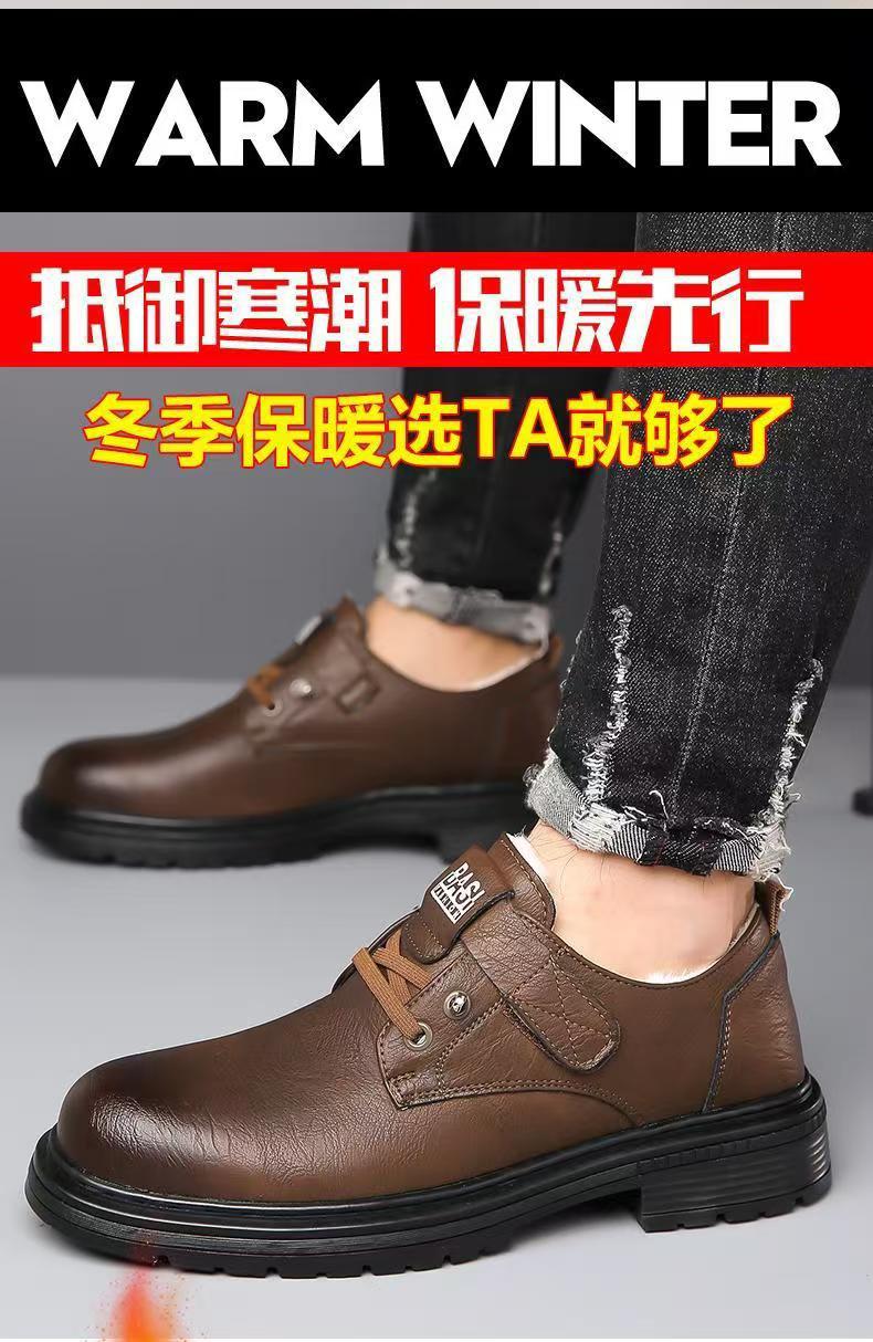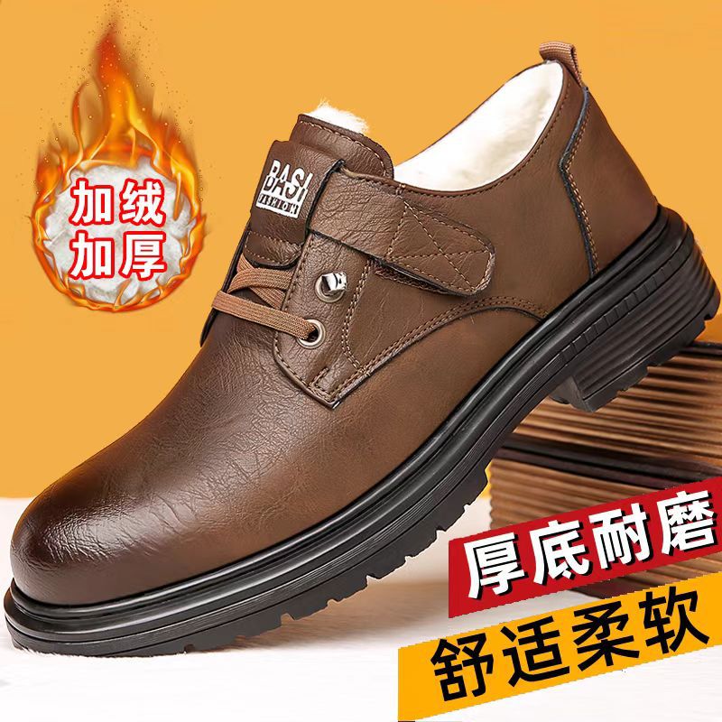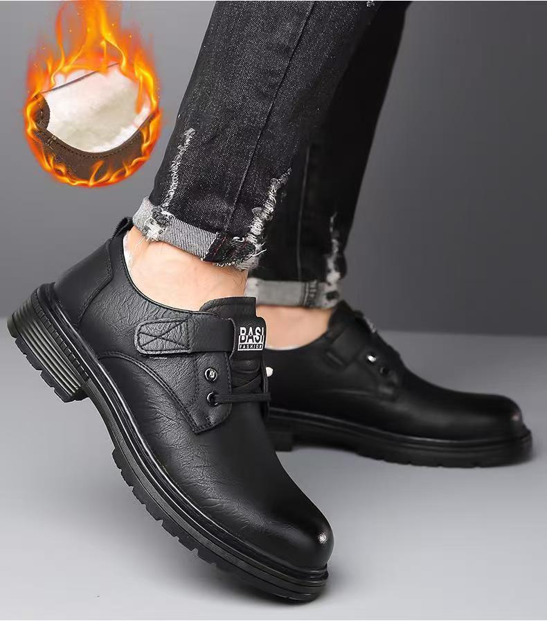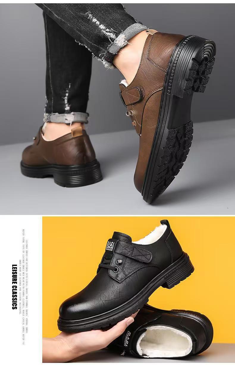 2024 겨울 새 가죽 신발 남성용 기모 따뜻한 영국 툴링 남성 신발 벨크로 두꺼운 밑창 미끄럼 방지 캐주얼 가죽 신발스토어 가기