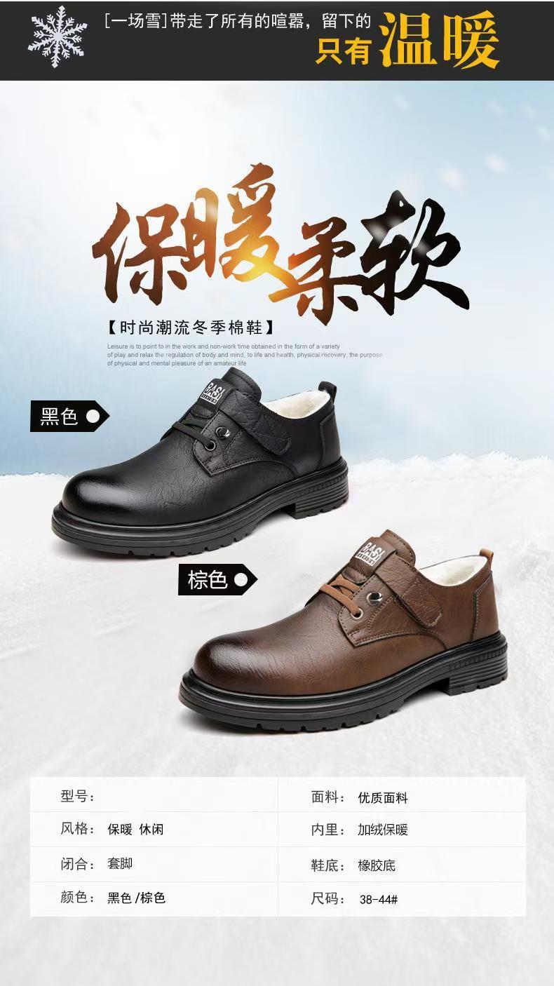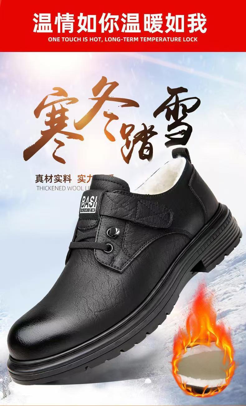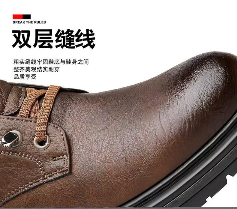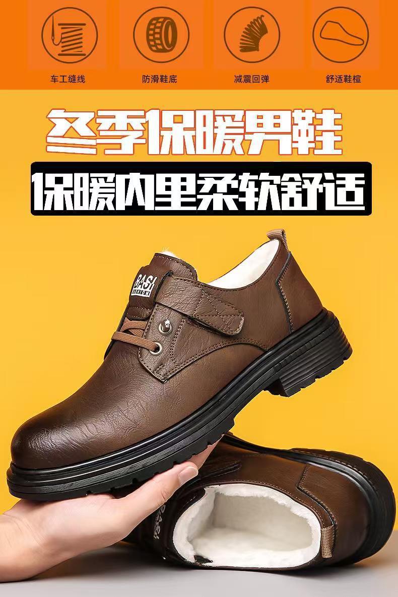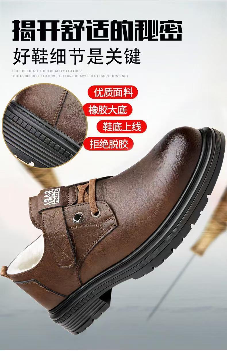 2024 겨울 새 가죽 신발 남성용 기모 따뜻한 영국 툴링 남성 신발 벨크로 두꺼운 밑창 미끄럼 방지 캐주얼 가죽 신발스토어 가기