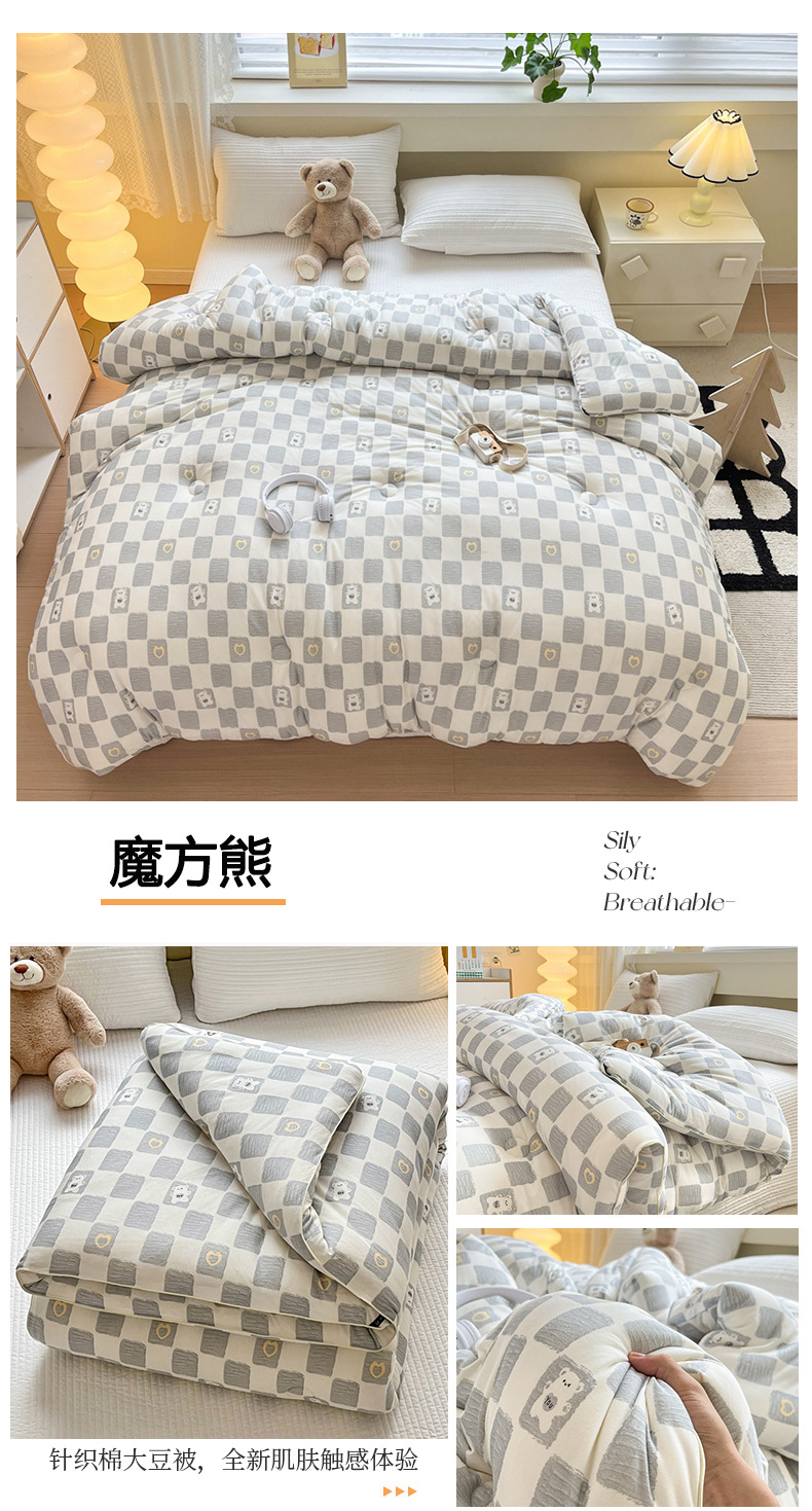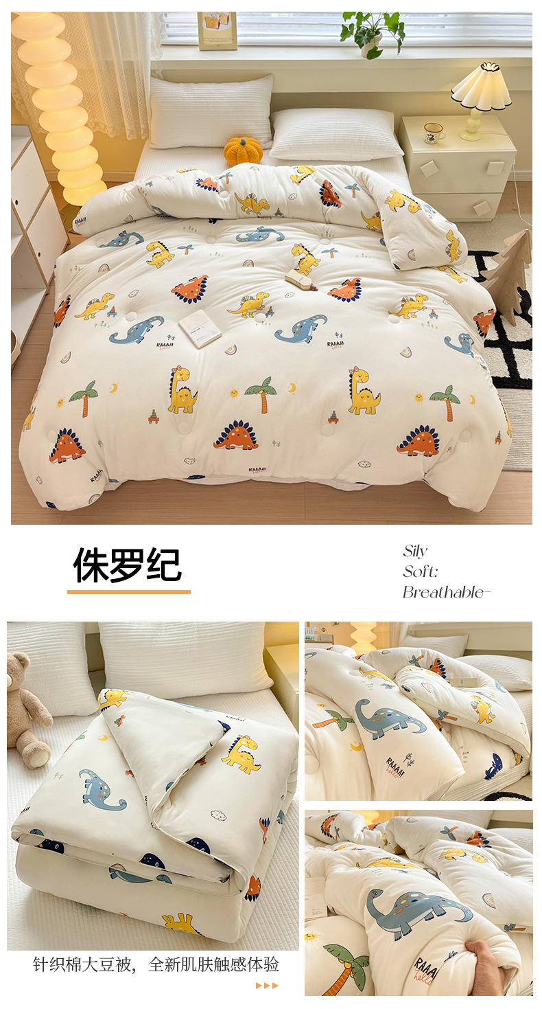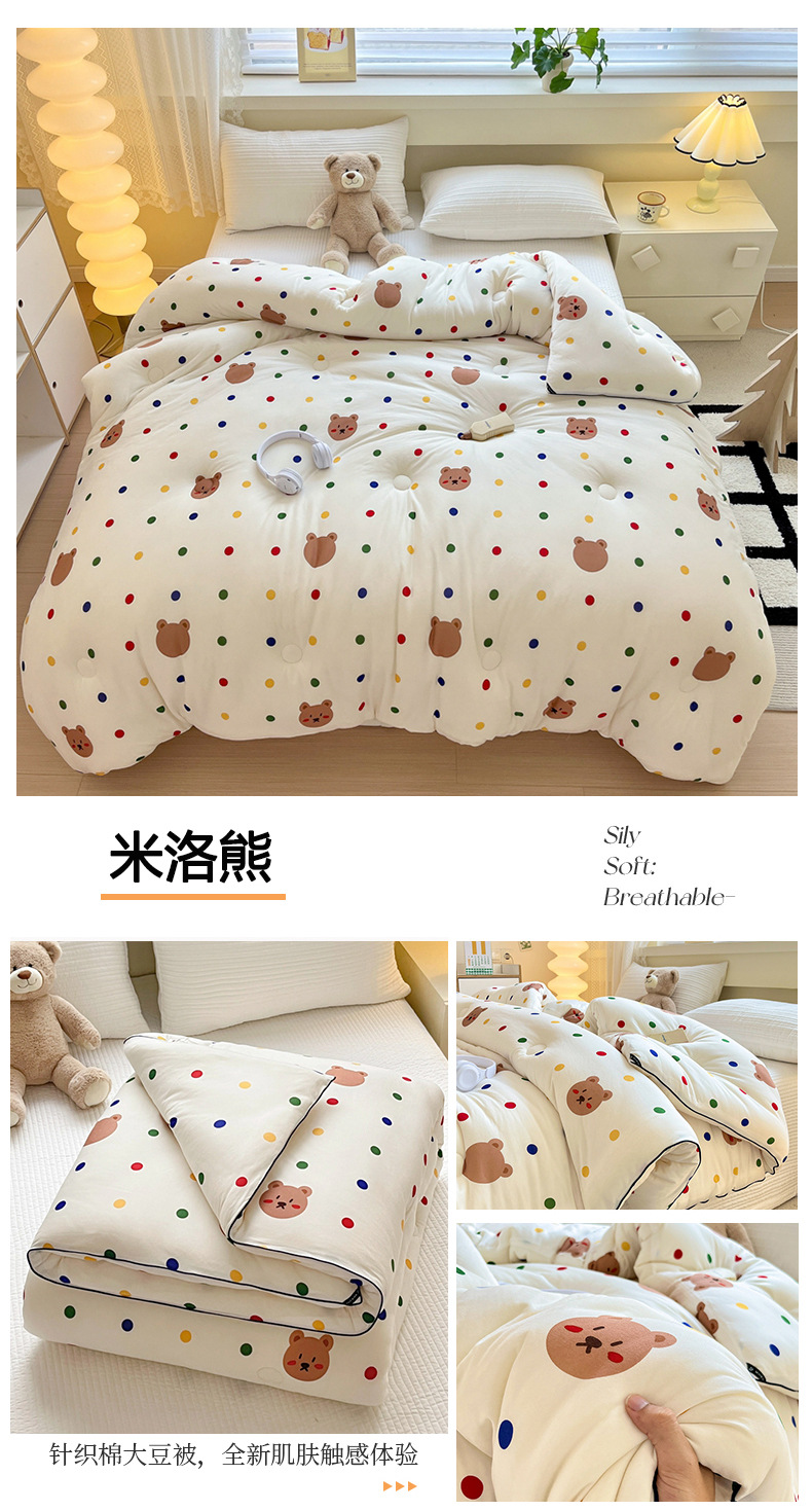 클래스 A 모성 및 유아 등급 니트 코튼 콩 섬유 이불 두꺼운 어린이 겨울 이불 봄 및 가을 이불 인쇄 이중 이불 코어