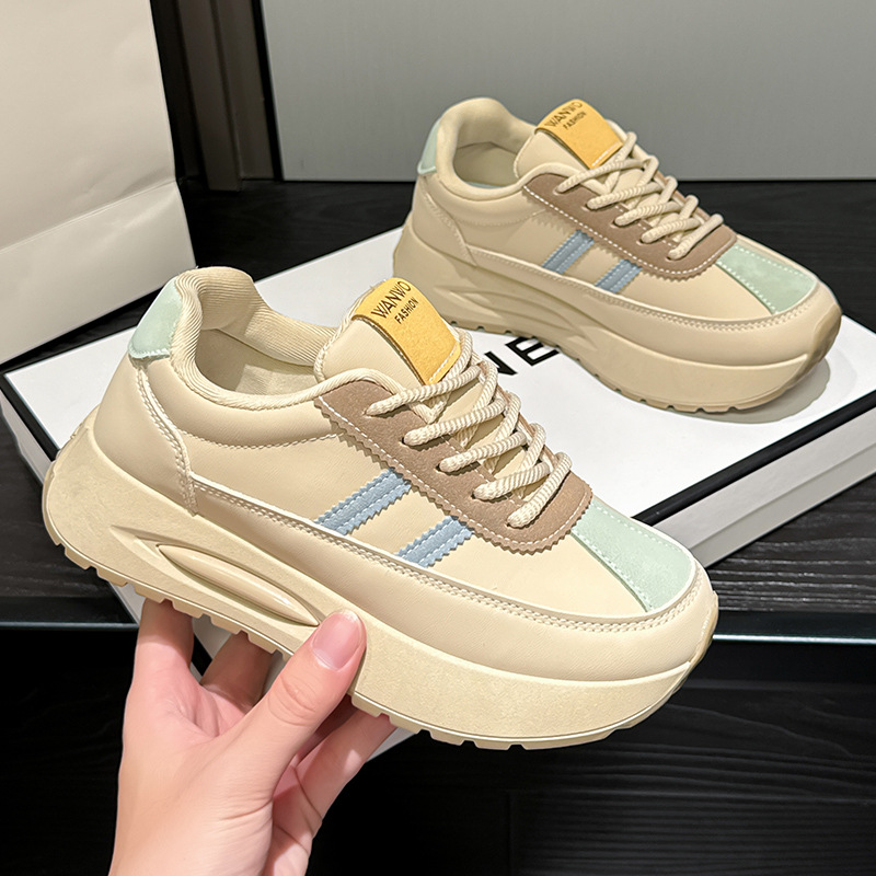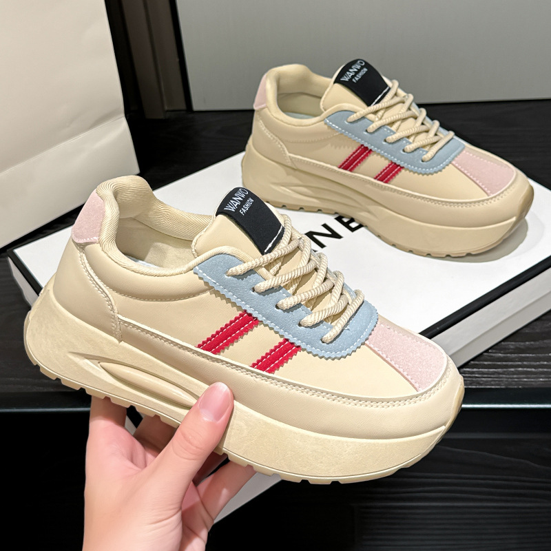 2024 봄과 가을 새 가죽 운동화 여성 두꺼운 한국 스타일 올 매치 캐주얼 토르 슈즈 포레스트 검프 슈즈 화이트 슈즈스토어 가기
