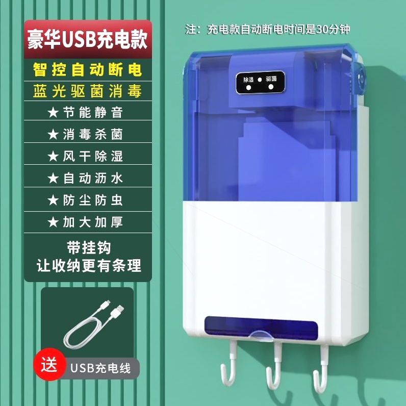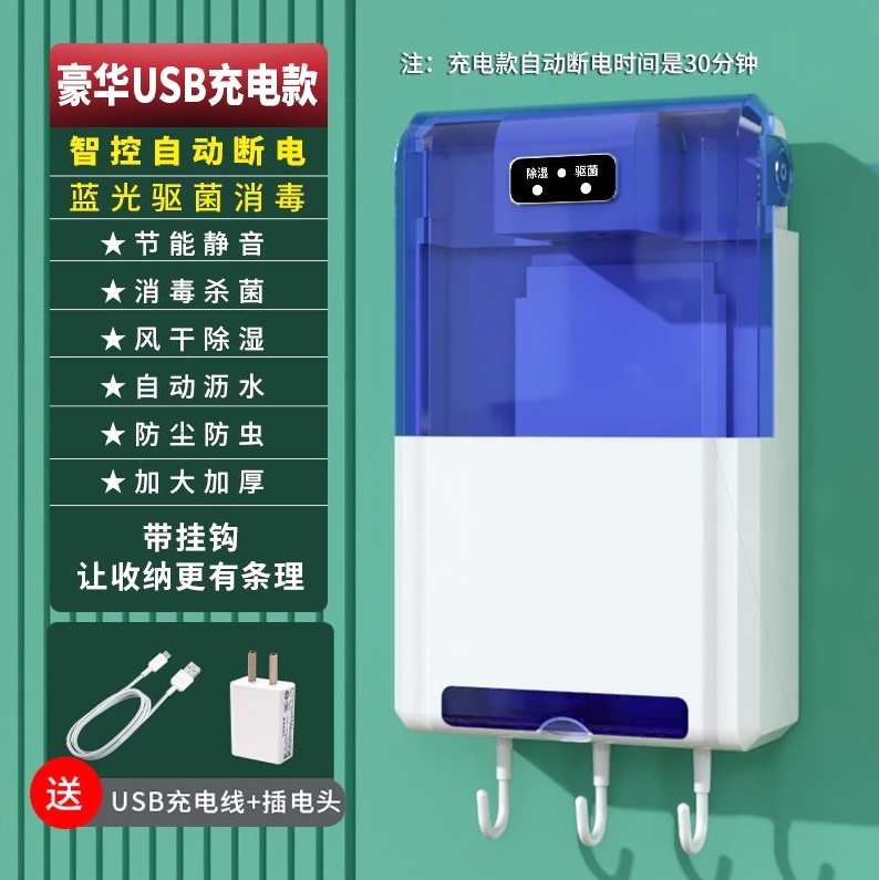 독일 품질 소독제 젓가락 케이지 지능형 공기 건조 블루 라이트 살균 소독 젓가락 홀더 충전식 벽걸이 홈스토어 가기