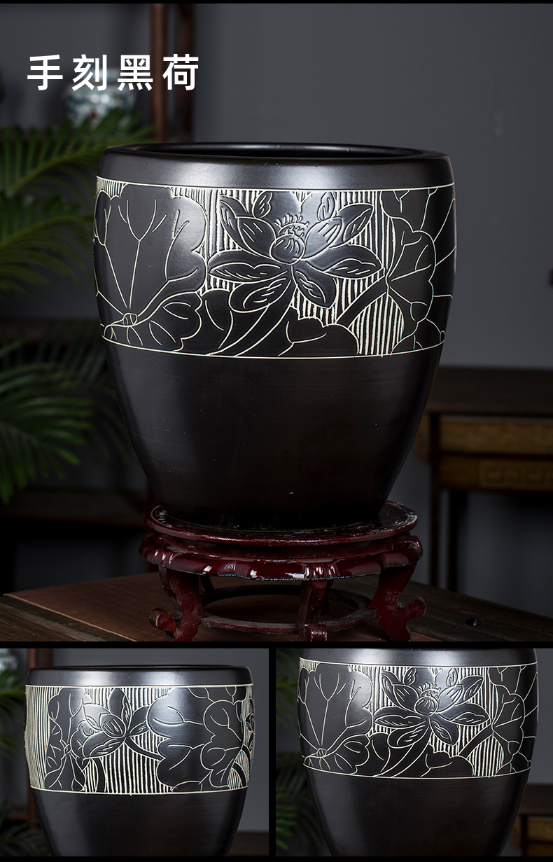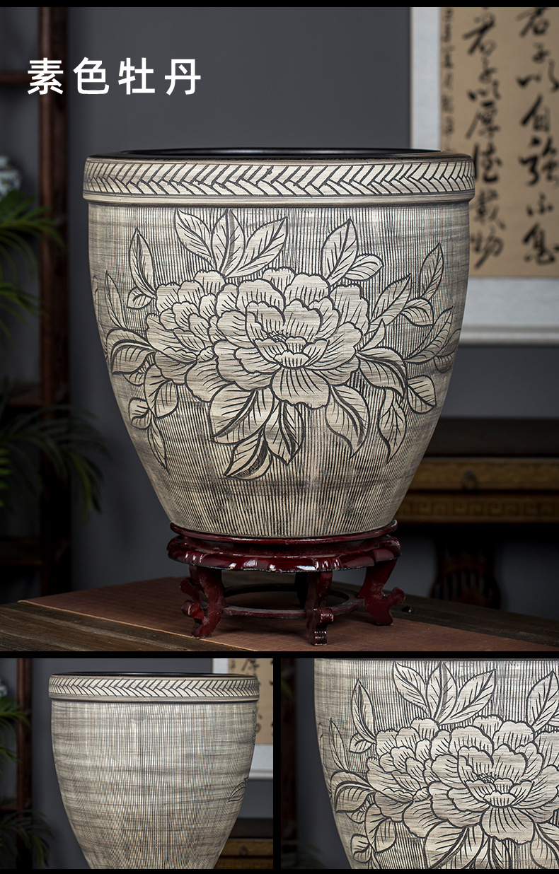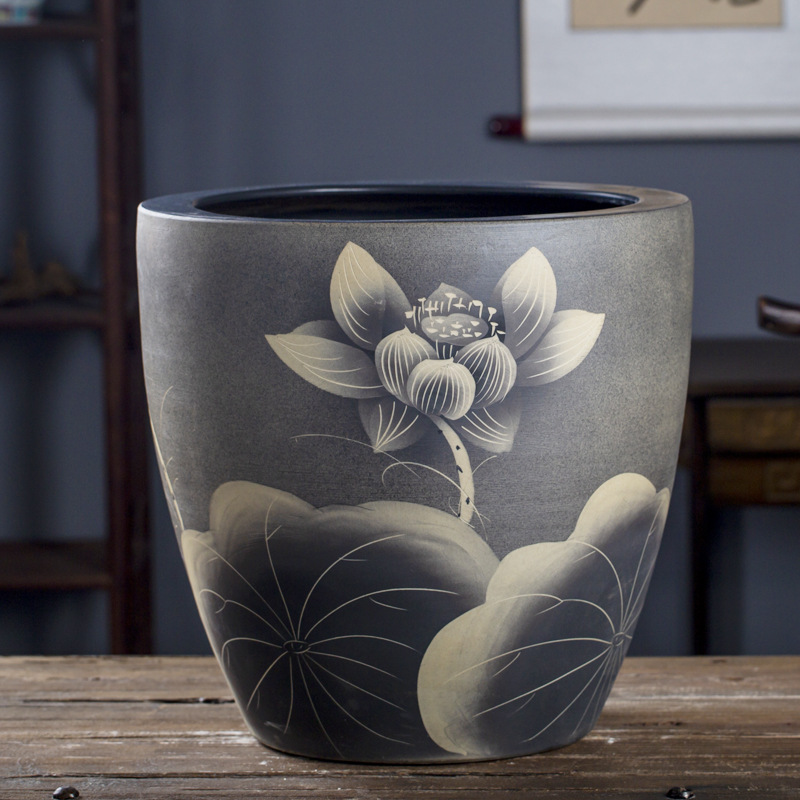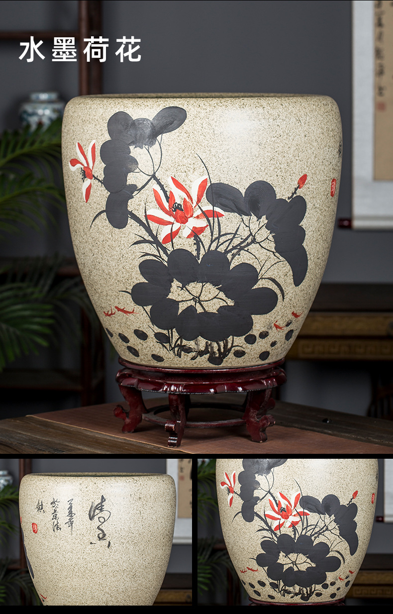 Jingdezhen 세라믹 어항 물 탱크 금붕어 연꽃 그릇 백합 유역 높이 호텔 안뜰 거실 그림 및 서예 탱크
