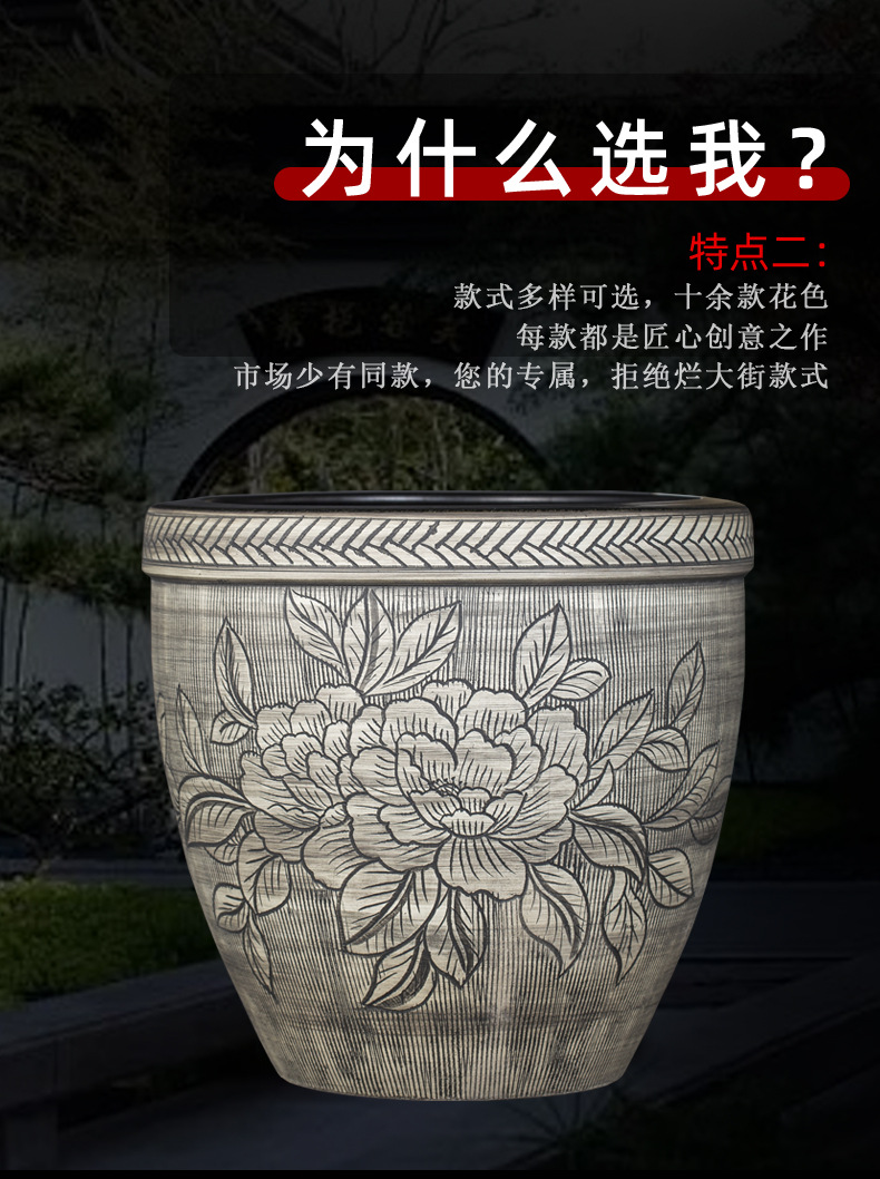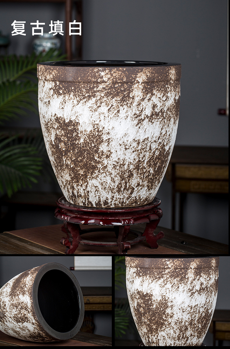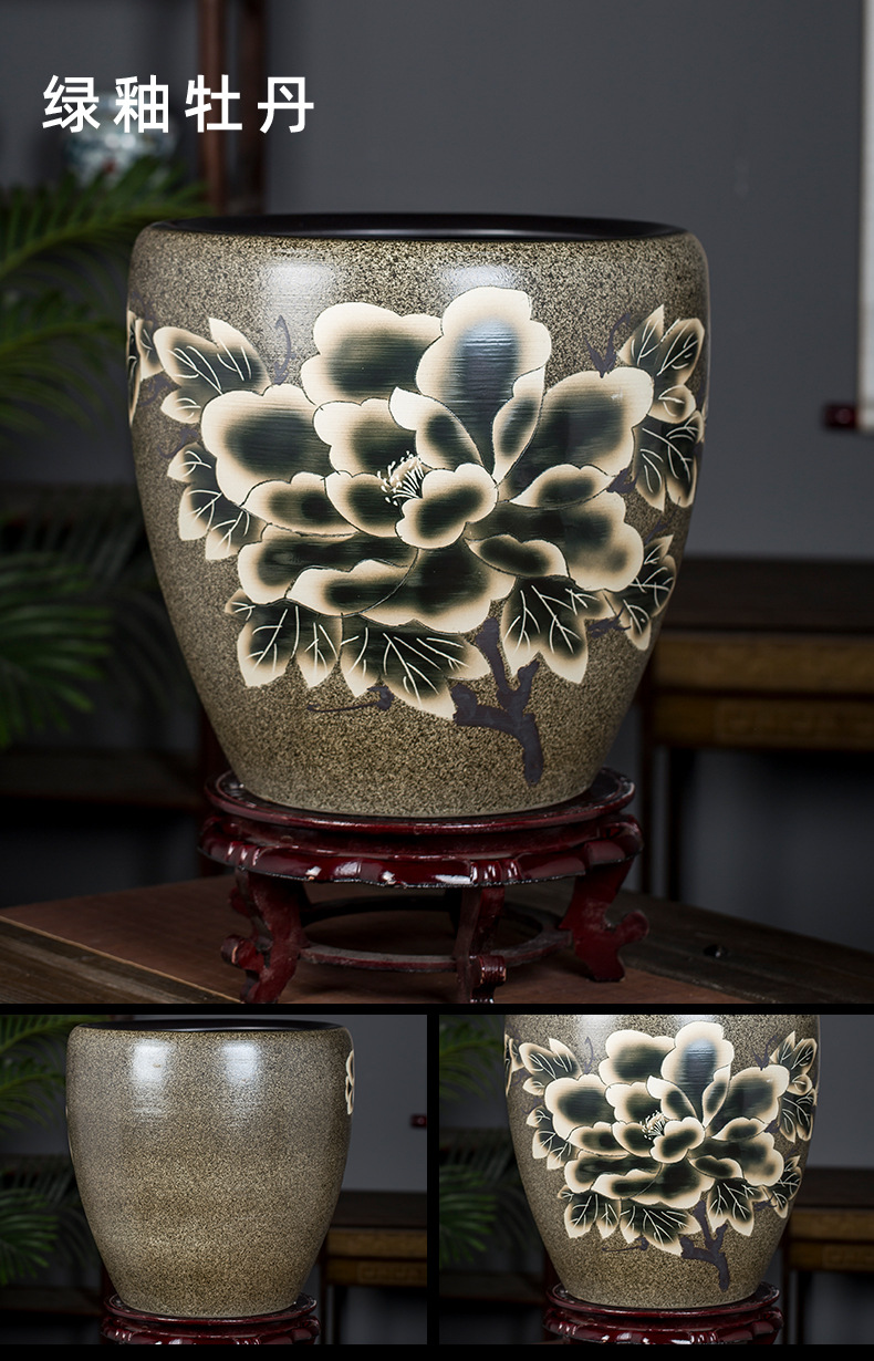 Jingdezhen 세라믹 어항 물 탱크 금붕어 연꽃 그릇 백합 유역 높이 호텔 안뜰 거실 그림 및 서예 탱크