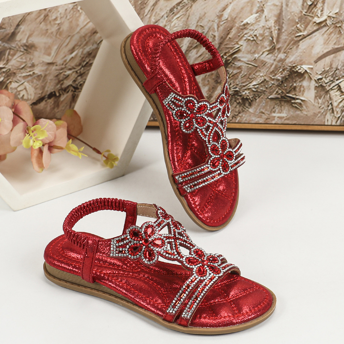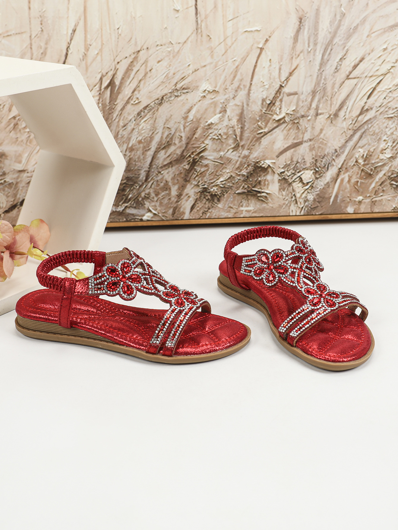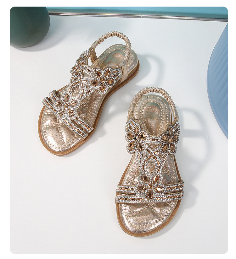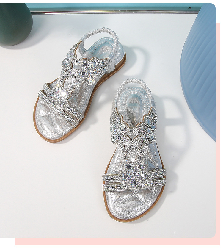 유럽과 미국의 국경 2024 새로운 평면 어린이 샌들 꽃 라인 스톤 편안한 올 매치 오픈 토 프린세스 걸스 신발스토어 가기