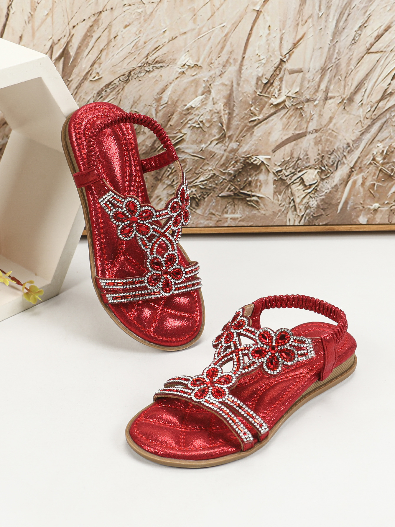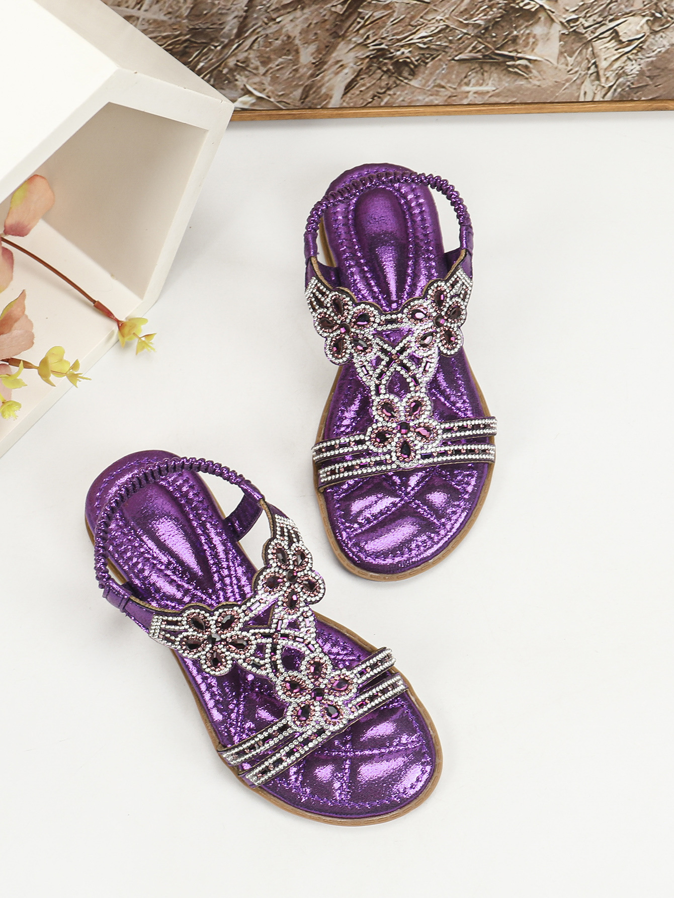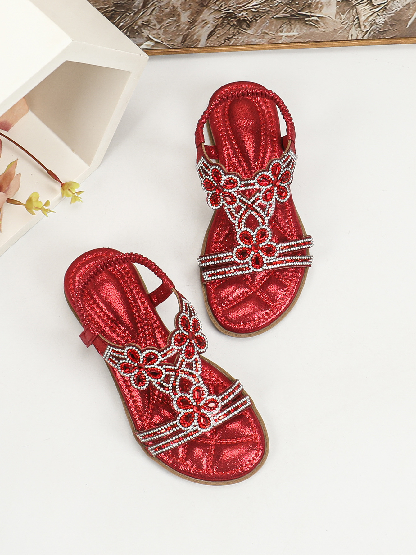 유럽과 미국의 국경 2024 새로운 평면 어린이 샌들 꽃 라인 스톤 편안한 올 매치 오픈 토 프린세스 걸스 신발스토어 가기
