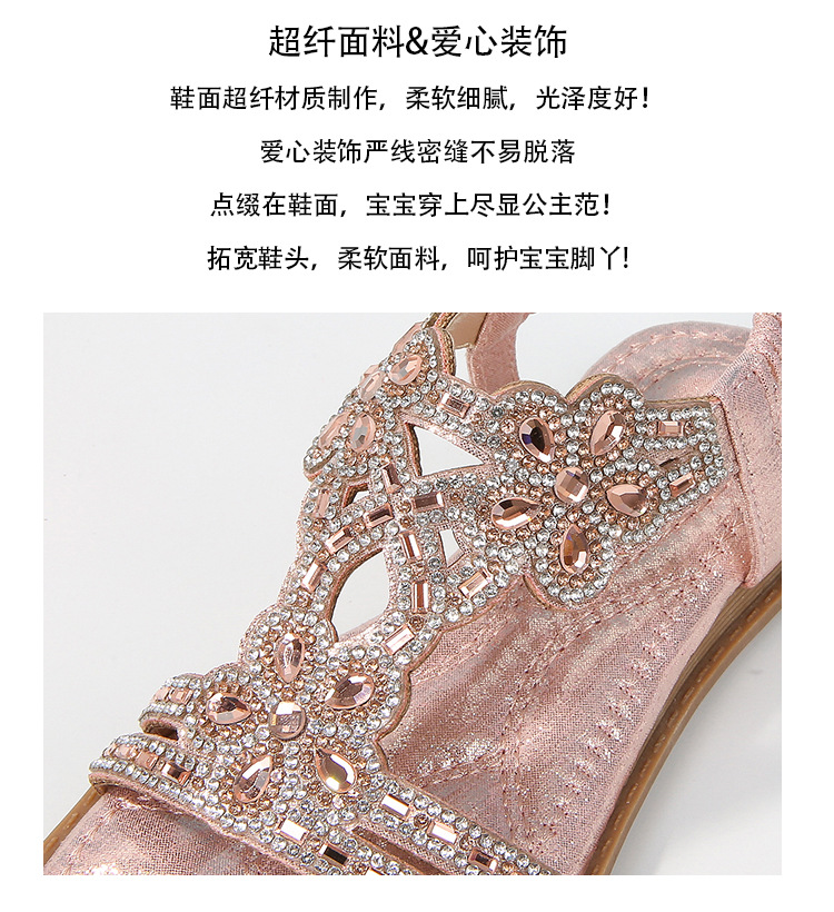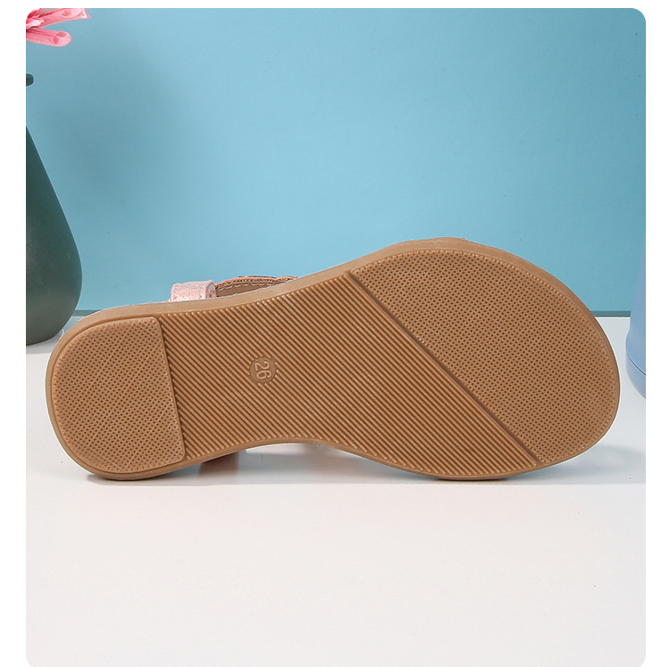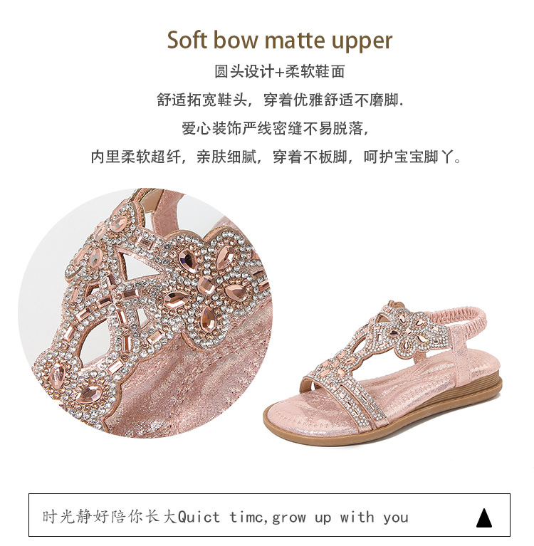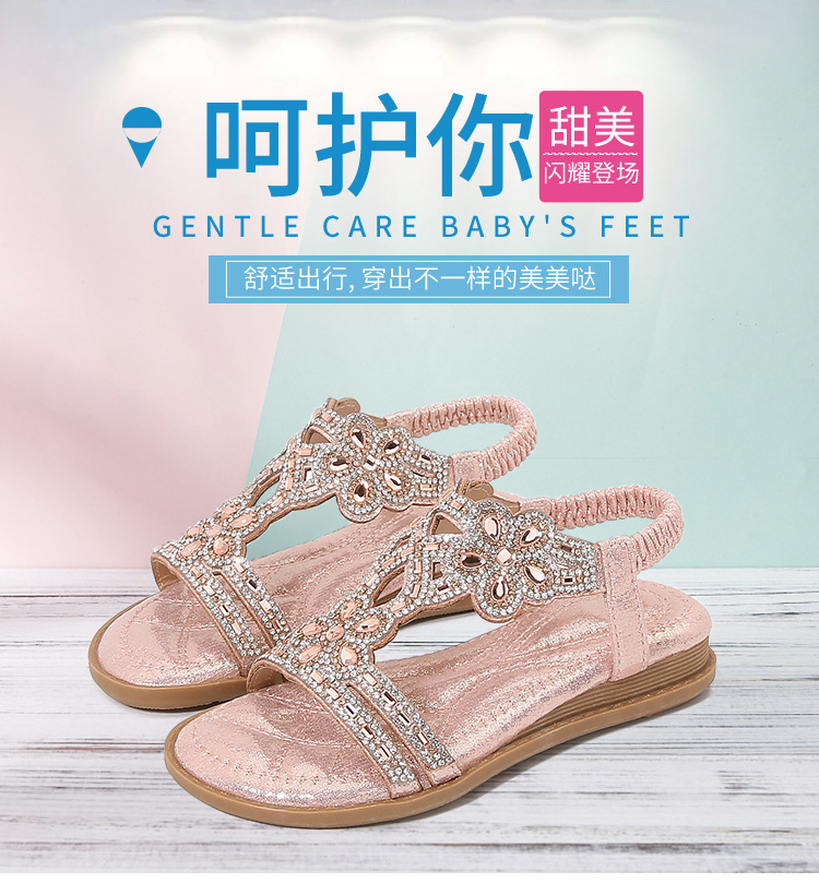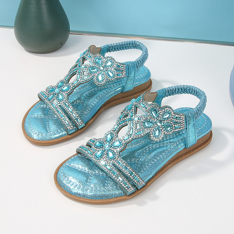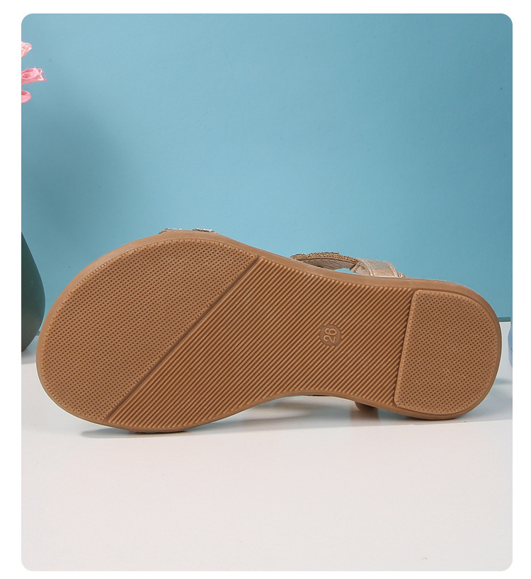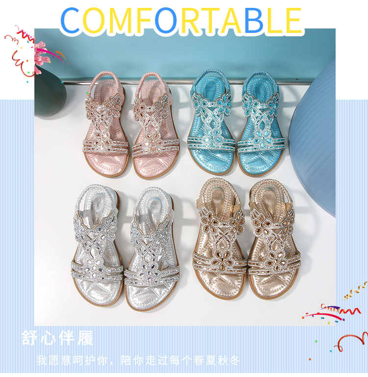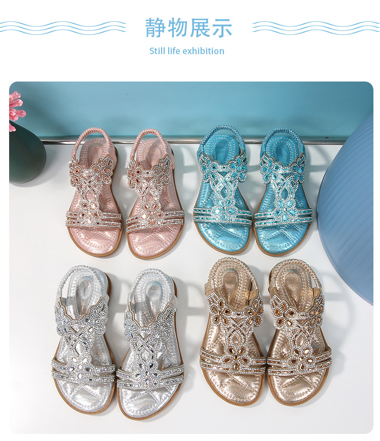 유럽과 미국의 국경 2024 새로운 평면 어린이 샌들 꽃 라인 스톤 편안한 올 매치 오픈 토 프린세스 걸스 신발