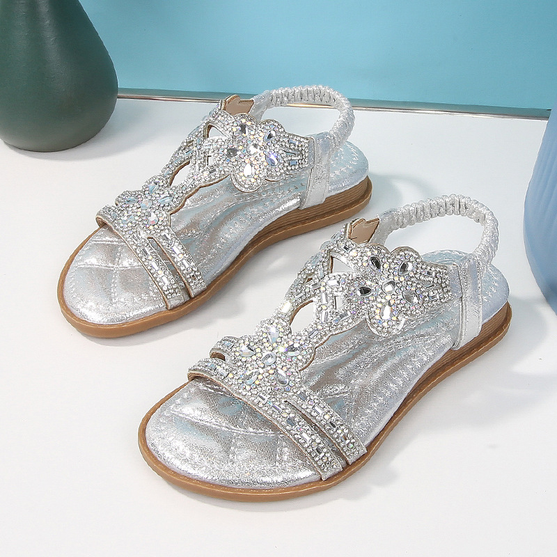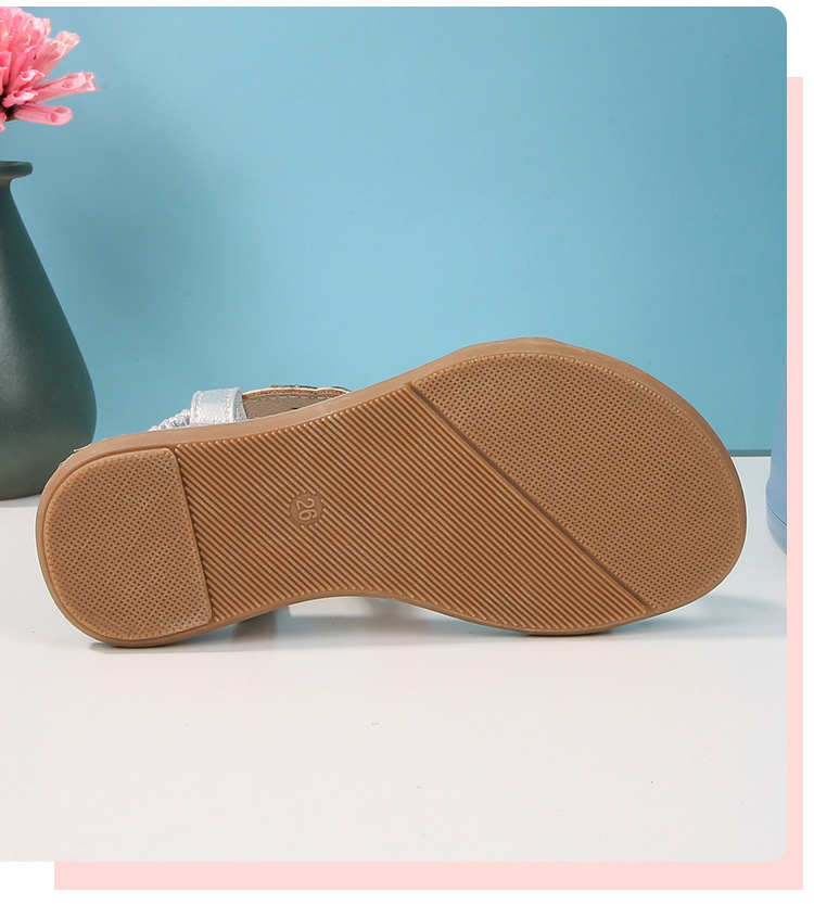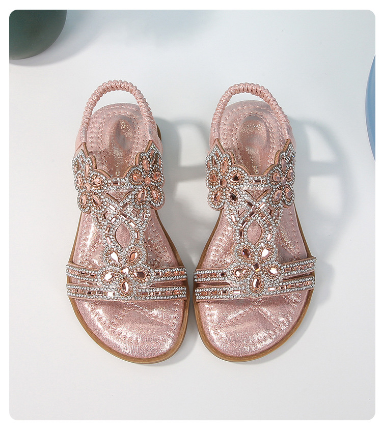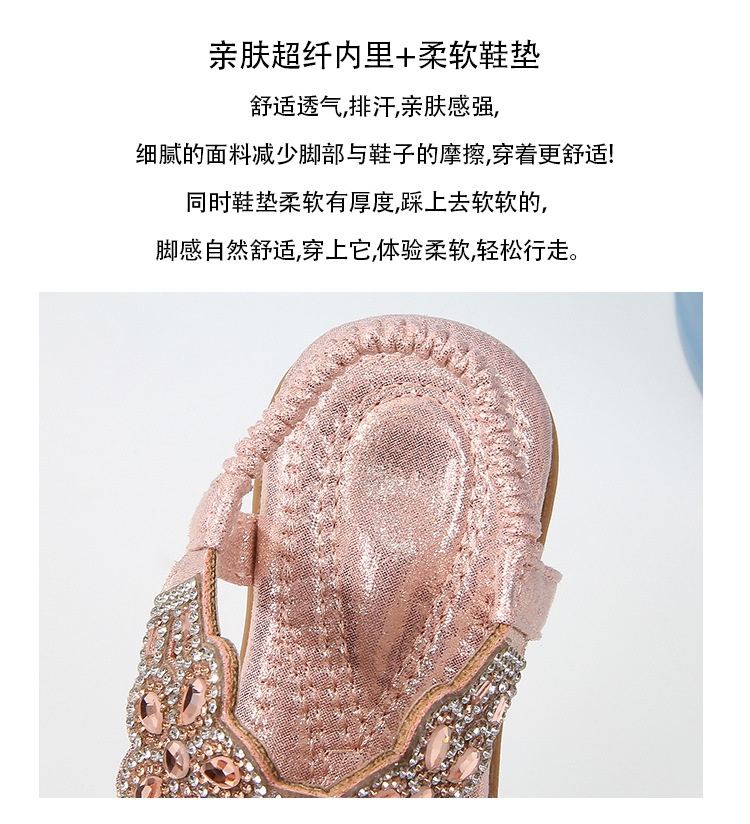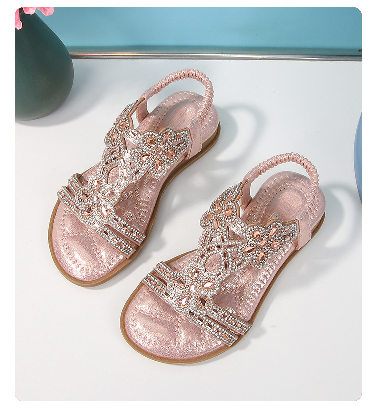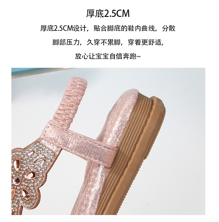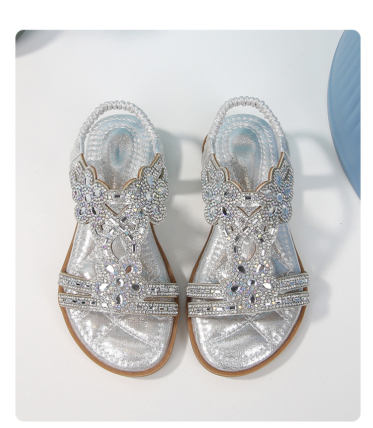 유럽과 미국의 국경 2024 새로운 평면 어린이 샌들 꽃 라인 스톤 편안한 올 매치 오픈 토 프린세스 걸스 신발