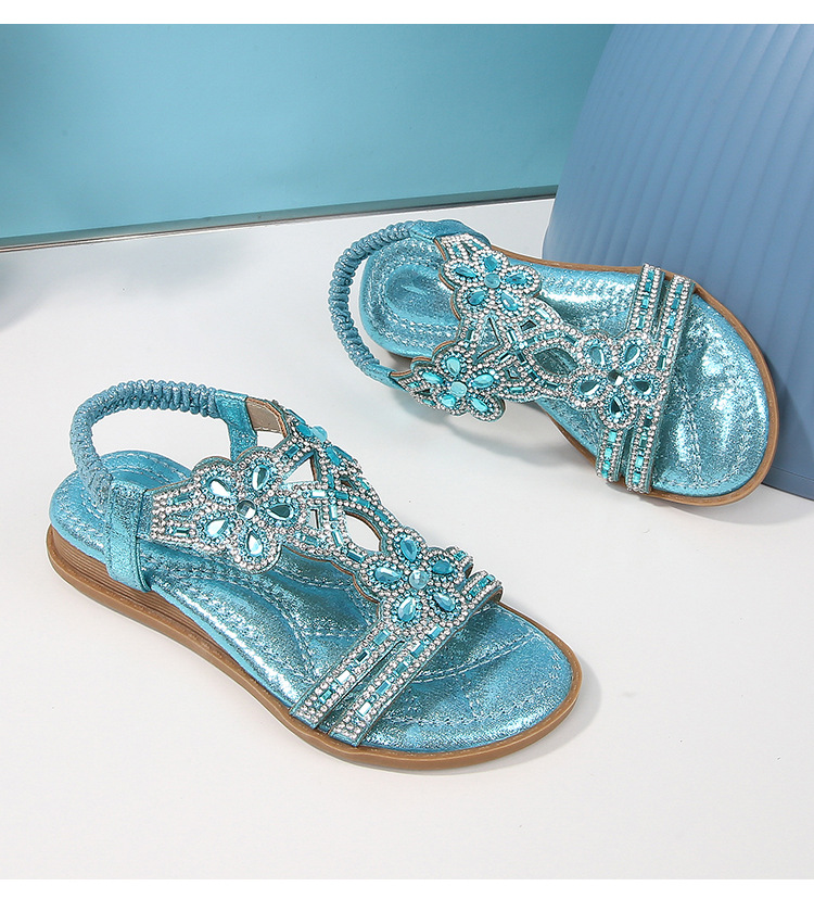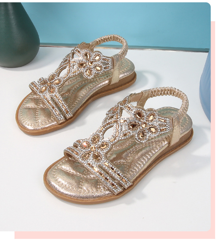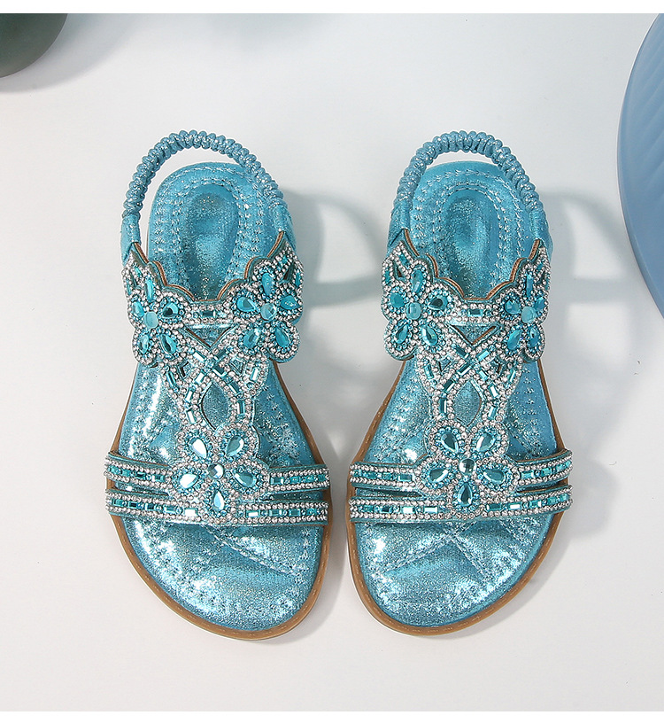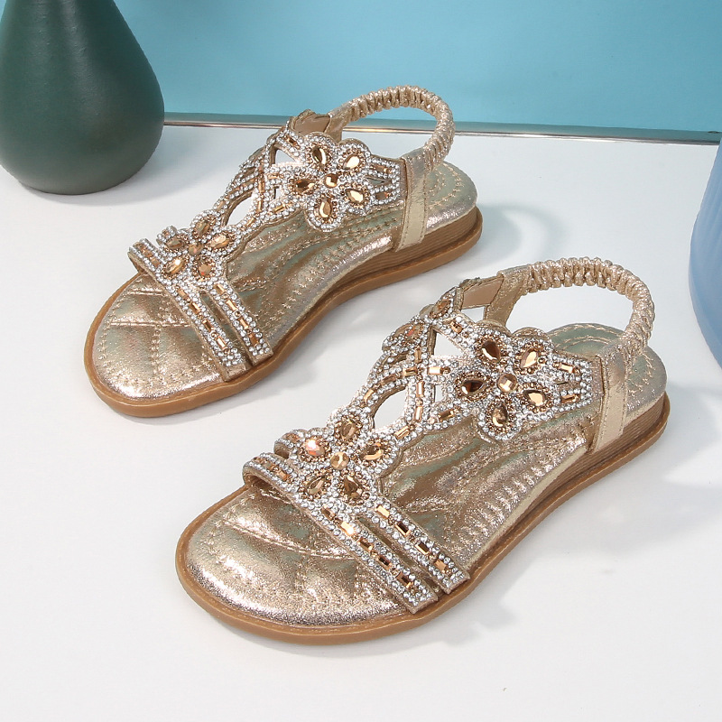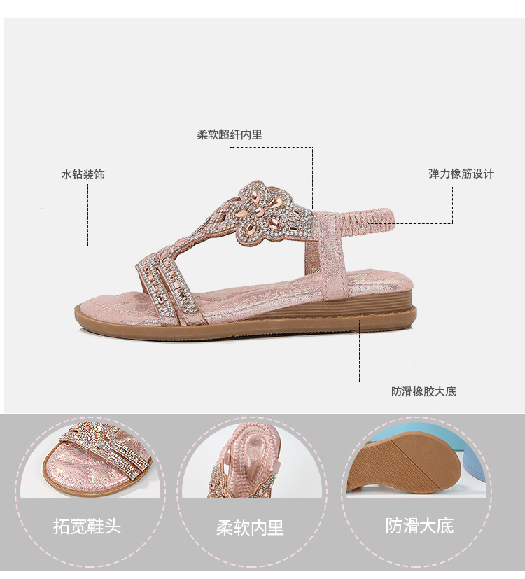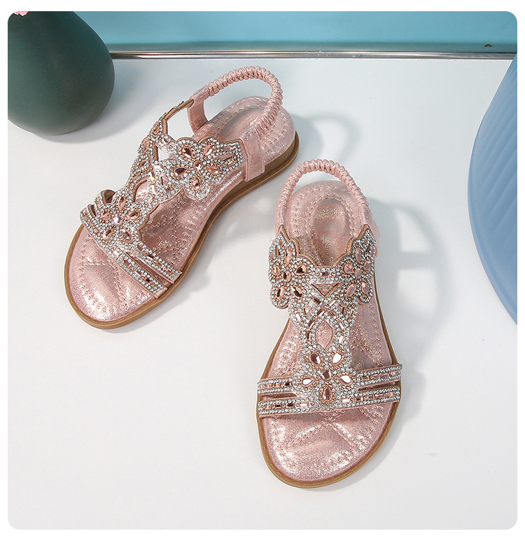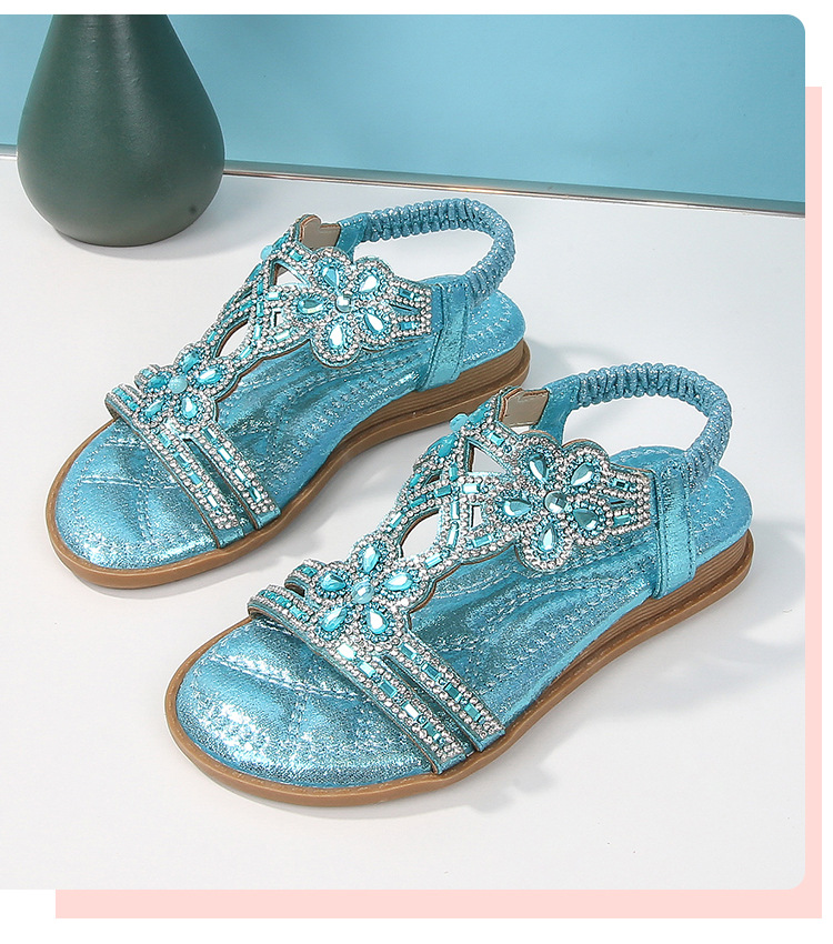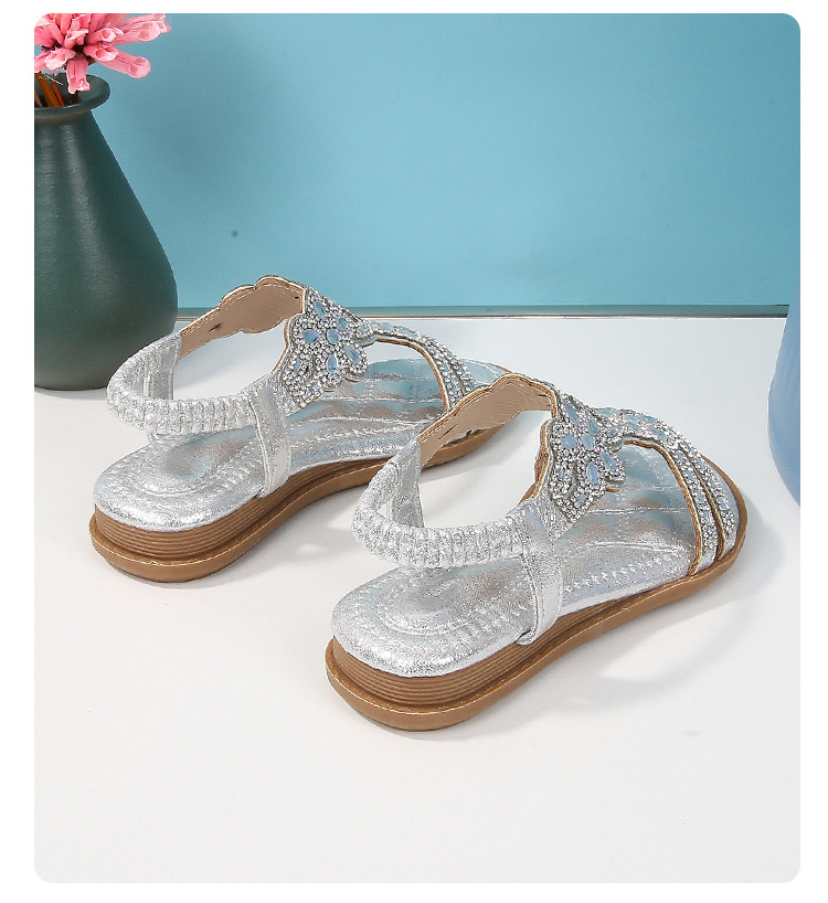 유럽과 미국의 국경 2024 새로운 평면 어린이 샌들 꽃 라인 스톤 편안한 올 매치 오픈 토 프린세스 걸스 신발